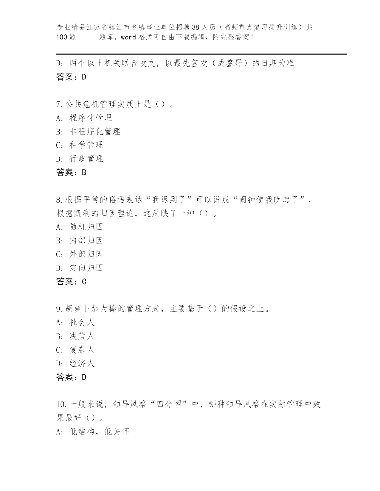 精品江苏省镇江市乡镇事业单位招聘38人历(高频重点复习提升训练)共100题 【黄金题型】
