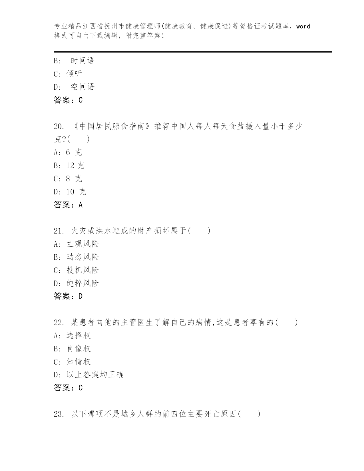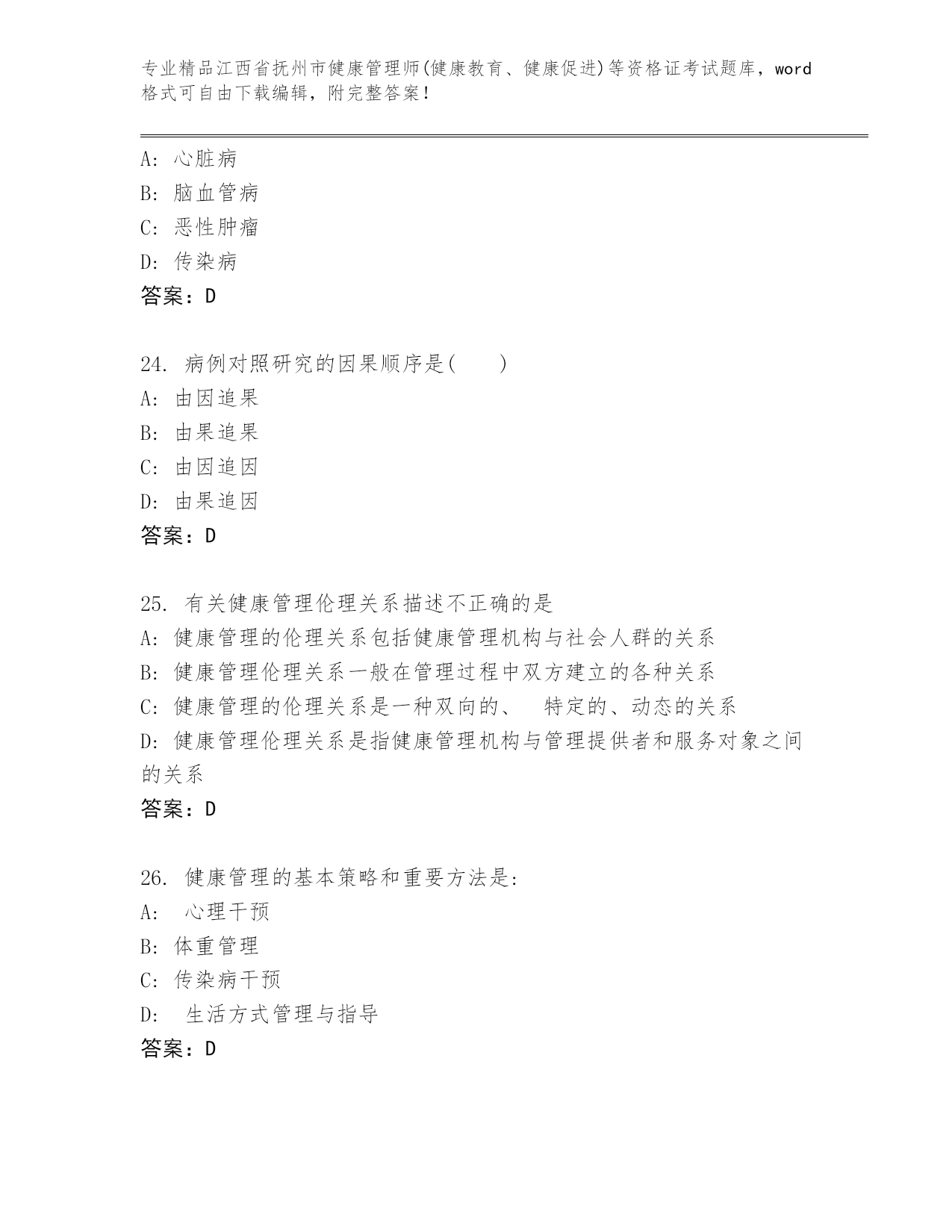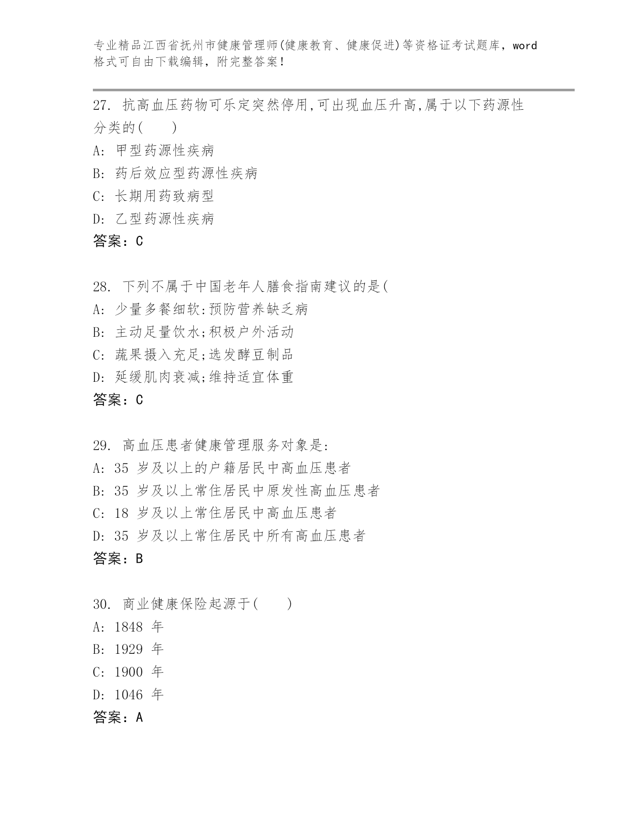 历年江西省抚州市健康管理师(健康教育、健康促进)等资格证考试附解析答案.docx