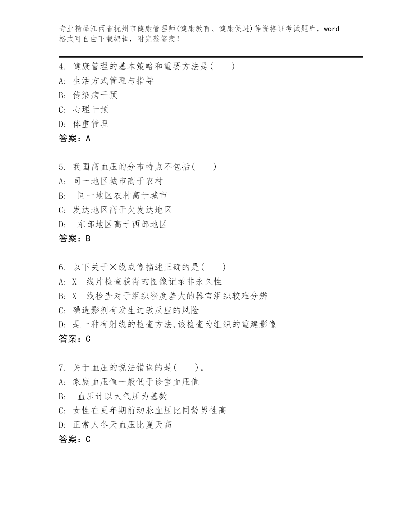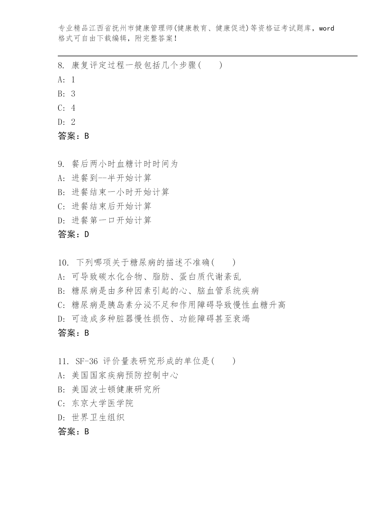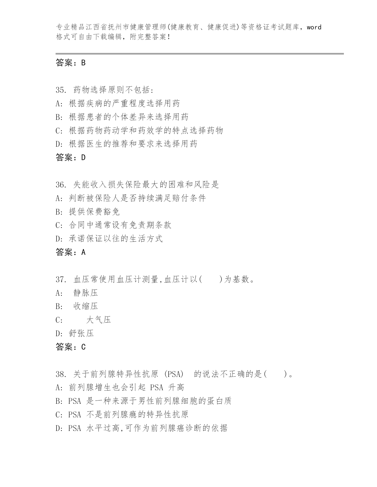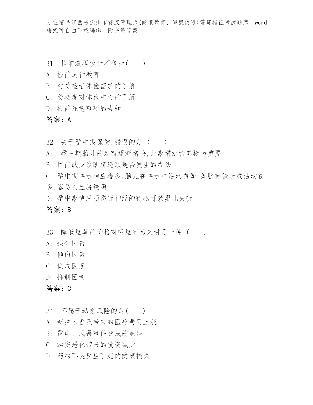 历年江西省抚州市健康管理师(健康教育、健康促进)等资格证考试附解析答案