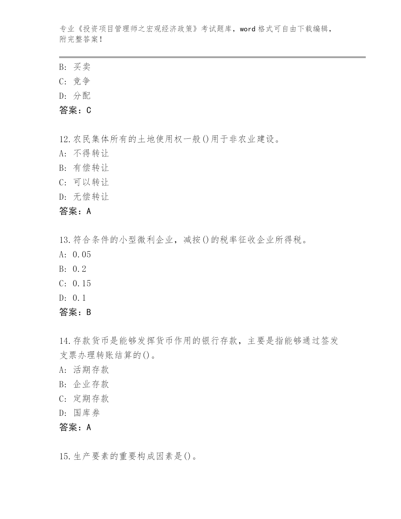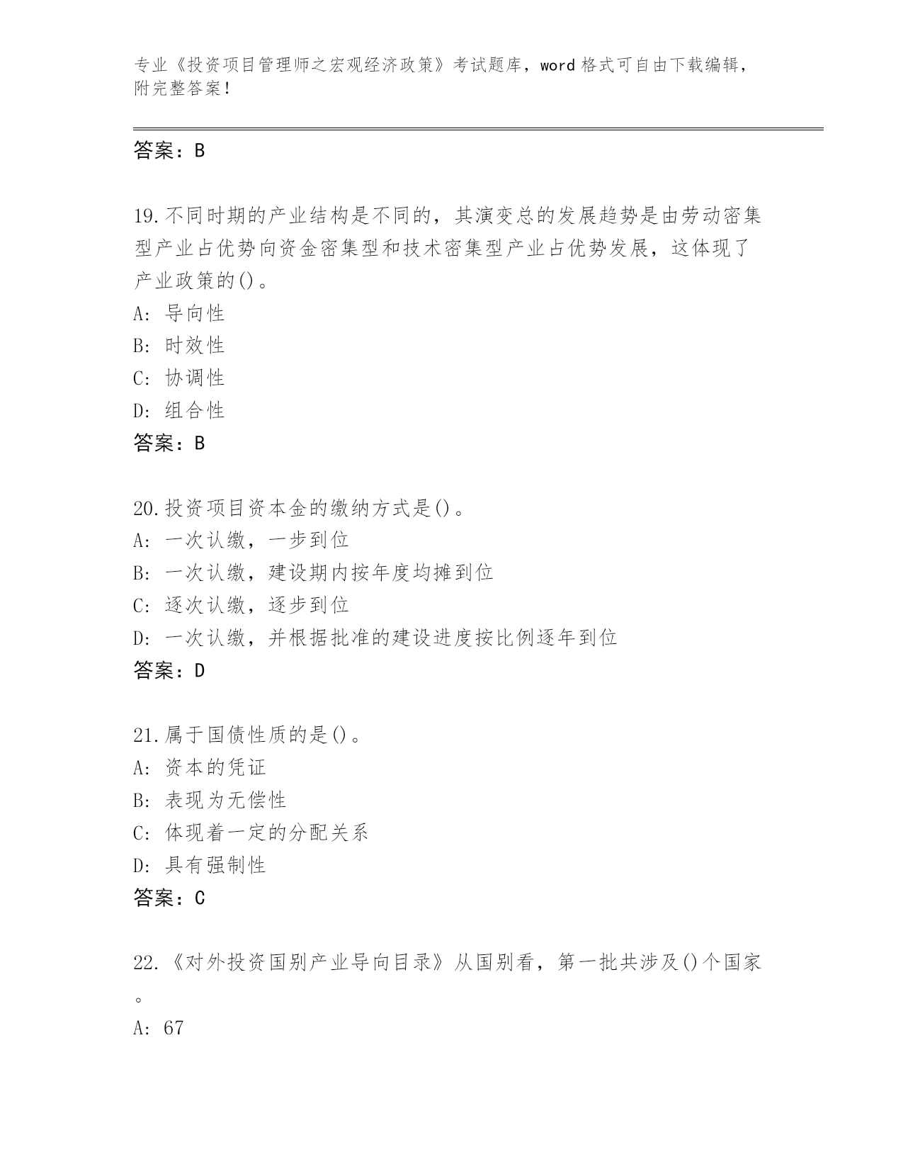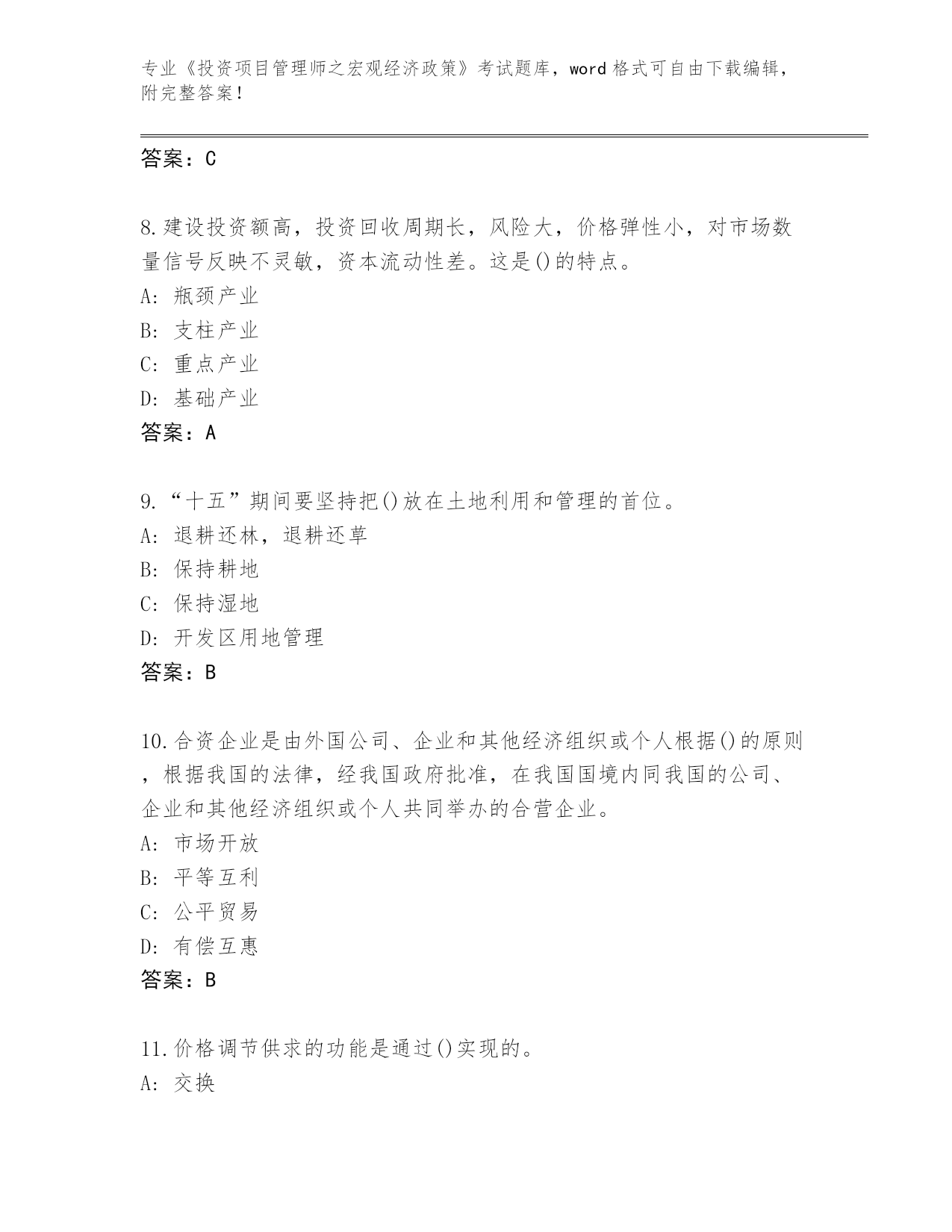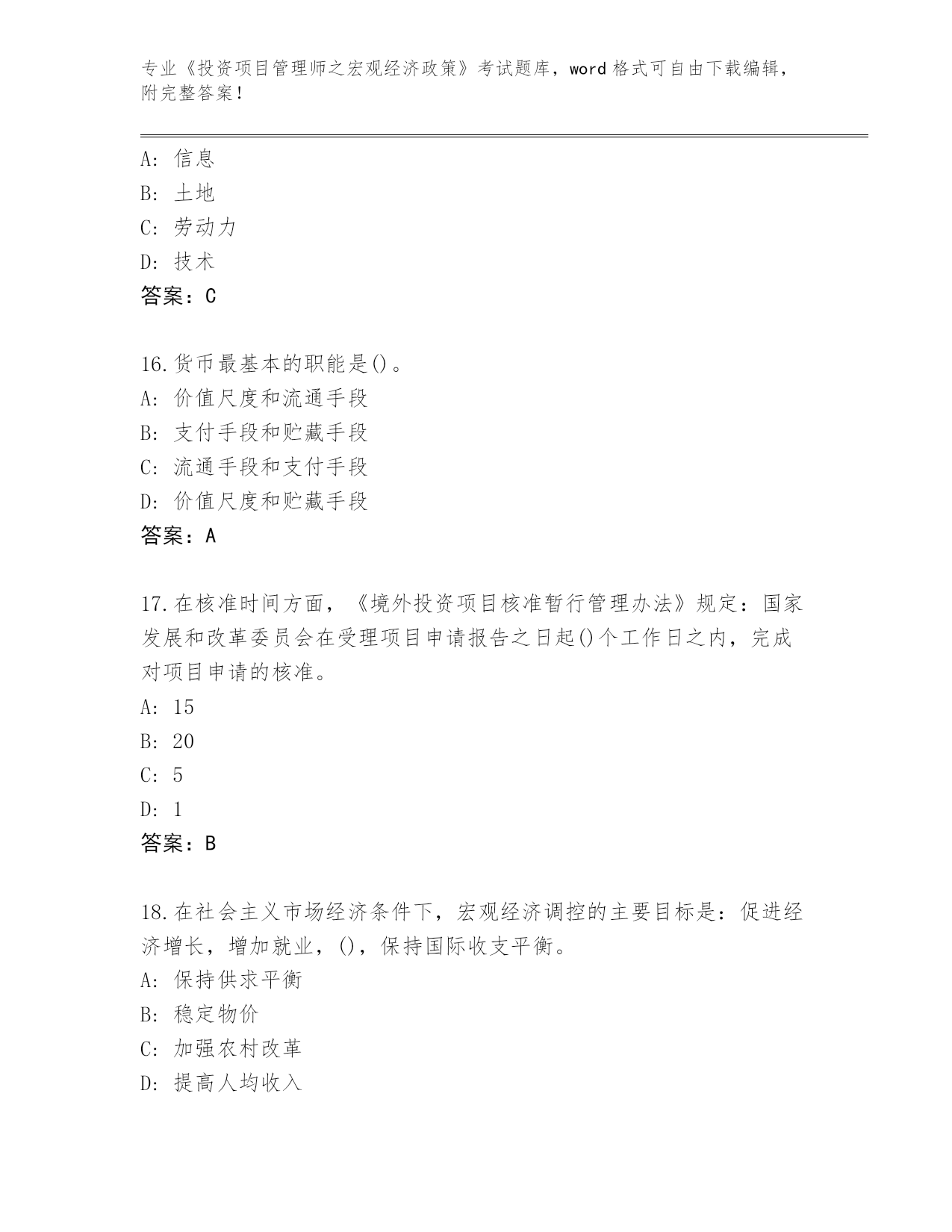 北京市平谷区2024年《投资项目管理师之宏观经济政策》考试题库(真题汇编)
