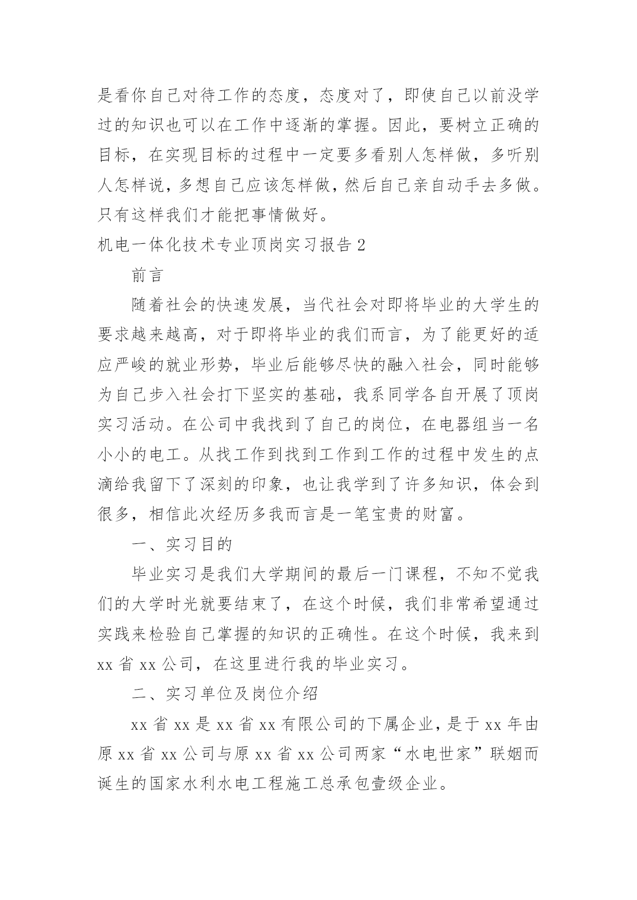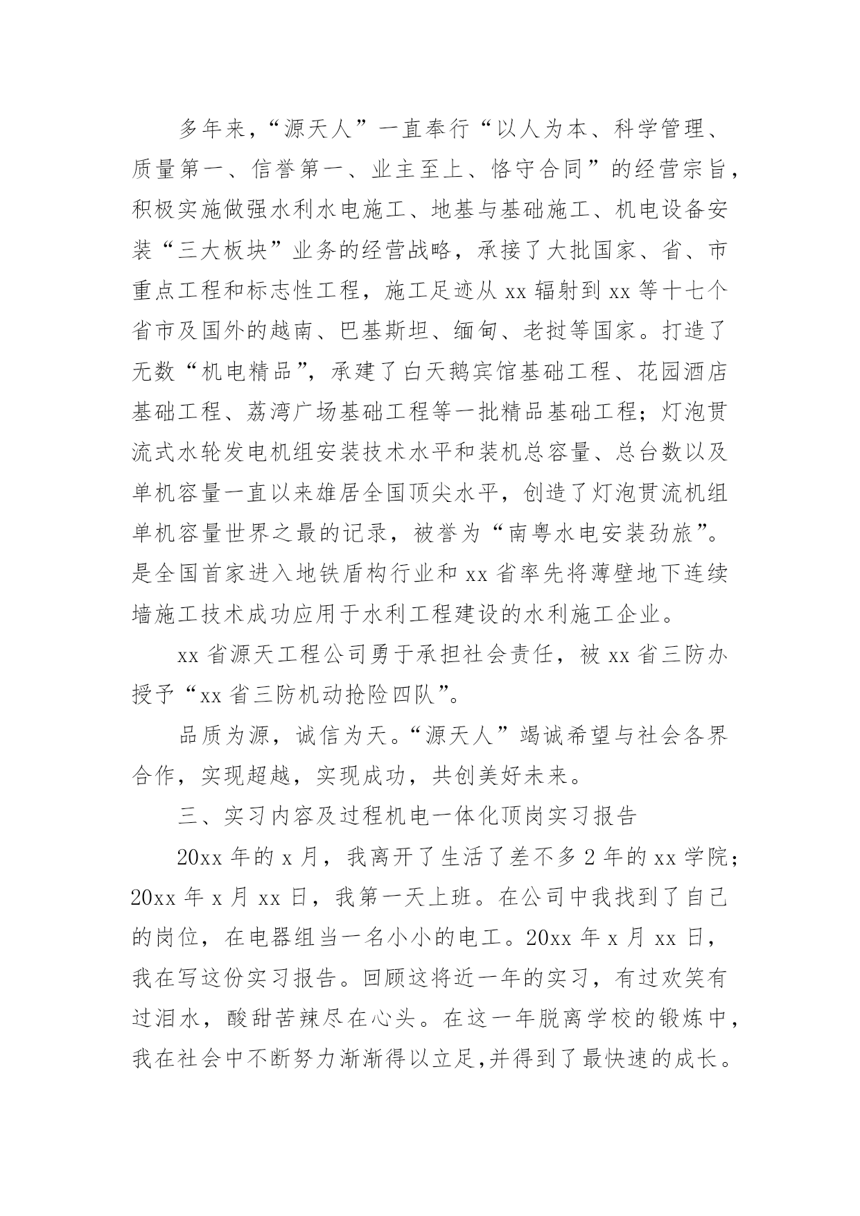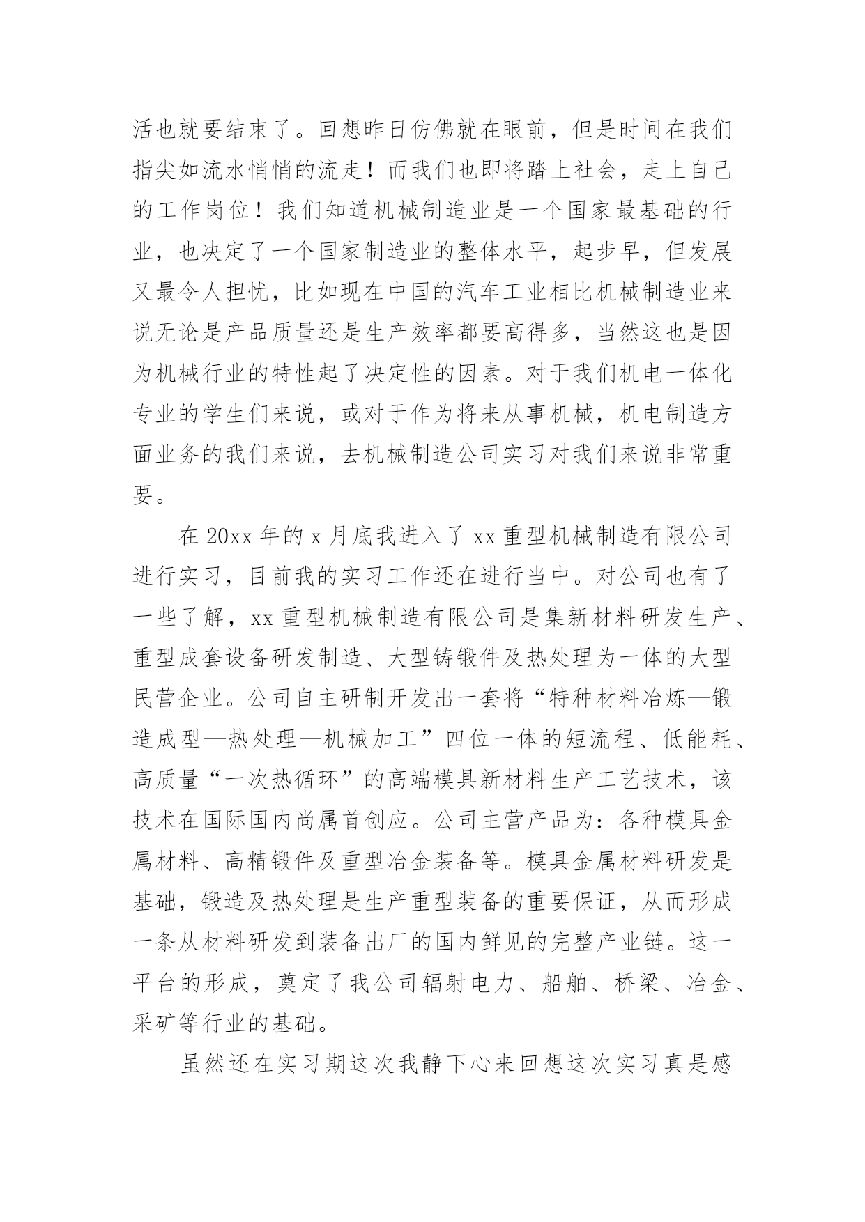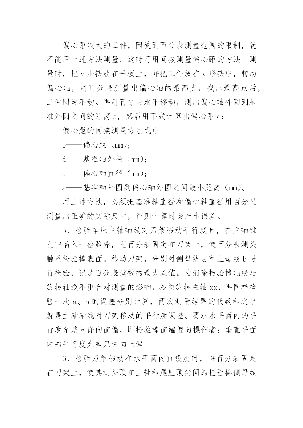 机电一体化技术专业顶岗实习报告机电一体化技术专业顶岗实习报告随着个人的素质不断提高,报告十分的重要,我们在写报告的时候要注意逻辑的合理性。相信很多朋友都对写报告感到非常苦恼吧,下面是小编整理的机电一体化技术专业顶岗实习报告,仅供参考,欢迎大家阅读。机电一体化技术专业顶岗实习报告1一、实习目的通过在xx的实习,可以使我们在实践中接触与本专业相关的一些实际工作,培养和锻炼我们综合运用所学的基础理论、基本技能和专业知识,去独立分析和解决实际问题的能力,把理论和实践结合起来,提高我们的实际动手能力,为将来我们毕业后走上工作岗位打下一定的基础。二、实习内容(一)量具当中百分表、千分尺在机加工中的使用1、使用前,应检查测量杆活动的灵活性。即轻轻推动测量杆时,测量杆在套筒内的移动要灵活,没有任何轧卡现象,且每次放松后,指针能回复到原来的刻度位置。2、测量时,不要使测量杆的行程超过它的测量范围;不要使测量头突然撞在零件上;不要使百分表和千分表受到剧烈的振动和撞击,亦不要把零件强迫推入测量头下,免得损坏百分表和千分表的机件而失去精度。因此,用百分表测量表面粗糙或有显著凹凸不平的零件是错误的。3、用百分表校正或测量零件时,应当使测量杆有一定的初始测力。即在测量头与零件表面接触时,测量杆应有xx的压缩量(千分表可小一点,有xx即可),使指针转过半圈左右,然后转动表圈,使表盘的零位刻线对准指针。轻轻地拉动手提测量杆的圆头,拉起和放松几次,检查指针所指的零位有无改变。当指针的零位稳定后,再开始测量或校正零件的工作。如果是校正零件,此时开始改变零件的相对位置,读出指针的偏摆值,就是零件安装的偏差数值。4、检查工件平整度或平行度时。将工件放在平台上,使测量头与工件表面接触,调整指针使摆动-转,然后把刻度盘零位对准指针,跟着慢慢地移动表座或工件,当指针顺时针摆动时,说明了工件偏高,反时针摆动,则说明了工件偏低了。当进行轴测的时候,就是以指针摆动最大数字为读数(最高点),测量孔的时候,就是以指针摆动最小数字(最低点)为读数。检验工件的偏心度时,如果偏心距较小,可测量偏心距,把被测轴装在两顶尖之间,使百分表的测量头接触在偏心部位上(最高点),用手转动轴,百分表上指示出的最大数字和最小数字(最低点)之差的就等于偏心距的实际尺寸。偏心套的偏心距也可用上述方法来测量,但必须将偏心套装在心轴上进行测量。偏心距较大的工件,因受到百分表测量范围的限制,就不能用上述方法测量。这时可用间接测量偏心距的方法。测量时,把v形铁放在平板上,并把工件放在v形铁中,转动偏心轴,用百分表测量出偏心轴的最高点,找出最高点后,工件固定不动。再用百分表水平移动,测出偏心轴外圆到基准外圆之间的距离a,然后用下式计算出偏心距e:偏心距的间接测量方法式中e——偏心距(mm);d——基准轴外径(mm);d——偏心轴直径(mm);a——基准轴外圆到偏心轴外圆之间最小距离(mm)。用上述方法,必须把基准轴直径和偏心轴直径用百分尺测量出正确的实际尺寸,否则计算时会产生误差。5、检验车床主轴轴线对刀架移动平行度时,在主轴锥孔中插入一检验棒,把百分表固定在刀架上,使百分表测头触及检验棒表面。移动刀架,分别对侧母线a和上母线b进行检验,记录百分表读数的最大差值。为消除检验棒轴线与旋转轴线不重合对测量的影响,必须旋转主轴xx,再同样检验一次a、b的误差分别计算,两次测量结果的代数和之半就是主轴轴线对刀架移动的平行度误差。要求水平面内的平行度允差只许向前偏,即检验棒前端偏向操作者;垂直平面内的平行度允差只许向上偏。6、检验刀架移动在水平面内直线度时,将百分表固定在刀架上,使其测头顶在主轴和尾座顶尖间的检验棒侧母线上,调整尾座,使百分表在检验棒两端的读数相等。然后移动刀架,在全行程上检验。百分表在全行程上读数的最大代数差值,就是水平面内的直线度误差。7、在使用百分表和千分表的过程中,要严格防止水、油和灰尘渗入表内,测量杆上也不要加油,免得粘有灰尘的油污进入表内,影响表的灵活性。8、百分表和千分表不使用时,应使测量杆处于自由状态,免使表内的弹簧失效。如内径百分表上的百分表,不使用时,应拆下来保存。(二)刀具的种类和注意事项另外自己对机加工也有了一些认识,我们在学校实习用的车床一般都是小型的车床如:ca6140这样的小车床,但是在公司我们使用的都是大车床,而且切削工件也不是在学校用的塑料制品,而是各种各样的成形钢材如:xx等等。在加工中我发现刀具的使用时非常重要的,因为刀具材料对加工表面的质量是有影响的,而工件的精确度对机械的性能也是也有影响的。所以在选择刀具时也要是非常重要的,因为它们与加工材料间的摩擦系数、亲合程度、材料的耐磨性和可刃磨性。刀具一般均用普通碳钢或合金钢制作,如焊接车刀、镗刀、转头、铰刀的刀柄。尺寸较小
