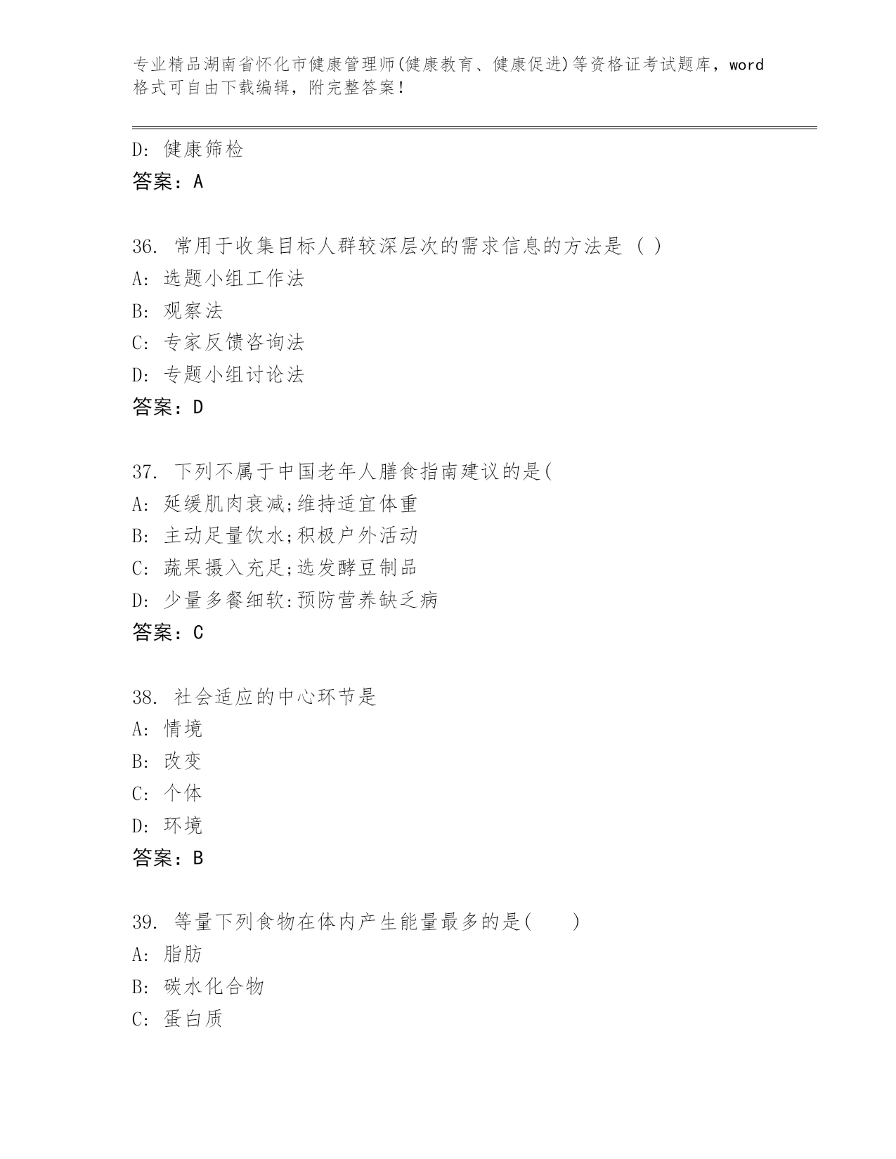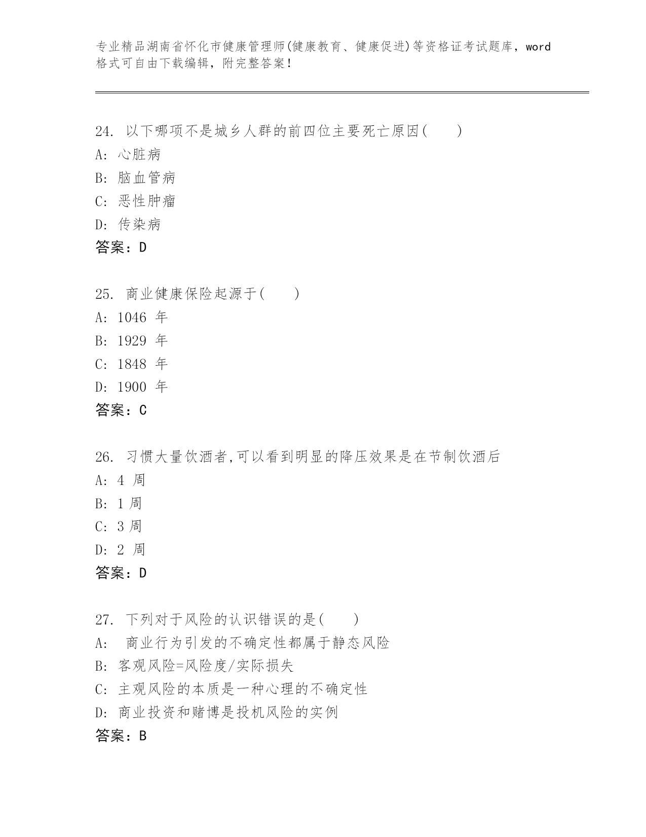 湖南省怀化市健康管理师(健康教育、健康促进)等资格证考试通用题库【典型题】.docx