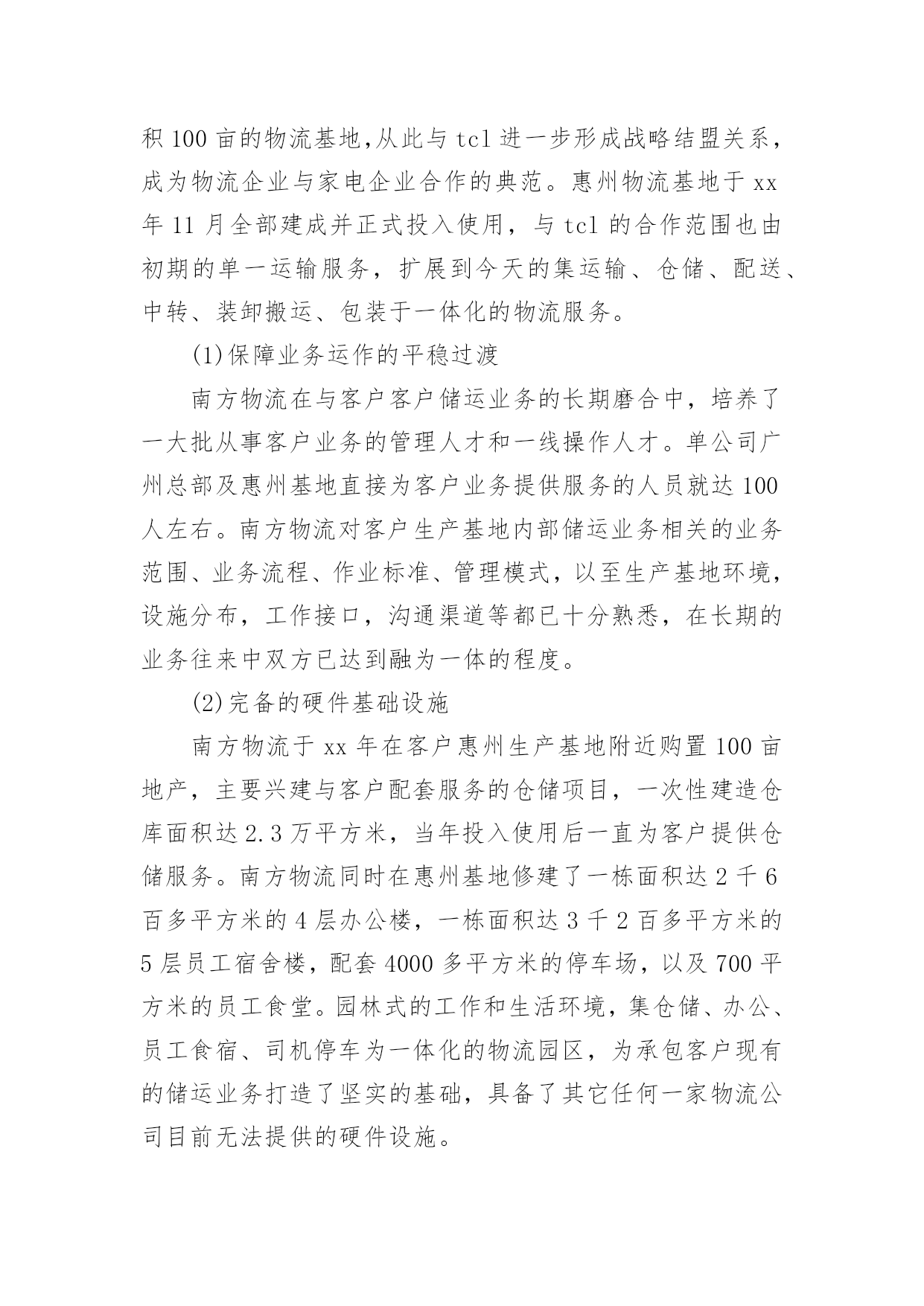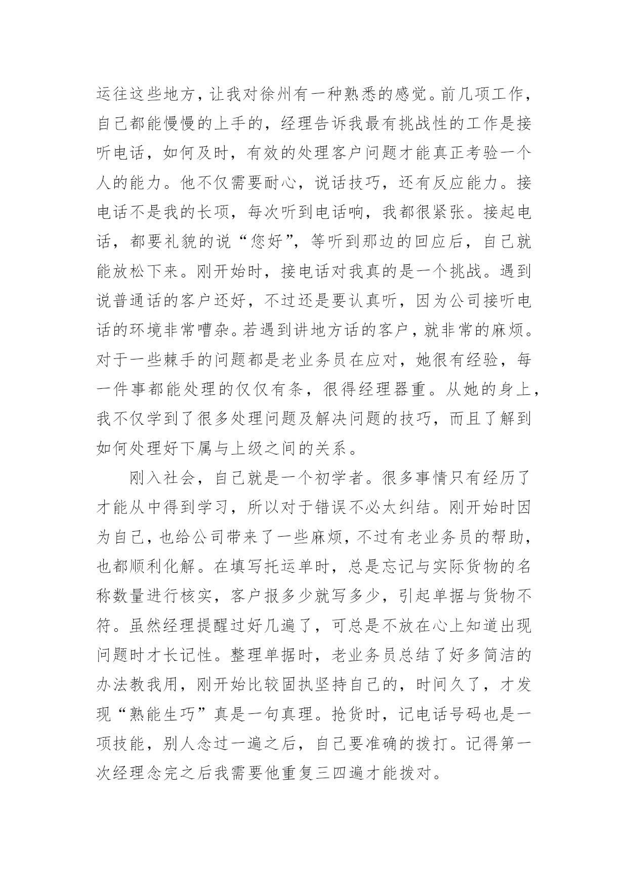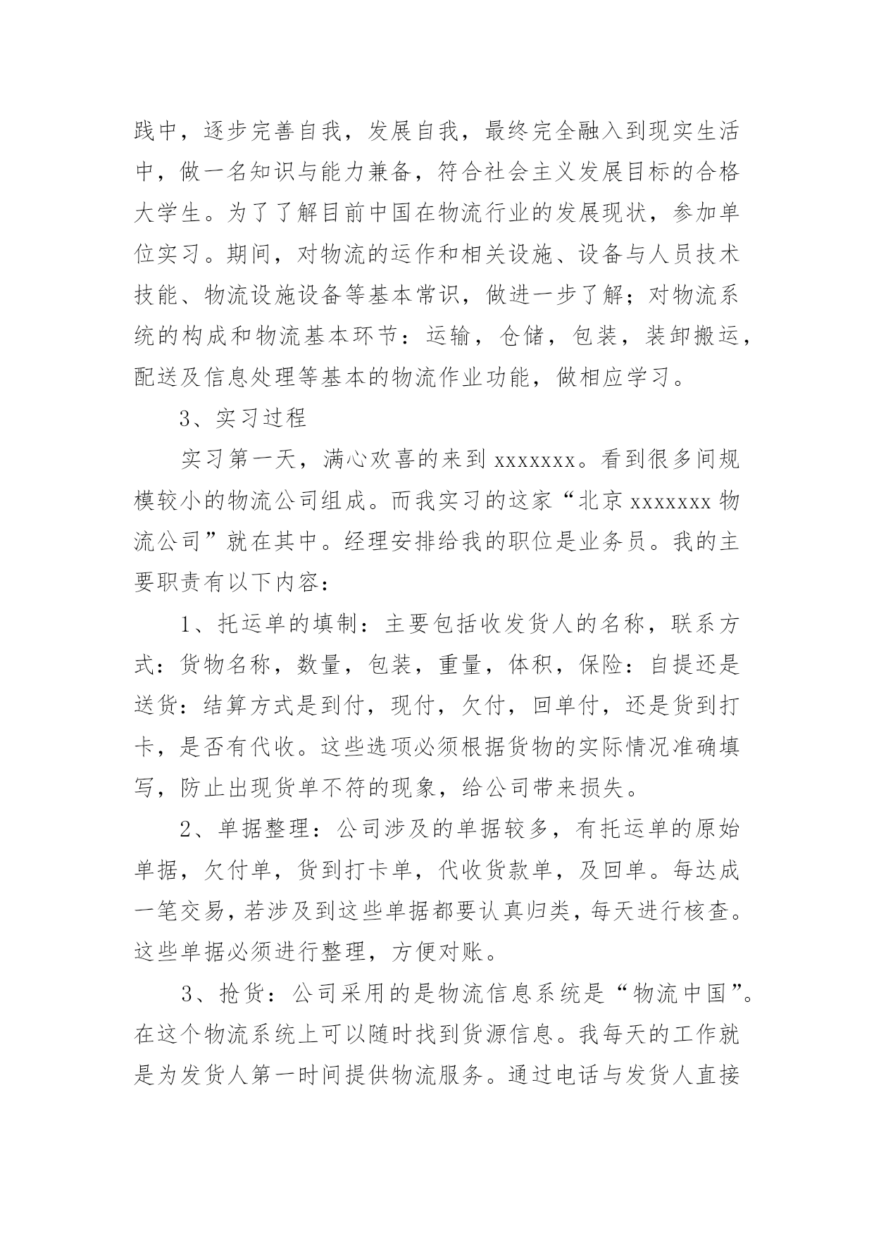 物流公司实习报告物流公司实习报告在学习、工作生活中,报告不再是罕见的东西,要注意报告在写作时具有一定的格式。相信很多朋友都对写报告感到非常苦恼吧,以下是小编为大家整理的物流公司实习报告,仅供参考,欢迎大家阅读。物流公司实习报告1一.实习目的:为了更好的适应以后的学习和工作,在这五天时间里主要学习了物流业的宏观和微观发展以及主要的物流流程。为以后的学习和工作打下坚实的基础,让我们对中国物流业的发展状况有一个比较全新的认识。二.实习要求:了解物流的特点,主要设备和作业流程,对其进行分析,并依据学习的理论提出自己的意见,了解物流配送中心的主要流程。三.实习单位概要:1.惠州南方物流公司介绍:南方物流于1993年开始与tcl合作,至1996年开始成为tcl运输主要合作伙伴,到1999年双方成立“tcl南方物流有限公司”,由南方物流在惠州投资1亿元兴建了占地面积100亩的物流基地,从此与tcl进一步形成战略结盟关系,成为物流企业与家电企业合作的典范。惠州物流基地于xx年11月全部建成并正式投入使用,与tcl的合作范围也由初期的单一运输服务,扩展到今天的集运输、仓储、配送、中转、装卸搬运、包装于一体化的物流服务。(1)保障业务运作的平稳过渡南方物流在与客户客户储运业务的长期磨合中,培养了一大批从事客户业务的管理人才和一线操作人才。单公司广州总部及惠州基地直接为客户业务提供服务的人员就达100人左右。南方物流对客户生产基地内部储运业务相关的业务范围、业务流程、作业标准、管理模式,以至生产基地环境,设施分布,工作接口,沟通渠道等都已十分熟悉,在长期的业务往来中双方已达到融为一体的程度。(2)完备的硬件基础设施南方物流于xx年在客户惠州生产基地附近购置100亩地产,主要兴建与客户配套服务的仓储项目,一次性建造仓库面积达2.3万平方米,当年投入使用后一直为客户提供仓储服务。南方物流同时在惠州基地修建了一栋面积达2千6百多平方米的4层办公楼,一栋面积达3千2百多平方米的5层员工宿舍楼,配套4000多平方米的停车场,以及700平方米的员工食堂。园林式的工作和生活环境,集仓储、办公、员工食宿、司机停车为一体化的物流园区,为承包客户现有的储运业务打造了坚实的基础,具备了其它任何一家物流公司目前无法提供的硬件设施。(3)业务运作和服务质量的比较优势a.kpi量化服务考核南方物流建立了严格的运行质量和服务质量的内部kpi自我考核机制,对运作质量进行严格监控。公司内部管理上的大力改革,人力资源上的不断引进和积累,服务意识和运作质量的显著提高,得到了客户物管中心的认可,这也从根本上保障了客户内部储运业务外包后的运作服务质量。b.先进的信息管理系统南方物流从1999年初开始,一直致力于物流信息系统的研发,信息系统对客户物流服务手段和信息处理技术的提升,赢得了客户物管中心及相关领导的高度评价。顺应物流供应链管理的纵向延伸,我司的信息系统功能将得到不断的提升,从软件上形成对客户储运业务的强有力支持。我们能做到:提高运作效率,降低客户物流成本南方物流惠州基地具有完备的硬件基础设施严格的内部kpi量化考核,提供专业物流公司的运作服务质量配套仓储、运输信息系统,提供增值物流资迅服务南方物流承包客户储运业务,拥有其它任何一家物流公司无法具备的比较优势。南方物流将用长远的战略眼光来对待双方业务的合作,双方更广阔领域的物流合作,必将给双方带来更深远意义的“双赢”局面。四.实习感想:刚到南方物流公司,至于物流的概念,仅仅是停留在浅显的书本知识。对于物流的本身感到很神秘,不敢想象现实中的物流业和心目中的物流业有那些不同之处。对于物流,我只是知道它是集:运输、储存、搬运、包装、流通加工、配送、信息处理等基本功能实施的有机结合。但没有想到它的实际操作却没有这么的简单。通过五天的简单了解,使我对于物流配送有了更加深刻的认识。中国的物流业虽然没有国外发达,但这并代表中国物流业的落后,譬如中国劳动力廉价的国情严重的制约了中国物流业信息技术化的发展速度。这一点作为国人的物流人士有着切肤的体会。货物运转速度慢,货差货损率高难以避免,高层货架利用率严重低下。野蛮的装卸态度更是制约中国物流业发展的瓶颈之一。五.实习结论及建议:1.物流配送中心存在的问题:a.各部门之间的协调能力差,物流区域布局不合理;b.仓库高层货架的利用率过低,有的不到三分之一;c.野蛮装卸导致货损、货差率过高;d.供货方、中介方和销售方的物流信息不畅,严重导致退货量过多,造成不必要的资源浪费;f.配送中心各部门和各配送区间没有得到更大程度的有效利用;2.针对上述问题所提出的合理化建议和意见:a.加强各部门之间沟通和联系力度,合理分配各部门之间的物流作业,有效利用物流配送中心的作业区域,利用空间、设备、人员和能源;最大限度地减少