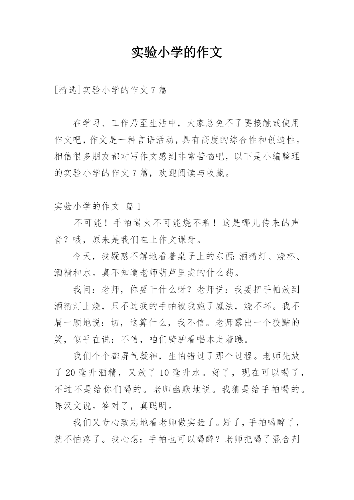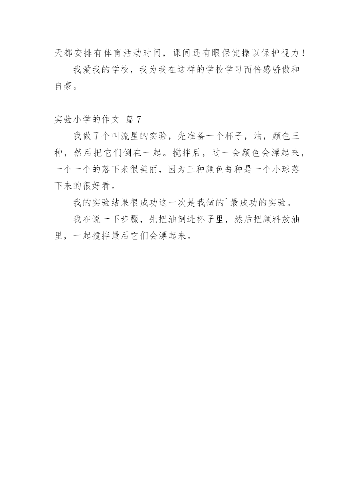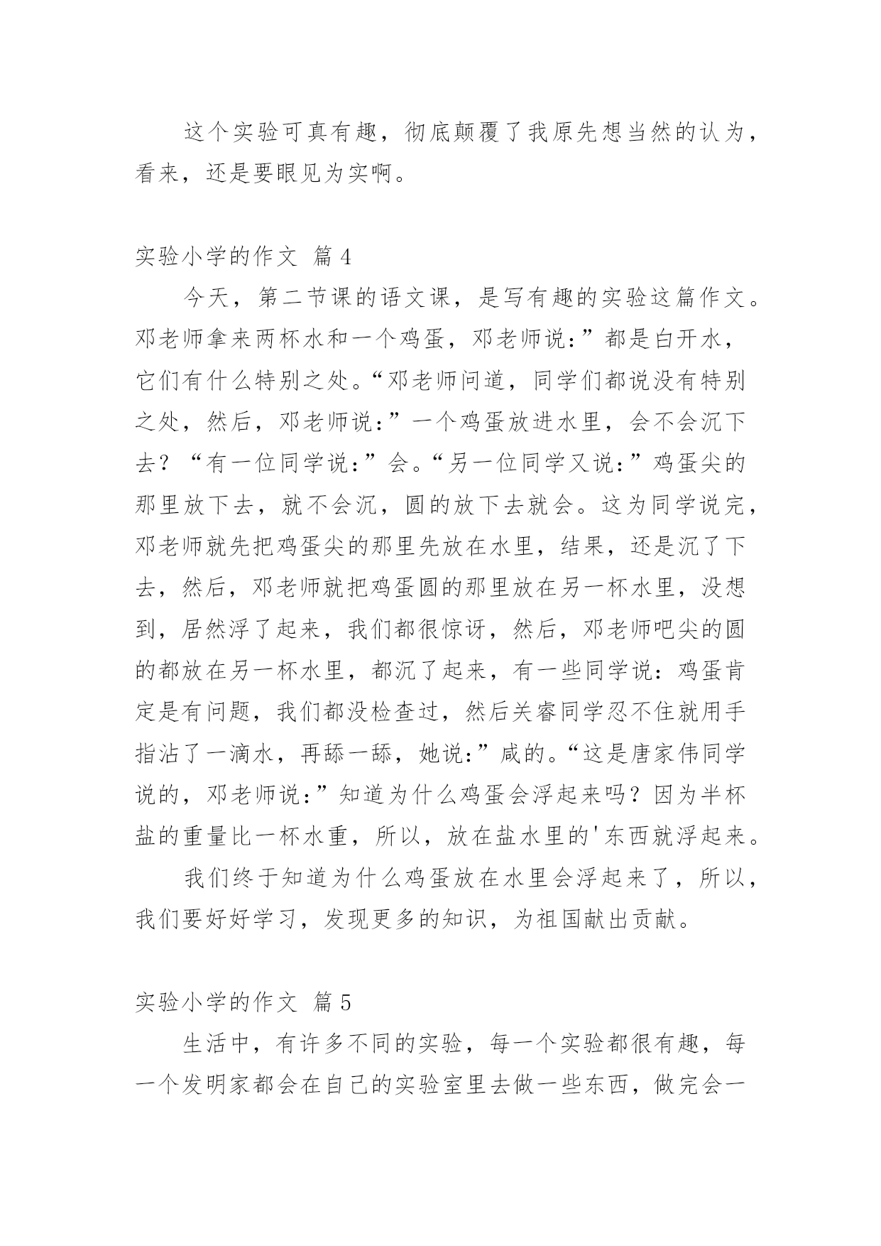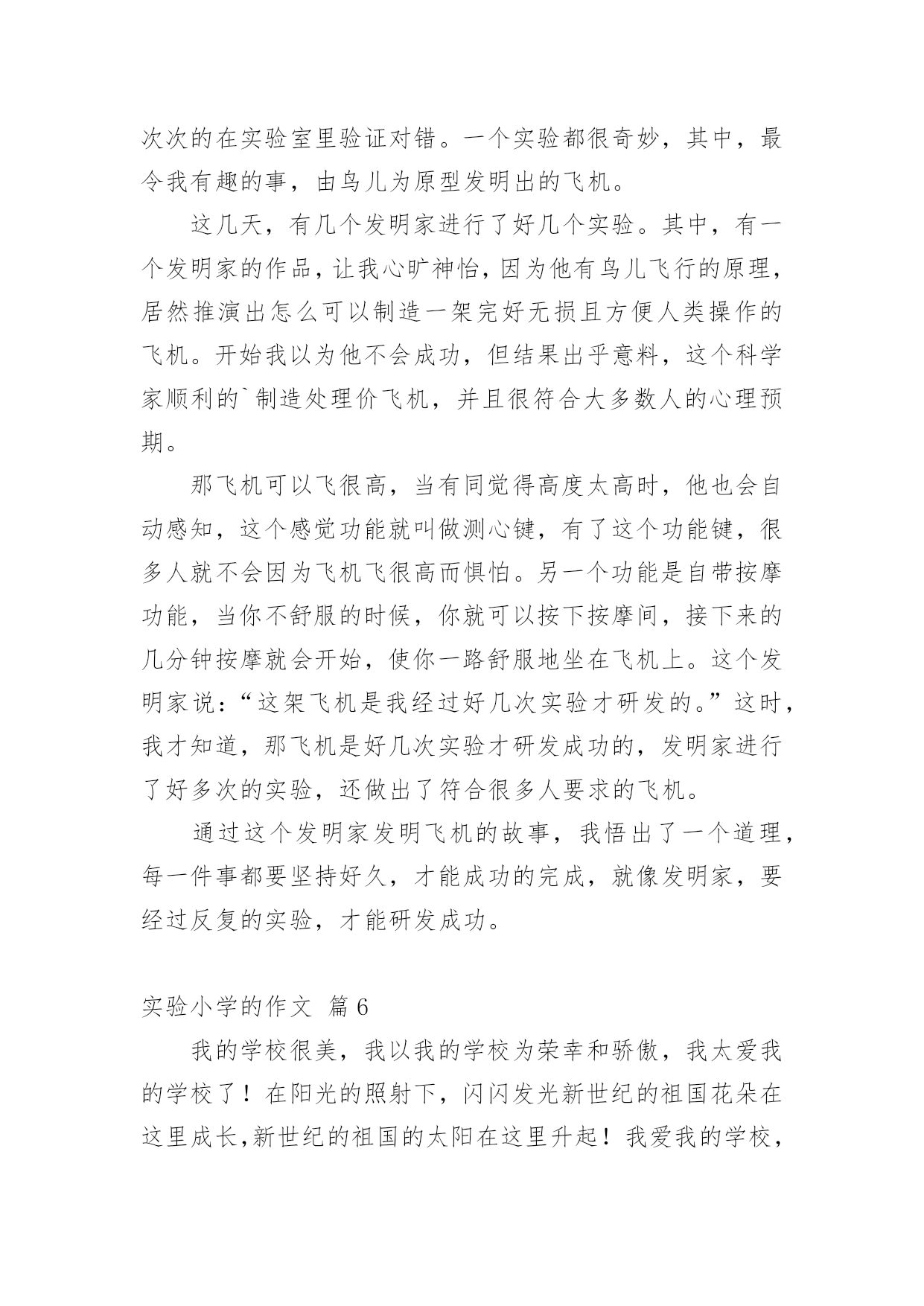 实验小学的作文[精选]实验小学的作文7篇在学习、工作乃至生活中,大家总免不了要接触或使用作文吧,作文是一种言语活动,具有高度的综合性和创造性。相信很多朋友都对写作文感到非常苦恼吧,以下是小编整理的实验小学的作文7篇,欢迎阅读与收藏。实验小学的作文篇1不可能!手帕遇火不可能烧不着!这是哪儿传来的声音?哦,原来是我们在上作文课呀。今天,我疑惑不解地看着桌子上的东西:酒精灯、烧杯、酒精和水。真不知道老师葫芦里卖的什么药。我问:老师,你要干什么呀?老师说:我要把手帕放到酒精灯上烧,只不过我的手帕被我施了魔法,烧不坏。我不屑一顾地说:切,这算什么,我不信。老师露出一个狡黠的笑,似乎在说:不信,咱们骑驴看唱本走着瞧。我们个个都屏气凝神,生怕错过了那个过程。老师先放了20毫升酒精,又放了10毫升水。好了,现在可以喝了,不过不是给你们喝的。老师幽默地说。我猜是给手帕喝的。陈汉文说。答对了,真聪明。我们又专心致志地看老师做实验了。好了,手帕喝醉了,就不怕疼了。我心想:手帕也可以喝醉?老师把喝了混合剂的手帕放到烧架上。老师学着刘谦说:接下来,就是见证奇迹的'时刻!手帕虽然烧着了,但火又迅速地被灭了。我心里想:难道手帕有灭火器一样的本领?朱佳鑫摸了摸头惊讶地说:竟然毫发无损!同学们被惊得呆若木鸡。最后,老师告诉了我们原理:玻璃中盛的是两份酒精,一份水。酒精的沸点只有78℃,而水的沸点是100℃。所以酒精是很容易从手帕中挥发掉的,一部分水留在手帕上,保护着手帕。另外,在酒精燃烧的过程中,有一部分水变成蒸汽挥发了,这些挥发的水汽带走了手帕的一部分温度,从而降低手帕的温度。通过这个实验我明白生活中有许多东西都可变成神奇的实验,只不过就差你们善于发现的眼睛啦!实验小学的作文篇2上科学课时,老师总会给我们讲一些小实验,引起了我们的极大兴趣。每次回到家,我都想自己亲手试一试。刚好假期里的科学微课有一节叫色彩大爆发,教我们如何做气泡可乐,我就开始动手了。我翻箱倒柜地找出了原材料,水、杯子、勺子、红糖、白醋和小苏打。瞧,我的实验开始了!首先,我把水倒入杯子中,然后,加一勺红糖,接下来,把它们搅拌均匀,直到红糖完全溶化为止。这时,倒入少量的小苏打,最后,加入白醋。我刚要继续……哎呀,不好了!泡沫太多了,它们冲出了杯子,没过了勺子,弄得哪都是。妈妈看见了,说:“气泡多,说明小苏打放多了。”妈妈尝了一口:“呸,呸,好酸啊。你的醋也放多了。”我觉得妈妈说得很有道理,就小心翼翼地又做了一次实验。这一次,冒的泡并不多,说明小苏打放得不多,我终于找好了比例。从外观上看,自制可乐和买的.可乐没有什么区别,颜色黑红,冒着小气泡。我急忙品尝了一口,嗯,这次做出的可乐香甜可口,美味无比!试验成功了,我终于露出胜利的微笑。我发现了自己做的可乐要比买的还好喝,因为里面有劳动的快乐,我以后还要自制气泡可乐。实验小学的作文篇3大千世界真是无奇不有,有的时候道听途书的不一定是真的,还是需要眼见为实哦!"儿子,快来!妈妈给你做个好玩又有趣的实验,好不好?""好,来了。"我飞快的跑到妈妈身边,只见桌上摆着两个瓶子,一些水、一些米、一些黄豆、一把椅子、一块木板和一个电子秤。我疑惑的看着这些材料,这到底是要做什么实验呢?我迫不及待的开始做起了实验!按照妈妈所说的步骤,开始动手做了起来。首先我在其中一个瓶子里装上了一定量的米,用秤称好它的重量,然后妈妈在另一个瓶子里装上了同等重量的水。接着我们把木板倾斜45度角,斜靠在椅子的椅背上,妈妈把两个瓶子同时放在木板顶端同一水平线上,让它们从同一高度滚落下去,看哪个先落下来。滚之前妈妈叫我猜猜看到底是哪个比较快一些?我想它们的重量是一样的,那么滚得速度应该也是一样快!但妈妈却意味深长的笑了笑,并认为是装水的比装米的跑得快。究竟谁猜对了呢?让我们拭目以待。随着妈妈喊着:"一二三,放!"我屏气凝神的'看着,两个瓶子同时从木板顶部出发,近了!近了!装水的瓶子已经接近木板底端了,可装米的瓶子还在慢悠悠的滚下来。哎,是我输了!可为什么明明两个瓶子的重量是一样的,装米的却比装水的速度慢这么多呢?带着疑惑,我们决定用黄豆替换成米,再试一回。将瓶子里的米倒掉后,我又装上了等量的黄豆。在木板顶部的同一水平线上,同时将两个瓶子放下,结果还是装水的那个瓶子速度较快的滚落下来。与装水的瓶子比,装米的和装黄豆的速度都比较慢,那到底三个里面谁的速度最慢呢?我又一次尝试着将等量的黄豆和米同时从木板顶部放下,我发现之前黄豆虽然滚得比水慢,但是远比米滚得快多了。一样的重量,怎么会一个滚得快,一个滚得慢呢?妈妈看着我满脸疑惑的样子,笑着给我解答说:"在滚动的时候,米与米之间,米与瓶子内壁之间会产生巨大的摩擦,所以米的速度最慢。而水对瓶子内壁的摩擦要小得多,所以水的速度最快。"这时我才恍然大悟,原