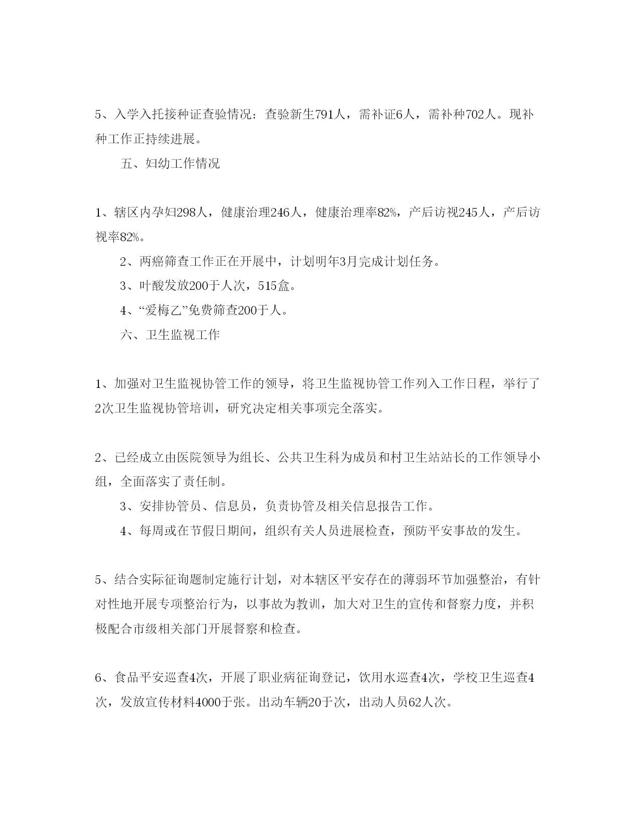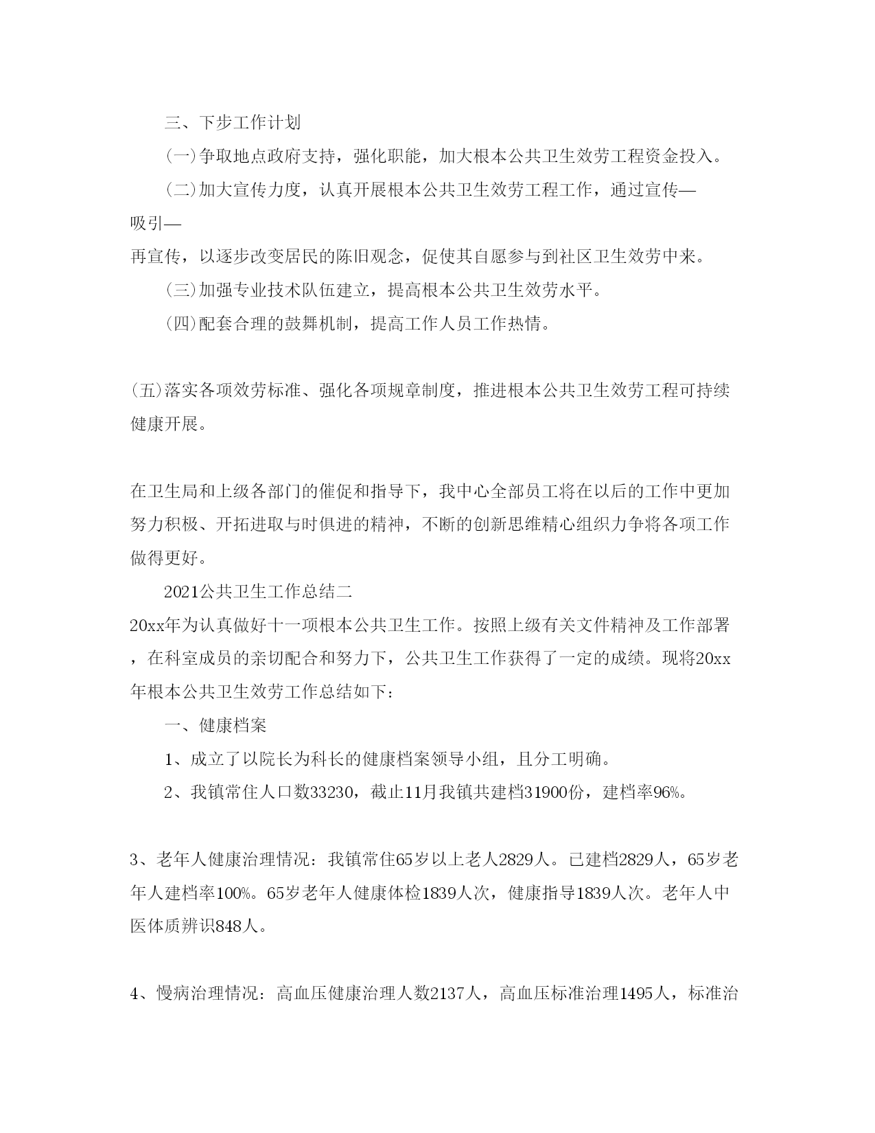 2021公共卫生工作参考总结2021公共卫生工作总结一20xx年,我公卫中心在卫生局和院长的正确领导下,严格执行《国家根本公共卫生效劳标准(20xx年版)》认真贯彻落实《20xx年根本公共卫生效劳工程工作方案》以及卫生局各类文件精神,加强内部治理,严抓根本公共卫生效劳工程工作,充分调动全站职工的工作积极性和主动性,获得了较好效果,现将我中心根本公共卫生效劳工程工作总结汇报一、根本公共卫生效劳工程开展落实情况(一)、居民健康档案工作按照《20xx年根本公共卫生效劳建立居民健康档案工程工作方案》要求,在卫生局统一部署下,我中心于今年7月份成立开展了20xx年建立居民健康档案工作。一是争取领导注重,搞好综合协调。二是加强组织领导,落实工作责任。为确保居民健康档案工作的顺利进展,我中心专门成立了由院长任组长、站长任副组长、多名成员的居民健康档案工作领导小组,加强整个镇居民健康档案工作组织领导,制定了操作性强、实在可行的施行方案。成立专门建档工作小组和居民健康体检小组互相积极配合采取进入户调查统一体检效劳的方式为居民建立健康档案建档工作。三、是加大宣传力度,提高居民主动建档认识。为提高我镇居民主动参与建档认识,我中心大力宣传发放各类宣传材料让每一名社区居民理解居民健康档案,积极主动配合我中心建档工作小组顺利完成居民建档工作。四、加强人员培训,强化效劳认识。为确保我镇居民健康档案保质保量完成,我中心对每一名参与居民健康档案建立的工作人员进展了屡次业务培训,让每一名工作人员熟悉居民健康档案建立的重要性和必要性,纯熟掌握本人的本职工作和建档程序。截止20xx年12月10日,我中心共分为十三个责任区,居民建立家庭健康档案纸质档案67205份,并把纸质居民健康档案完善合格录入居民电子健康档案系统。(二)、老年人健康治理工作按照《20xx年根本公共卫生效劳老年人健康治理工程工作方案》及卫生局要求,我中心开展了老年人健康治理效劳工程。一、结合建立居民健康档案对我镇60岁以上老年人进展登记治理,并对所有登记治理的老年人免费进展一次健康危险要素调查和一般体魄检查及空腹血糖测试,并提供自我保健及损害预防、自救等健康指导。二、开展老年人健康干预。对觉察已确诊的高血压和2型糖尿病患者纳入相应的慢性病患者进展治理;对存在危险要素且未纳入其他疾病治理的老年居民进展定期随访,并告知该居民一年后进展下一次免费健康检查。截止20xx年12月,我中心共登记治理60岁以上老年6947人。并按要求录入居民电子健康档案系统。(三)、慢性病治理工作为有效预防和操纵高血压、糖尿病等慢性病,按照《20xx年根本公共卫生效劳慢性病治理工程工作方案》及卫生局要求,我中心对我镇居民的高血压、2型糖尿病等慢性病建立健康档案,开展高血压、2型糖尿病等慢性病的随访治理、康复指导工作,掌握我镇高血压、2型糖尿病等慢性病发病、死亡和现患情况。1、高血压患者治理一是通过开展35岁及以上居民首诊测血压;居民诊疗过程测血压;健康体检测血压;和健康档案建立过程中询征询等方式觉察高血压患者。二是对确诊的高血压患者进展登记治理,并提供面对面随访,每次随访询征询病情、测量血压,对用药、饮食、运动、心理等提供健康指导。三是对已经登记治理的高血压患者进展一次免费的健康体检(含一般体魄检查和随机血糖测试)。截止12月,我中心共登记治理并提供随访高血压患者为4326人。并按要求录入居民电子健康档案系统。2、2型糖尿病患者治理一是通过健康体检和高危人群筛查检测血糖;建立居民健康档案过程中询征询等方式觉察患者。二是对确诊的2型糖尿病患者进展登记治理,并提供面对面随访,每次随访要询征询病情、进展空腹血糖和血压测量等检查,对用药、饮食、运动、心理等提供健康指导。三是对已经登记治理的2型糖尿病患者进展一次免费健康体检(含一般体魄检查和空腹血糖测试)。截止12月,我中心共登记治理并提供随访的糖尿病患者为1863人。并按要求录入居民电子健康档案系统。(四)、健康教育工作一是严格按照健康教育效劳标准要求,认真贯彻落实卫生局及上级部门的各项健康教育工程工作。采取了发放宣传材料、开展健康宣教、设置宣传栏的各种方式,针对重点人群、重点疾病和我镇主要卫生征询题和危险要素开展健康教育和健康促进活动。今年共举办各类知识讲座和健康征询活动14次,发放各类宣传材料32200余份,更换宣传栏内容9次。(五)、传染病报告与处理工作一是按照《传染病防治法》《传染病信息报告治理标准》以及传染病报告与处理标准要求,建立健全了传染病报告治理制度。二是定期对本单位人员进展传染病防治知识、技能的培训;采取多种方式对我镇社区居民进展传染病防制知识的宣传教育,提高了我镇居民传染病防制知识的知晓率。三是按照《