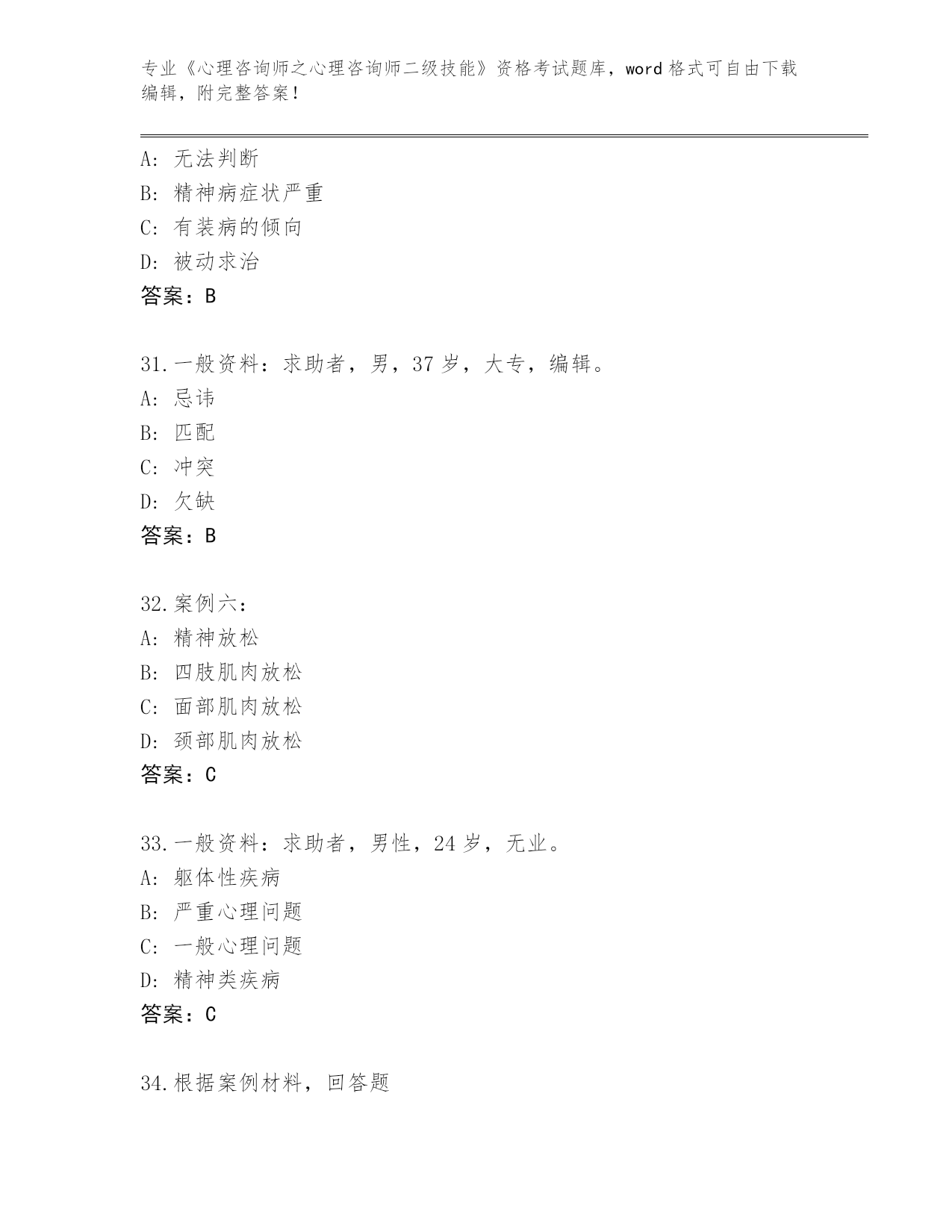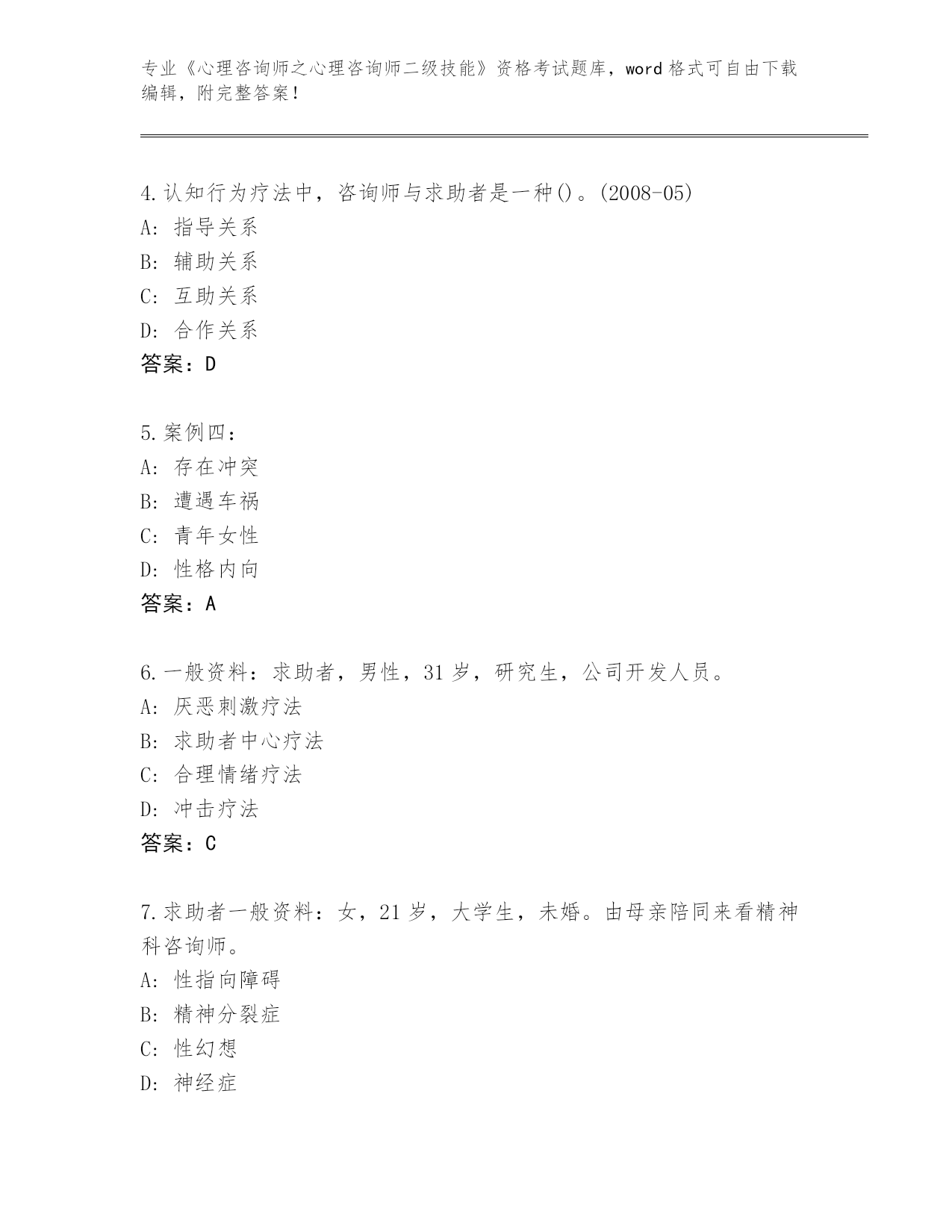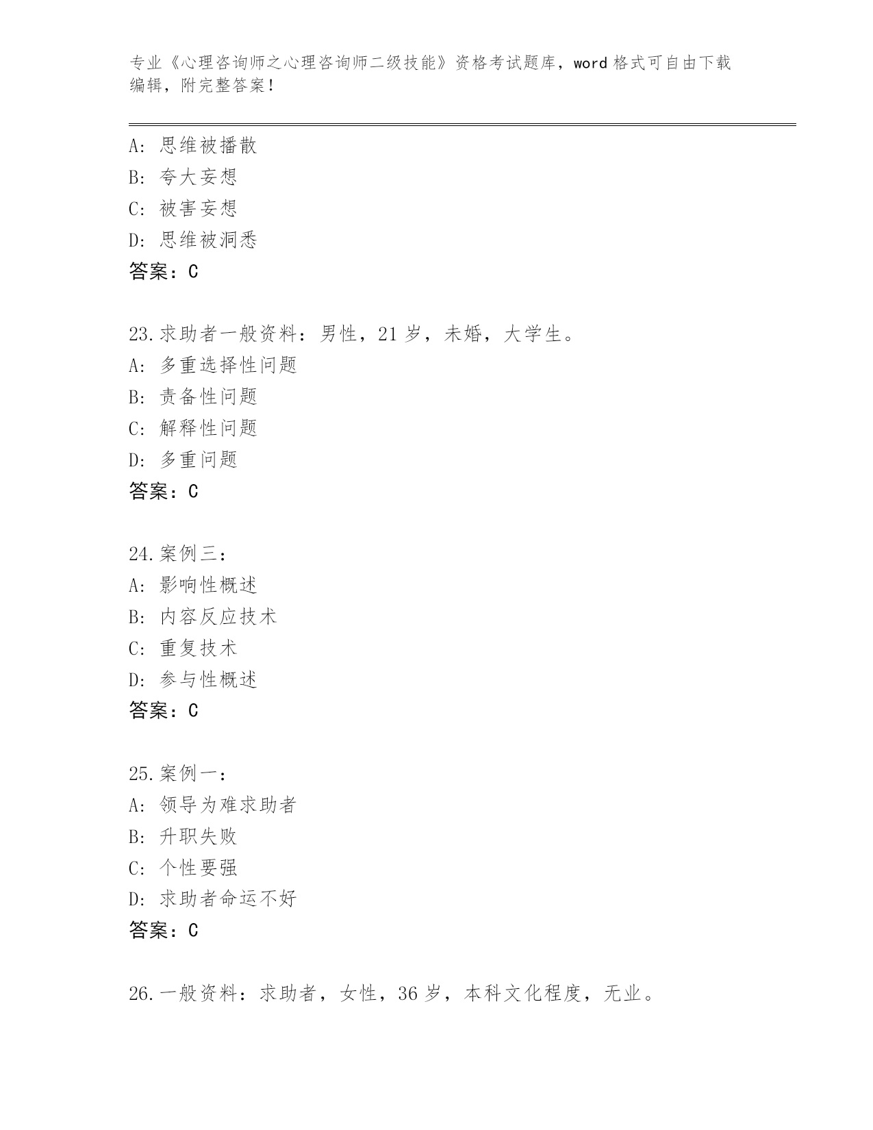 山西省蒲县2024《心理咨询师之心理咨询师二级技能》资格考试大全(精练)