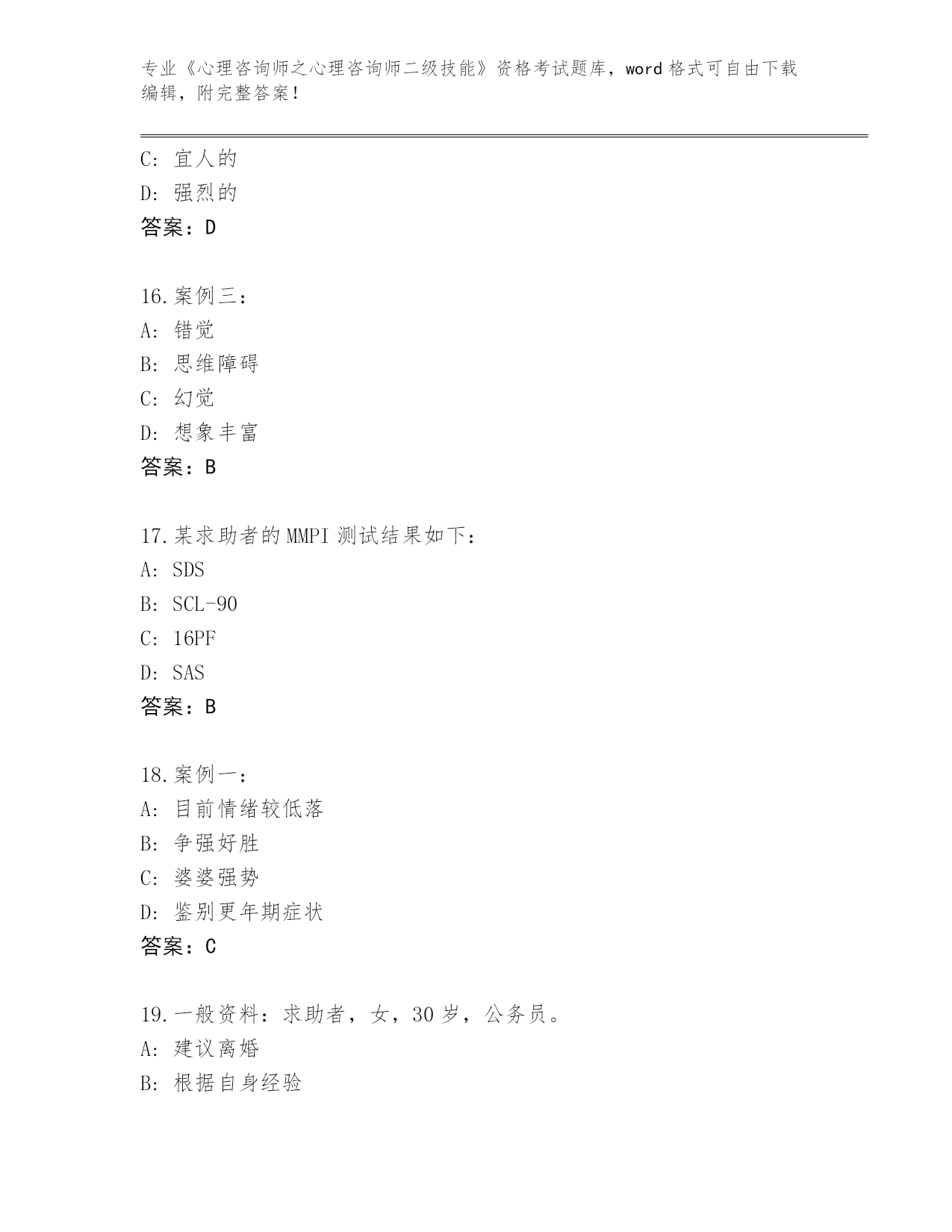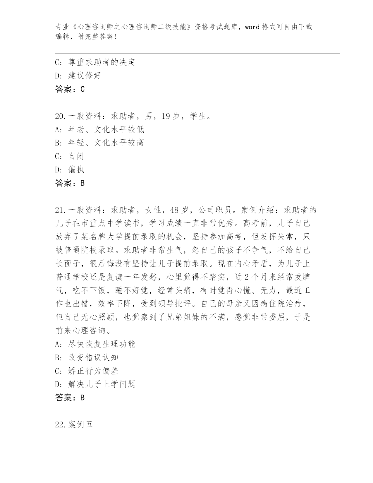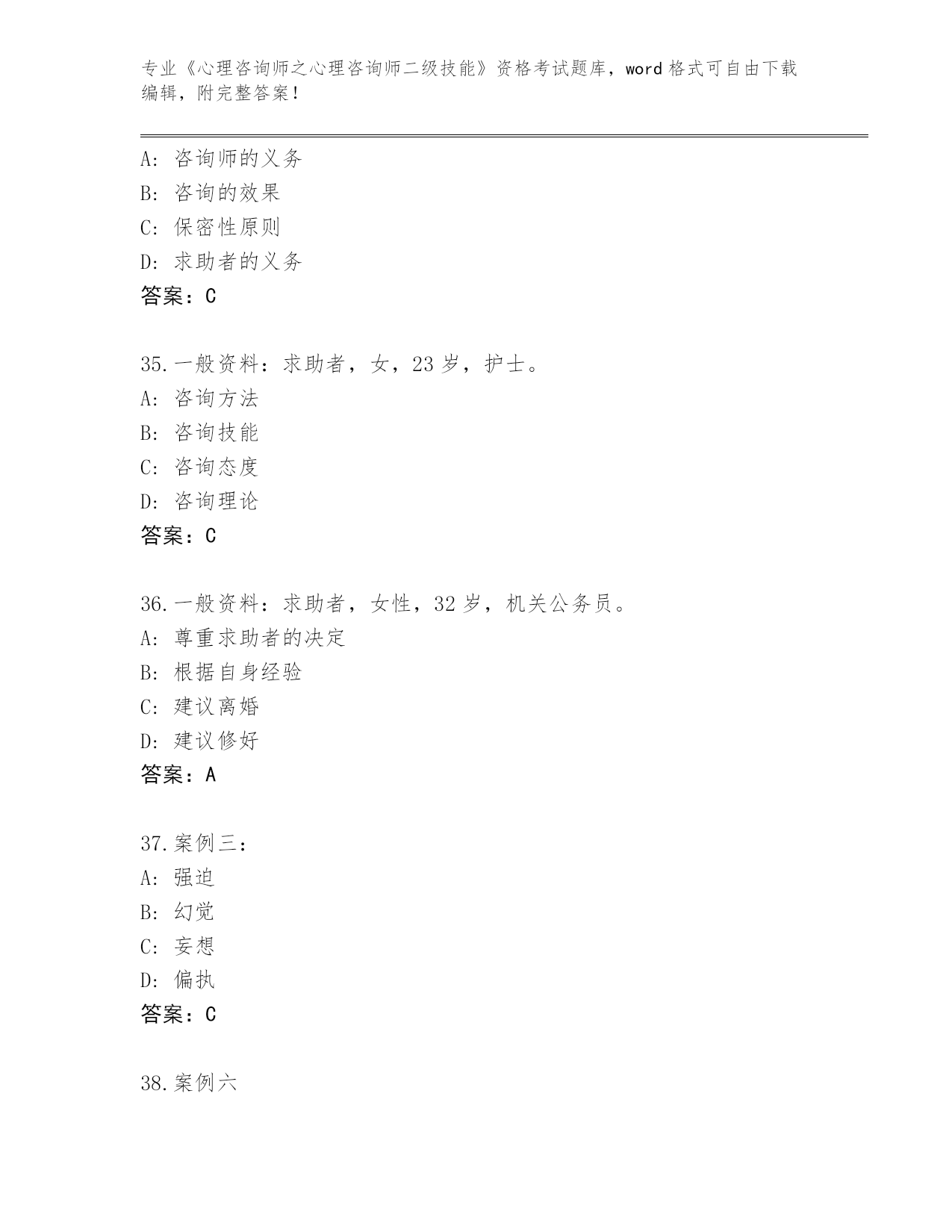山西省蒲县2024《心理咨询师之心理咨询师二级技能》资格考试大全(精练)