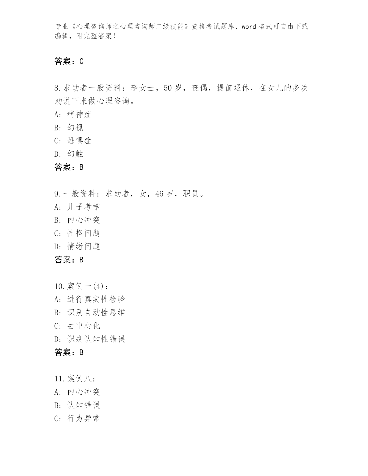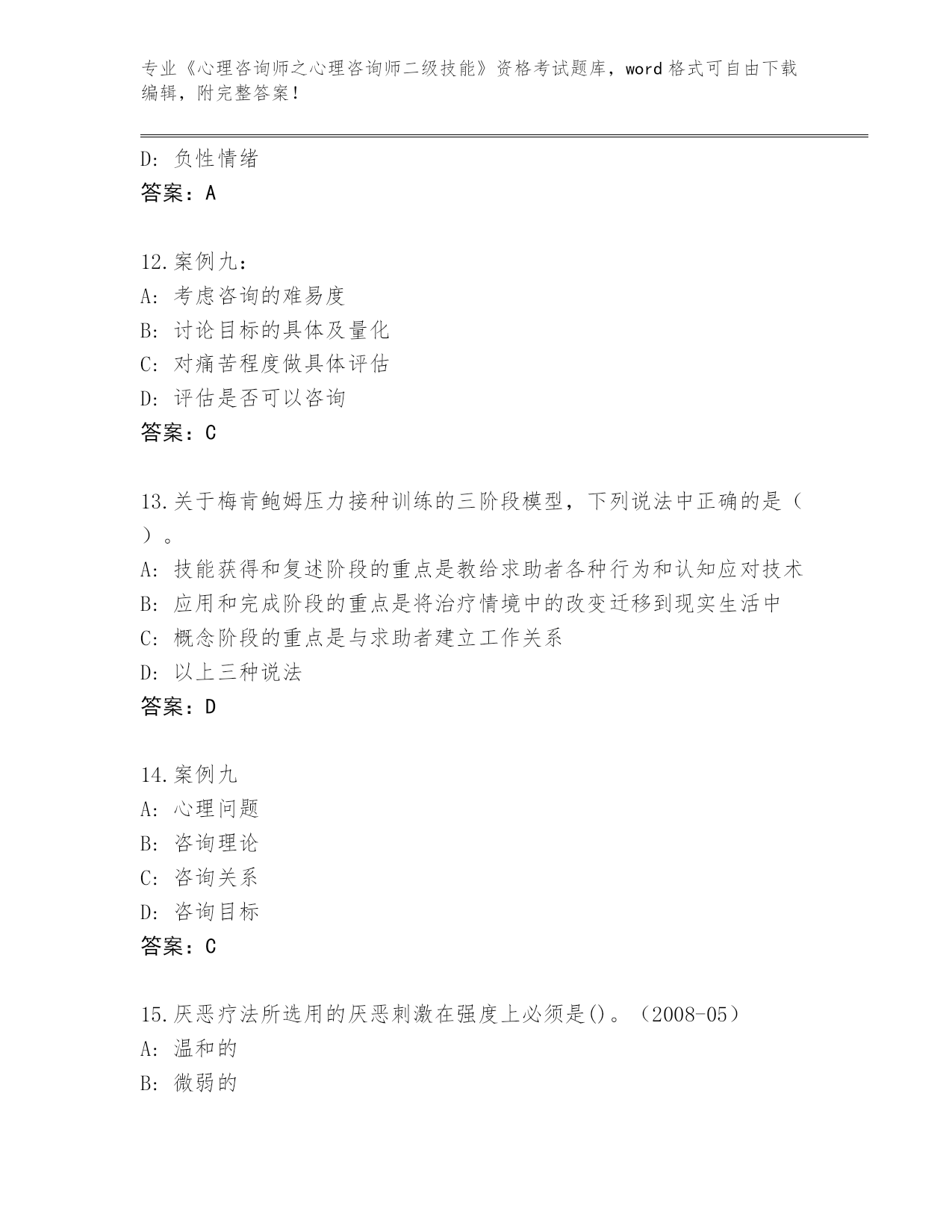 山西省新荣区2024年《心理咨询师之心理咨询师二级技能》资格考试必背200题大全含答案AB卷