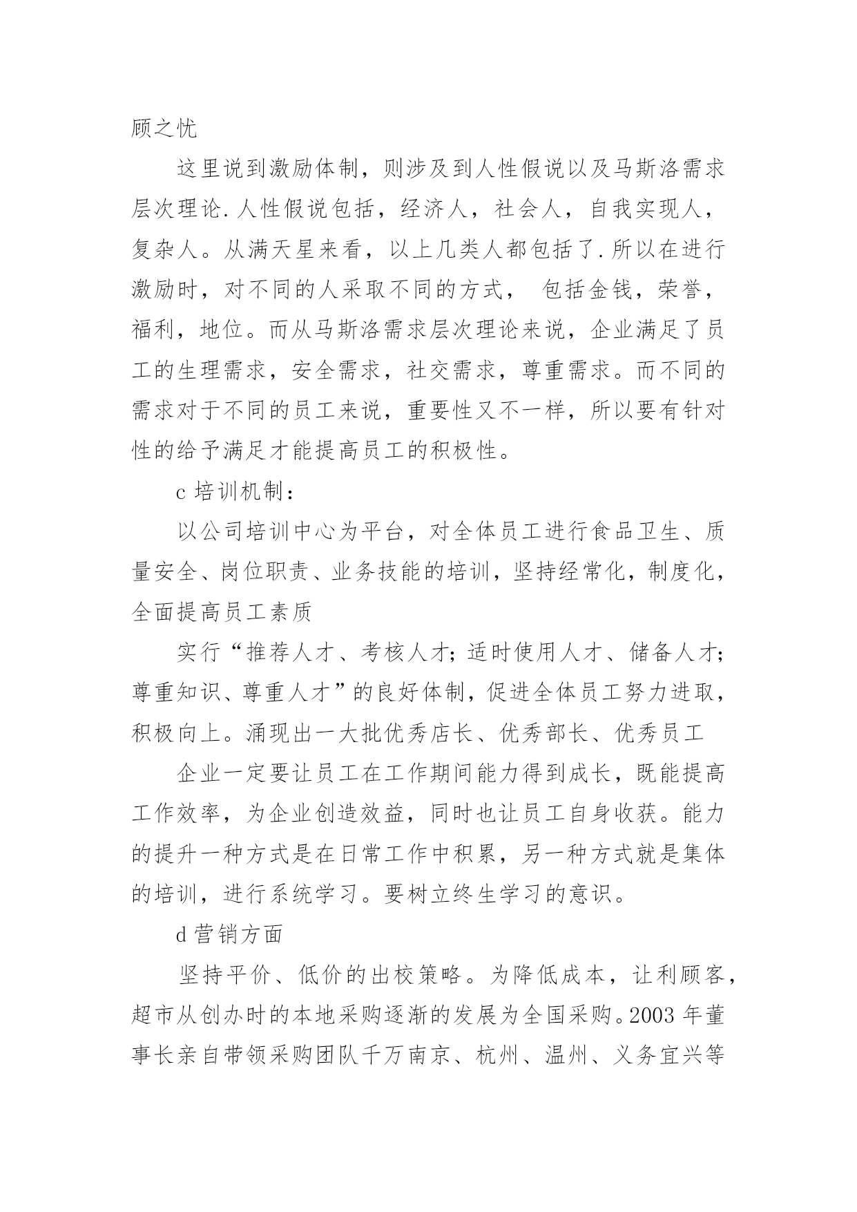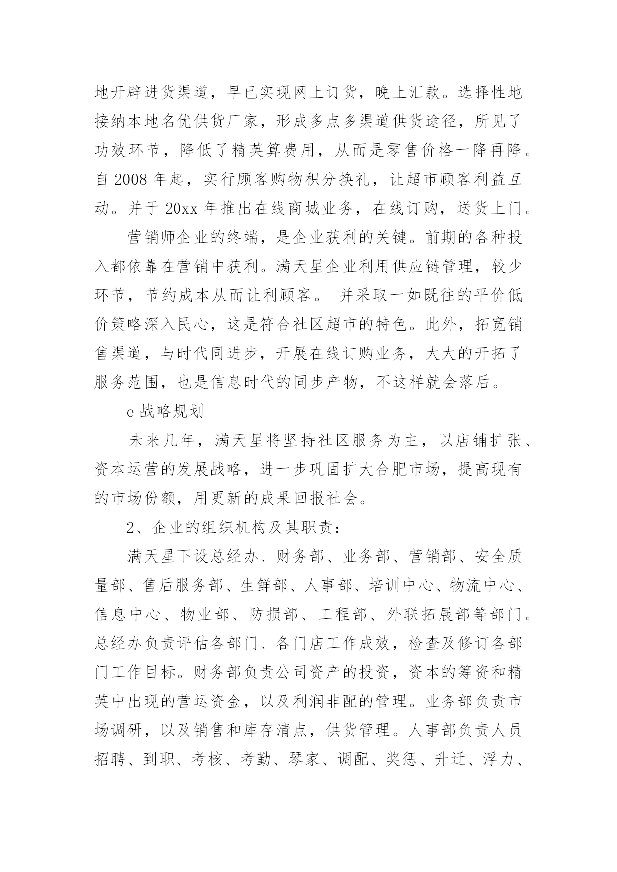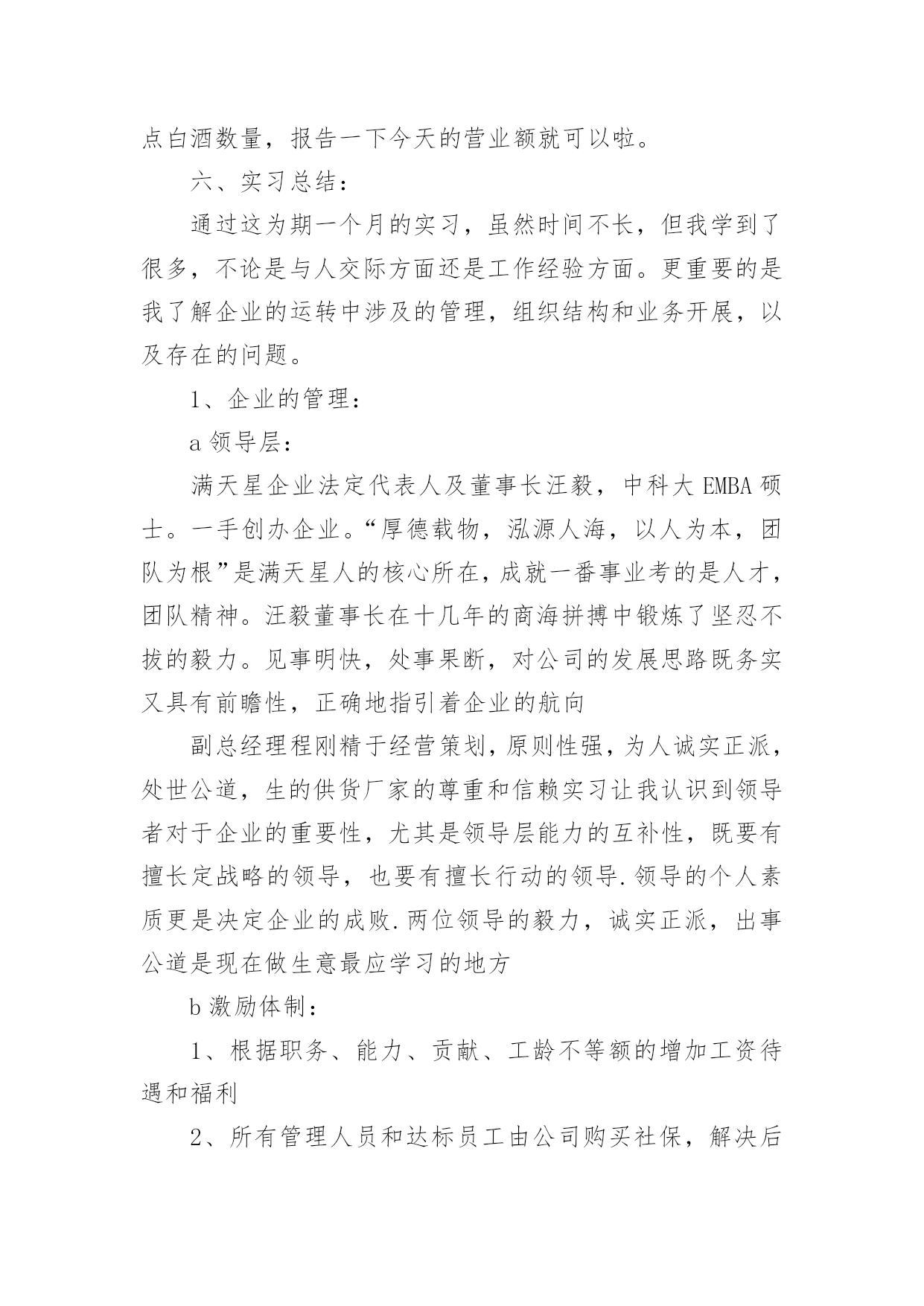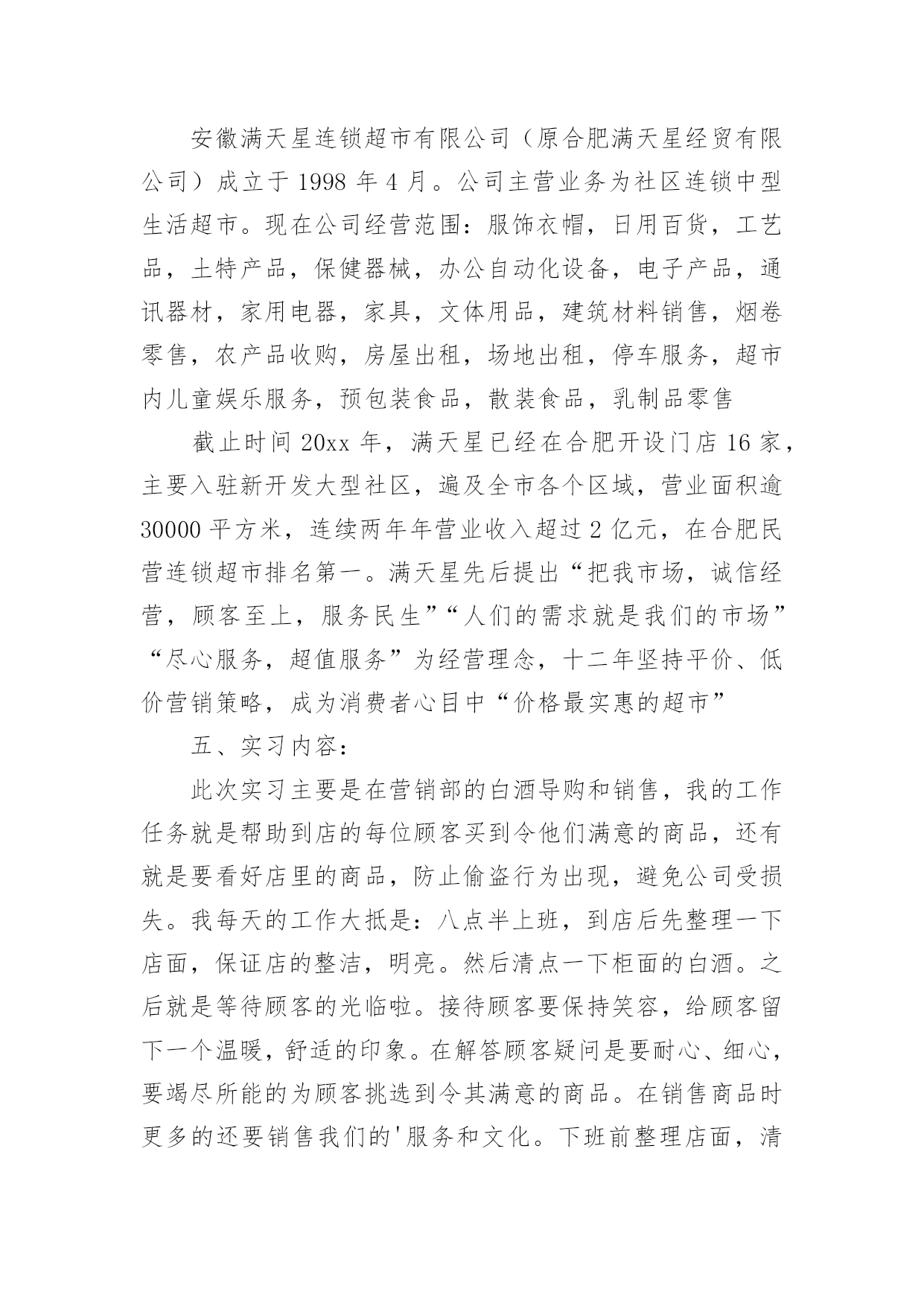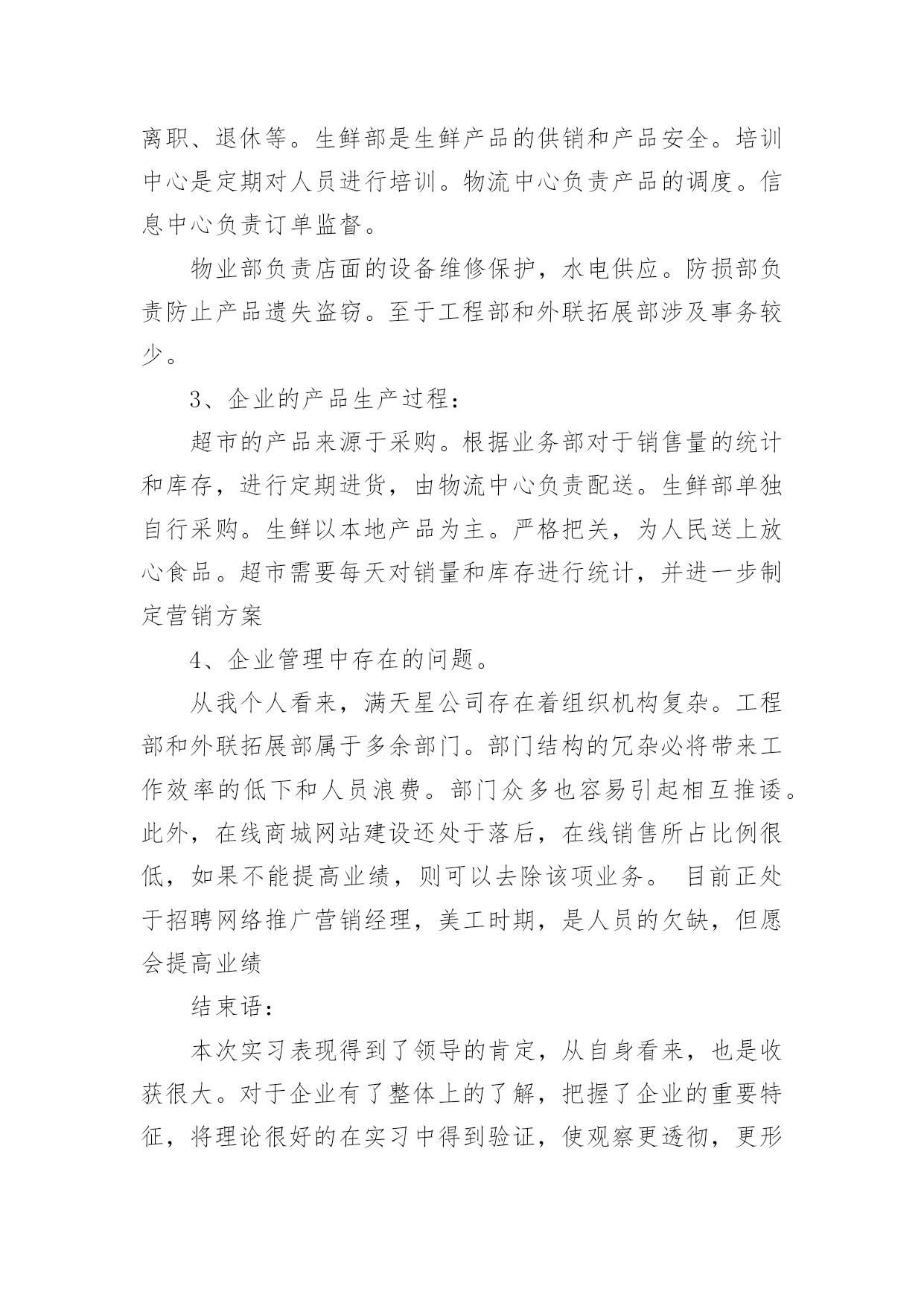 工商管理实习报告工商管理实习报告15篇(经典)在我们平凡的日常里,我们使用报告的情况越来越多,我们在写报告的时候要注意涵盖报告的基本要素。在写之前,可以先参考范文,下面是小编帮大家整理的工商管理实习报告,希望能够帮助到大家。工商管理实习报告1一、实习目的:即将踏入大三专业课程学习,对于工商管理只有初步的概念,对于企业的认识不够全面,所学知识也未曾运用。特此暑假期间,走入企业实习,了解企业文化、结构、制度、运转以及存在问题。改革开放以来中国的零售业发展迅速,是近年来我国发展最快,最具活力的行业之一。随着我国加入世界贸易组织国外零售行业不断涌入中国市场,我国的零售业面临着越来越激烈的国际竞争。此次实习从零售企业入手,了解中国零售业所面临的发展环境和在实际中运用所学理论、切身感受,在实践中认识个人从事零售业所要具备的品质。二、实习时间:20xx年7月10日至20xx年8月10日。三、实习地点:xxx四、公司简介:安徽满天星连锁超市有限公司(原合肥满天星经贸有限公司)成立于1998年4月。公司主营业务为社区连锁中型生活超市。现在公司经营范围:服饰衣帽,日用百货,工艺品,土特产品,保健器械,办公自动化设备,电子产品,通讯器材,家用电器,家具,文体用品,建筑材料销售,烟卷零售,农产品收购,房屋出租,场地出租,停车服务,超市内儿童娱乐服务,预包装食品,散装食品,乳制品零售截止时间20xx年,满天星已经在合肥开设门店16家,主要入驻新开发大型社区,遍及全市各个区域,营业面积逾30000平方米,连续两年年营业收入超过2亿元,在合肥民营连锁超市排名第一。满天星先后提出“把我市场,诚信经营,顾客至上,服务民生”“人们的需求就是我们的市场”“尽心服务,超值服务”为经营理念,十二年坚持平价、低价营销策略,成为消费者心目中“价格最实惠的超市”五、实习内容:此次实习主要是在营销部的白酒导购和销售,我的工作任务就是帮助到店的每位顾客买到令他们满意的商品,还有就是要看好店里的商品,防止偷盗行为出现,避免公司受损失。我每天的工作大抵是:八点半上班,到店后先整理一下店面,保证店的整洁,明亮。然后清点一下柜面的白酒。之后就是等待顾客的光临啦。接待顾客要保持笑容,给顾客留下一个温暖,舒适的印象。在解答顾客疑问是要耐心、细心,要竭尽所能的为顾客挑选到令其满意的商品。在销售商品时更多的还要销售我们的'服务和文化。下班前整理店面,清点白酒数量,报告一下今天的营业额就可以啦。六、实习总结:通过这为期一个月的实习,虽然时间不长,但我学到了很多,不论是与人交际方面还是工作经验方面。更重要的是我了解企业的运转中涉及的管理,组织结构和业务开展,以及存在的问题。1、企业的管理:a领导层:满天星企业法定代表人及董事长汪毅,中科大EMBA硕士。一手创办企业。“厚德载物,泓源人海,以人为本,团队为根”是满天星人的核心所在,成就一番事业考的是人才,团队精神。汪毅董事长在十几年的商海拼搏中锻炼了坚忍不拔的毅力。见事明快,处事果断,对公司的发展思路既务实又具有前瞻性,正确地指引着企业的航向副总经理程刚精于经营策划,原则性强,为人诚实正派,处世公道,生的供货厂家的尊重和信赖实习让我认识到领导者对于企业的重要性,尤其是领导层能力的互补性,既要有擅长定战略的领导,也要有擅长行动的领导.领导的个人素质更是决定企业的成败.两位领导的毅力,诚实正派,出事公道是现在做生意最应学习的地方b激励体制:1、根据职务、能力、贡献、工龄不等额的增加工资待遇和福利2、所有管理人员和达标员工由公司购买社保,解决后顾之忧这里说到激励体制,则涉及到人性假说以及马斯洛需求层次理论.人性假说包括,经济人,社会人,自我实现人,复杂人。从满天星来看,以上几类人都包括了.所以在进行激励时,对不同的人采取不同的方式,包括金钱,荣誉,福利,地位。而从马斯洛需求层次理论来说,企业满足了员工的生理需求,安全需求,社交需求,尊重需求。而不同的需求对于不同的员工来说,重要性又不一样,所以要有针对性的给予满足才能提高员工的积极性。c培训机制:以公司培训中心为平台,对全体员工进行食品卫生、质量安全、岗位职责、业务技能的培训,坚持经常化,制度化,全面提高员工素质实行“推荐人才、考核人才;适时使用人才、储备人才;尊重知识、尊重人才”的良好体制,促进全体员工努力进取,积极向上。涌现出一大批优秀店长、优秀部长、优秀员工企业一定要让员工在工作期间能力得到成长,既能提高工作效率,为企业创造效益,同时也让员工自身收获。能力的提升一种方式是在日常工作中积累,另一种方式就是集体的培训,进行系统学习。要树立终生学习的意识。d营销方面坚持平价、低价的出校策略。为降低成本,让利顾客,超市从创办时的本地采购逐渐的发展为全国采购。2003年董事长亲自带领采购团队千万南京、杭州、