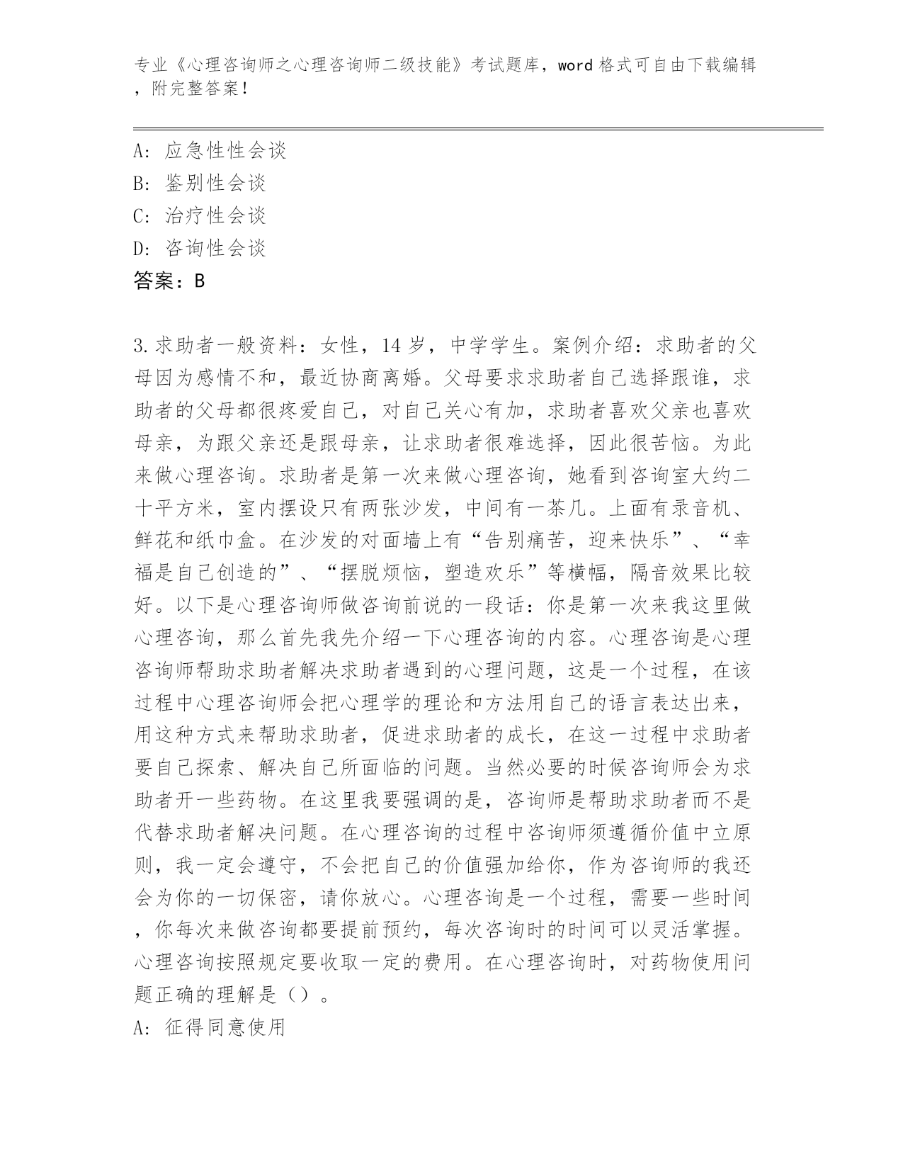 安徽省2023-24年《心理咨询师之心理咨询师二级技能》考试题库【巩固】
