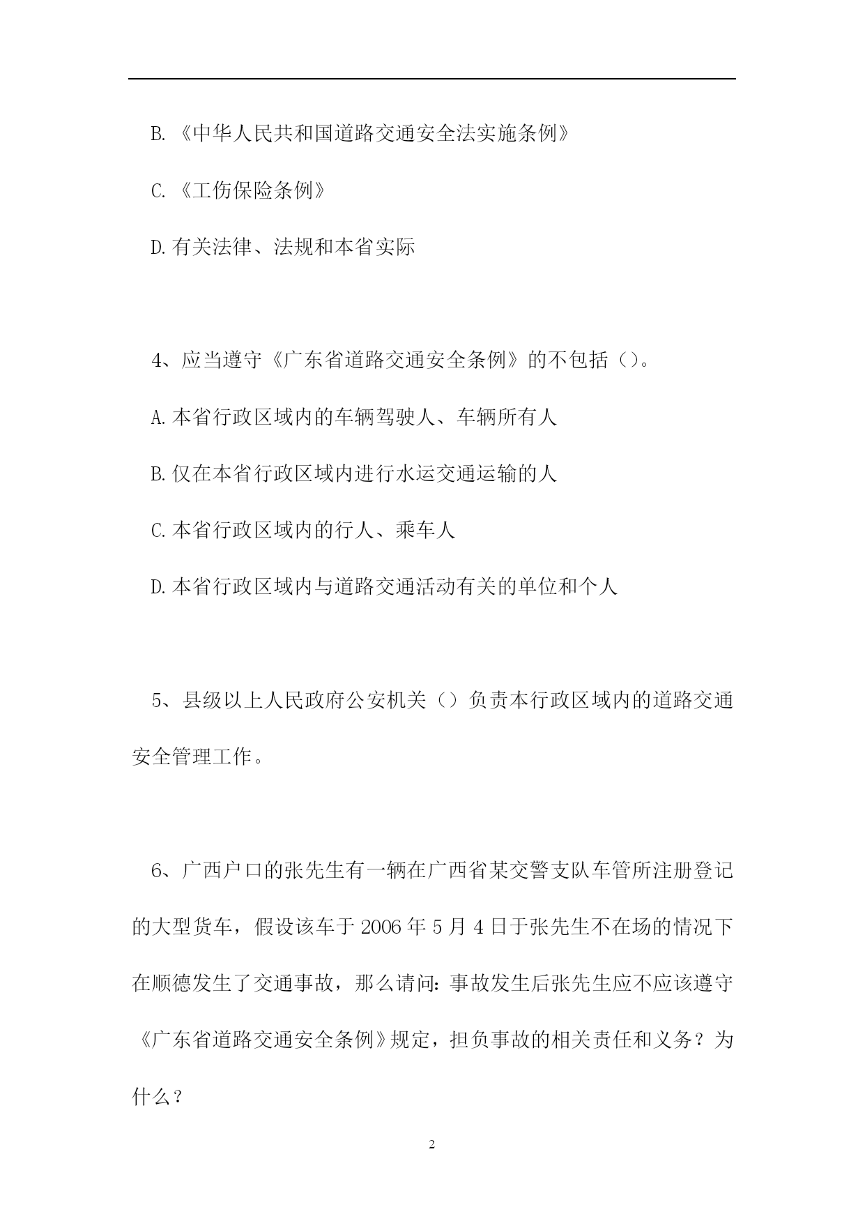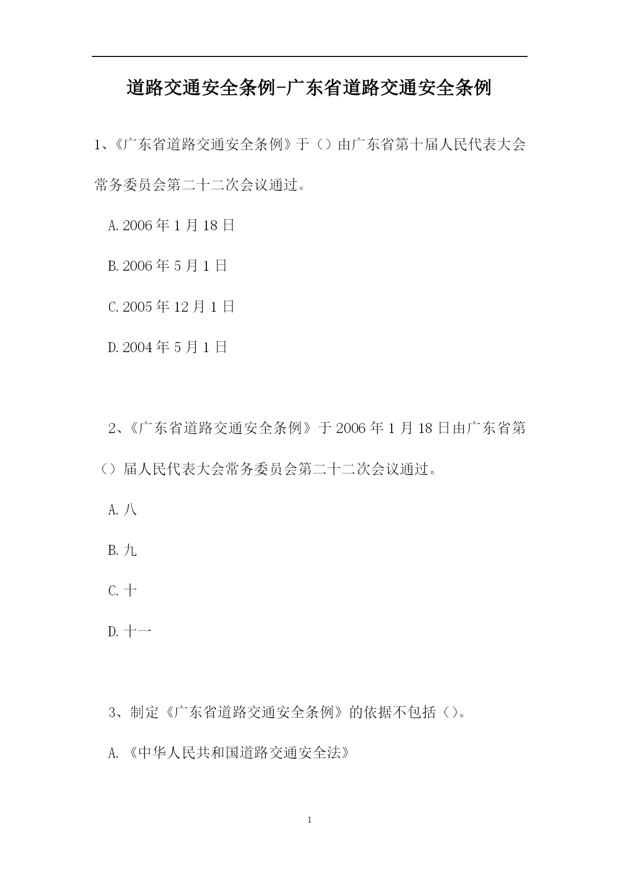2021道路交通安全条例-广东省道路交通安全条例(精选试题).doc