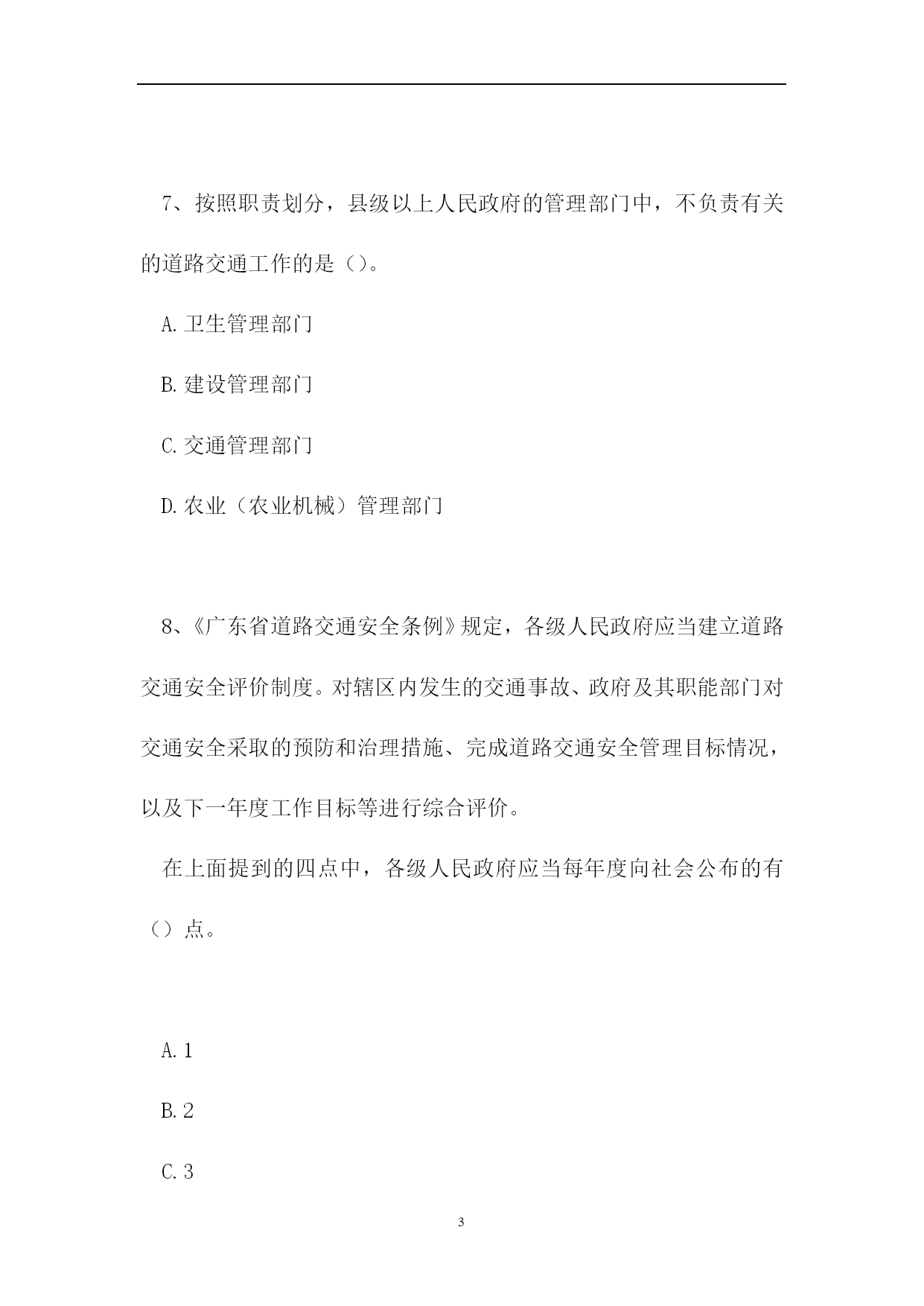 2021道路交通安全条例-广东省道路交通安全条例(精选试题)