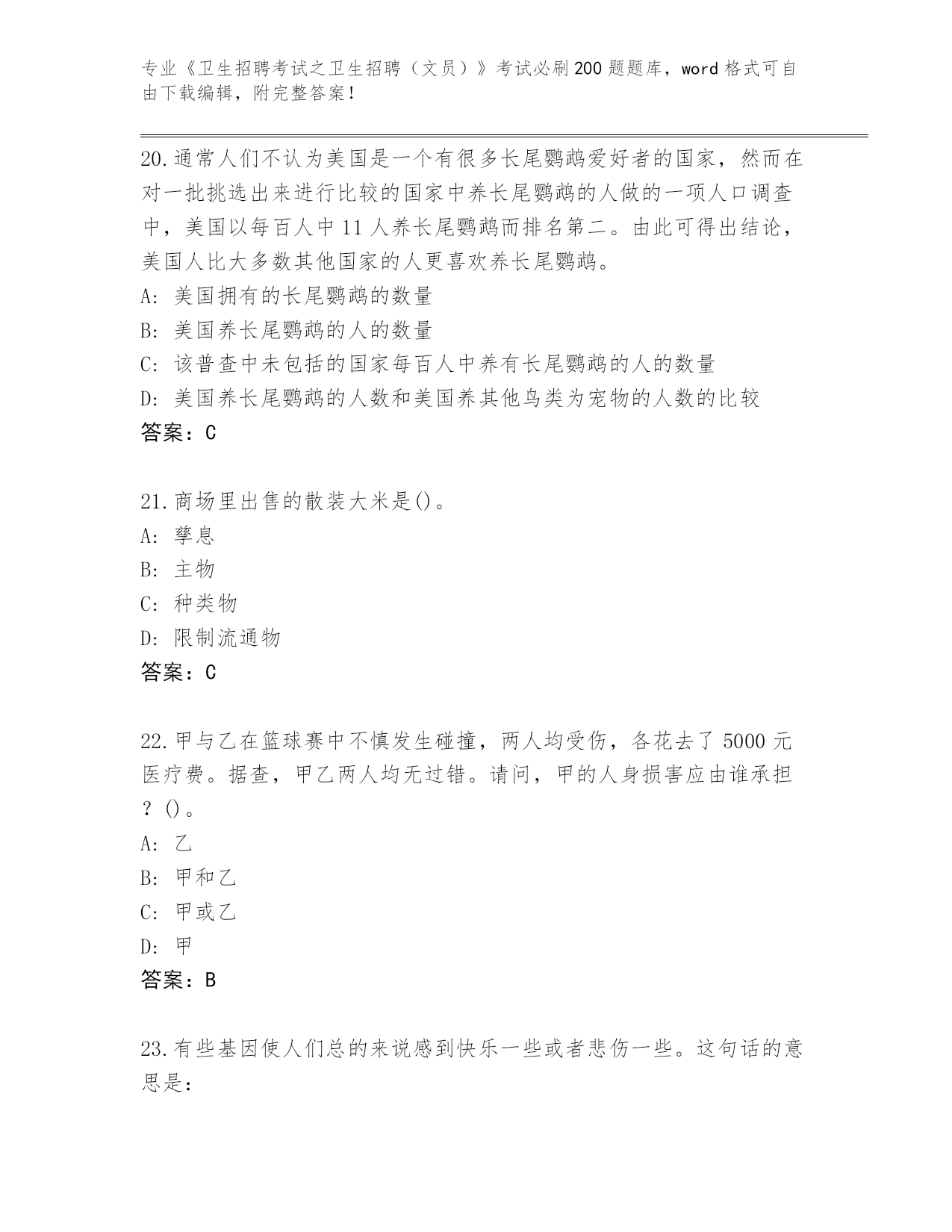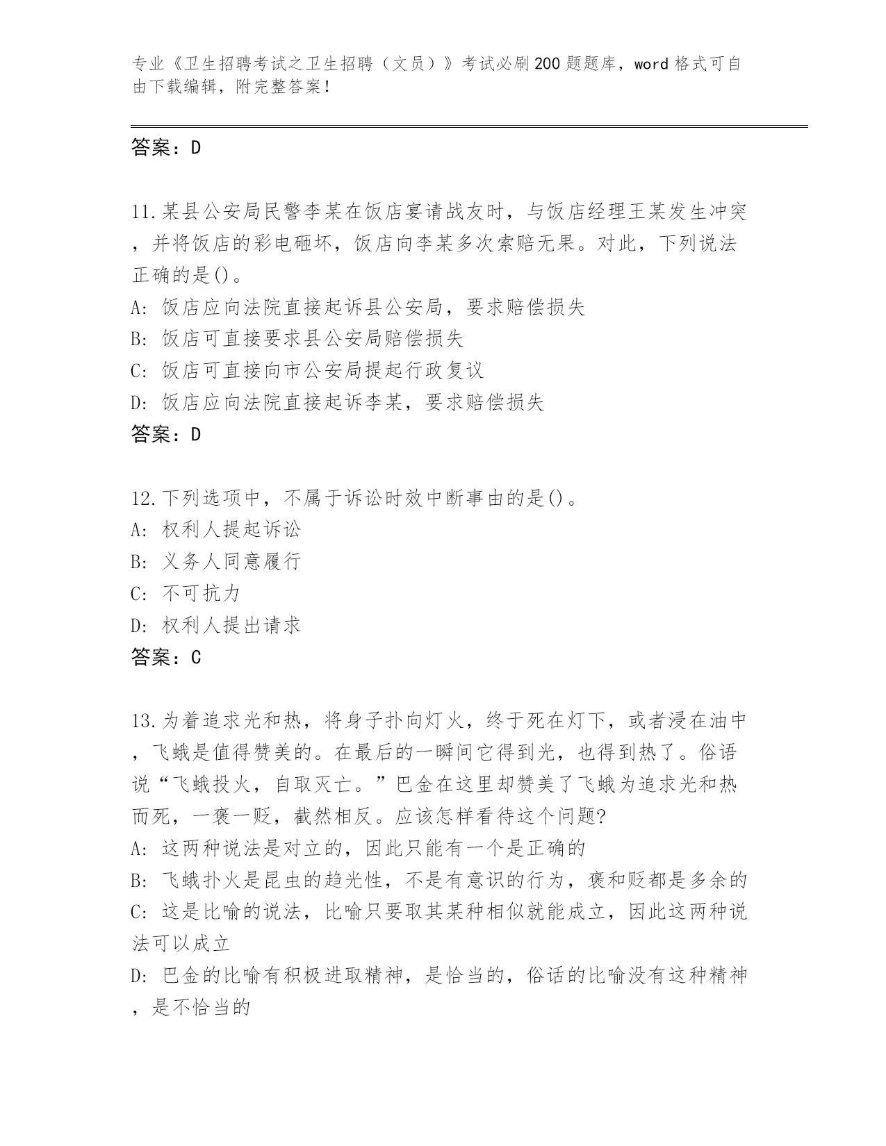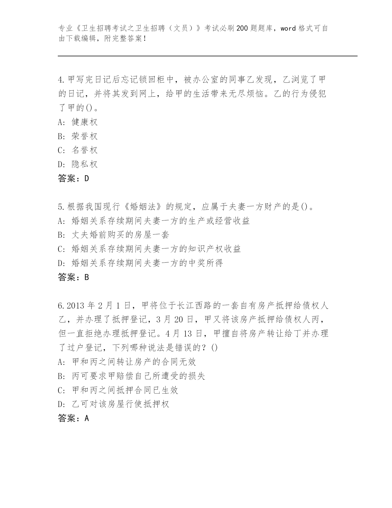 河南省唐河县整理《卫生招聘考试之卫生招聘(文员)》考试必刷200题及答案