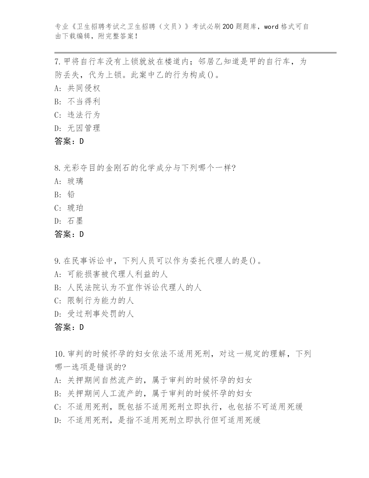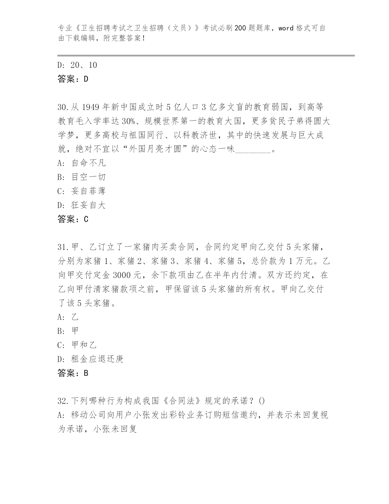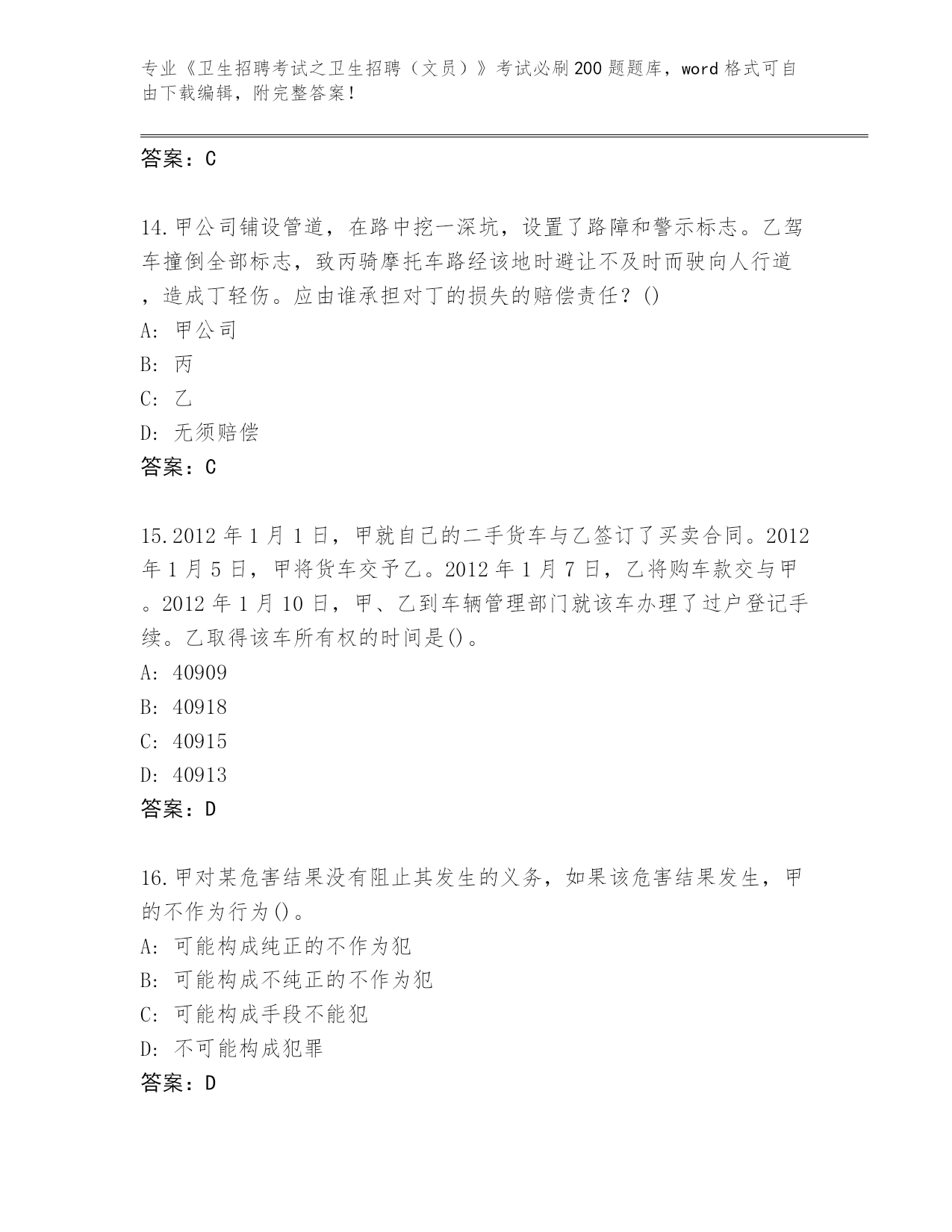 河南省唐河县整理《卫生招聘考试之卫生招聘(文员)》考试必刷200题及答案
