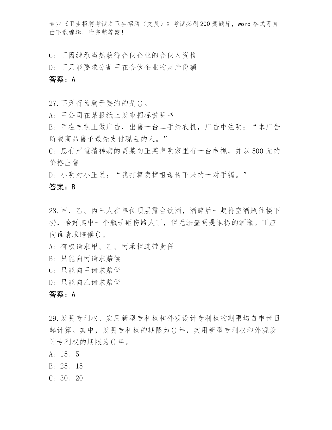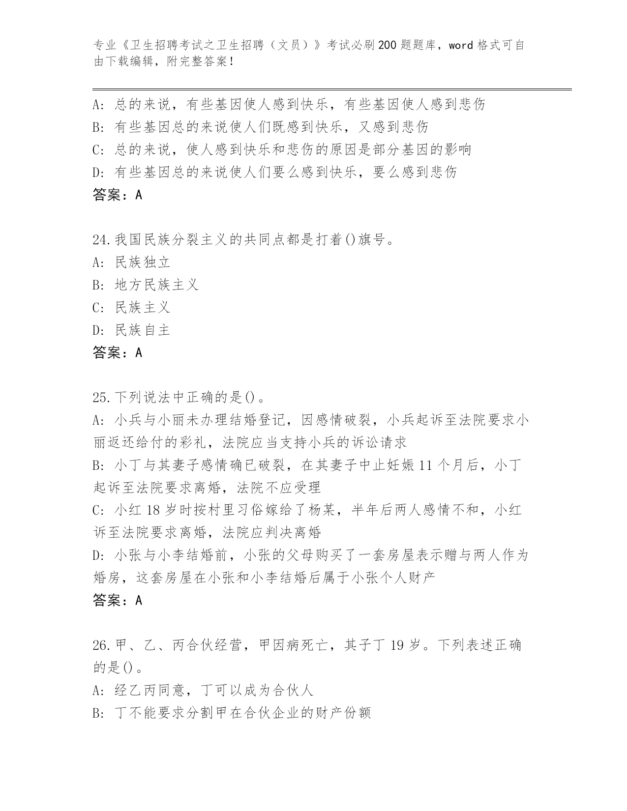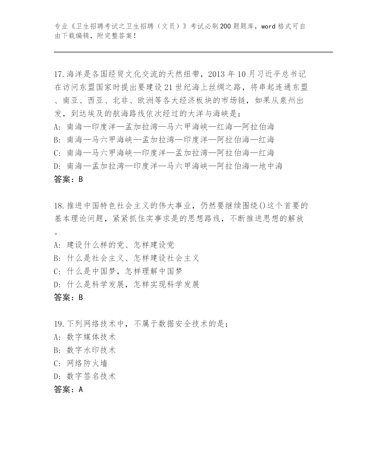 河南省《卫生招聘考试之卫生招聘(文员)》考试必刷200题大全【预热题】