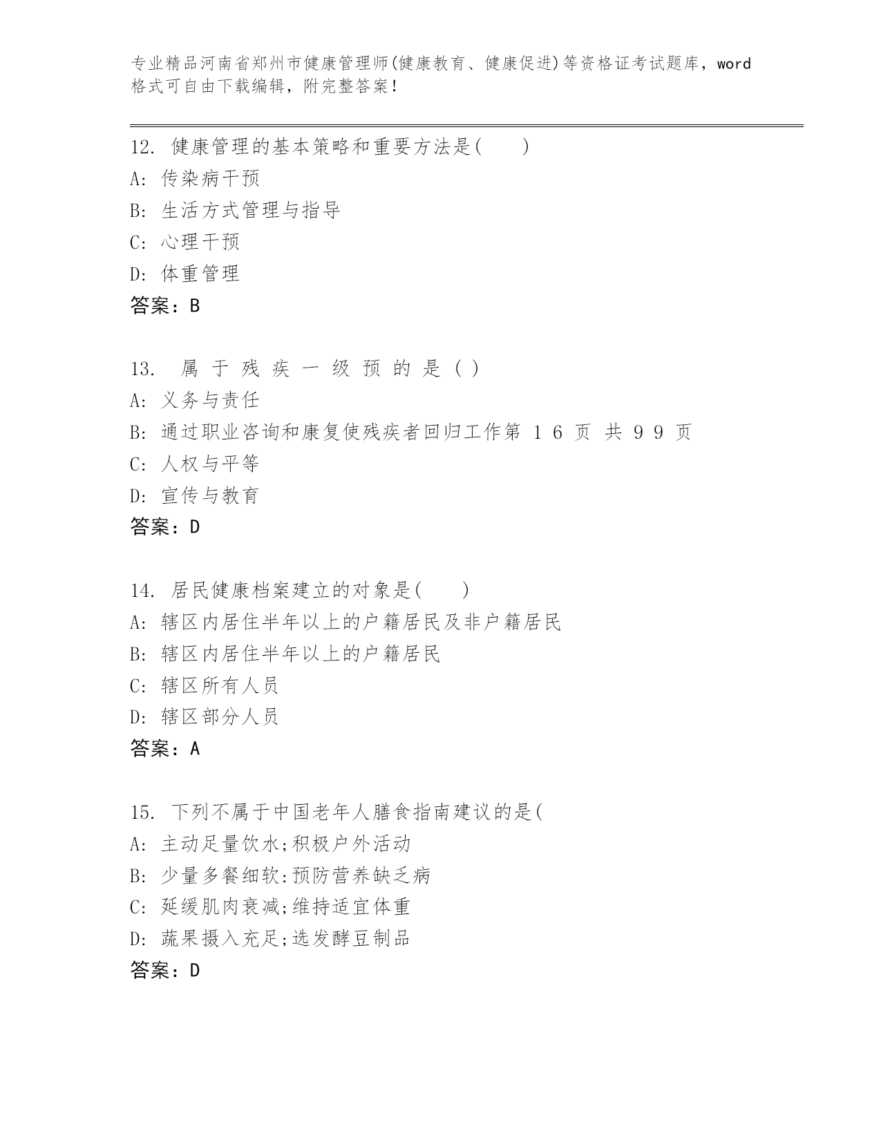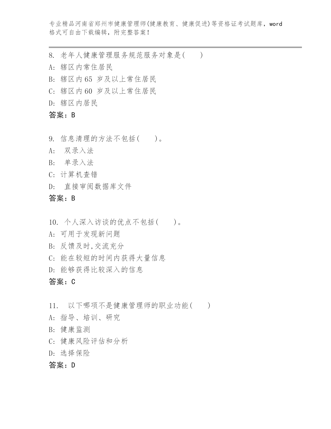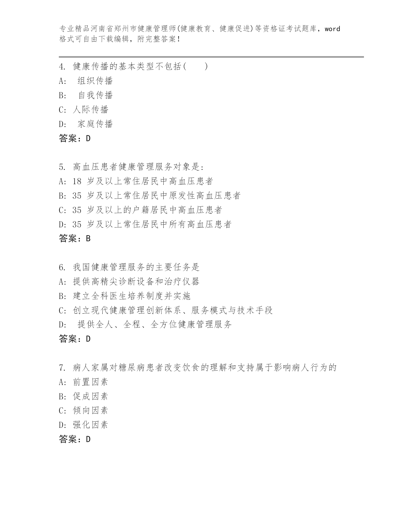 历年河南省郑州市健康管理师(健康教育、健康促进)等资格证考试精编