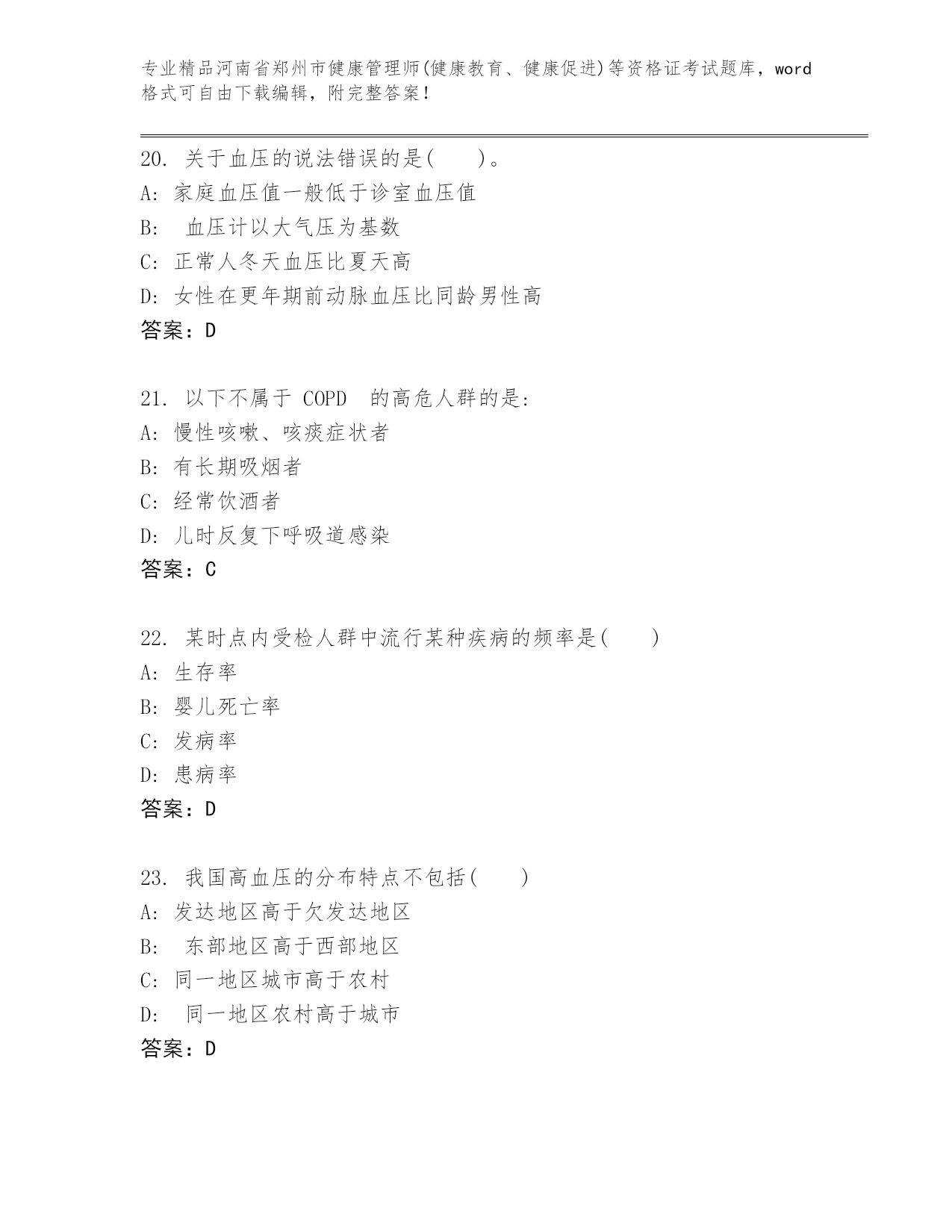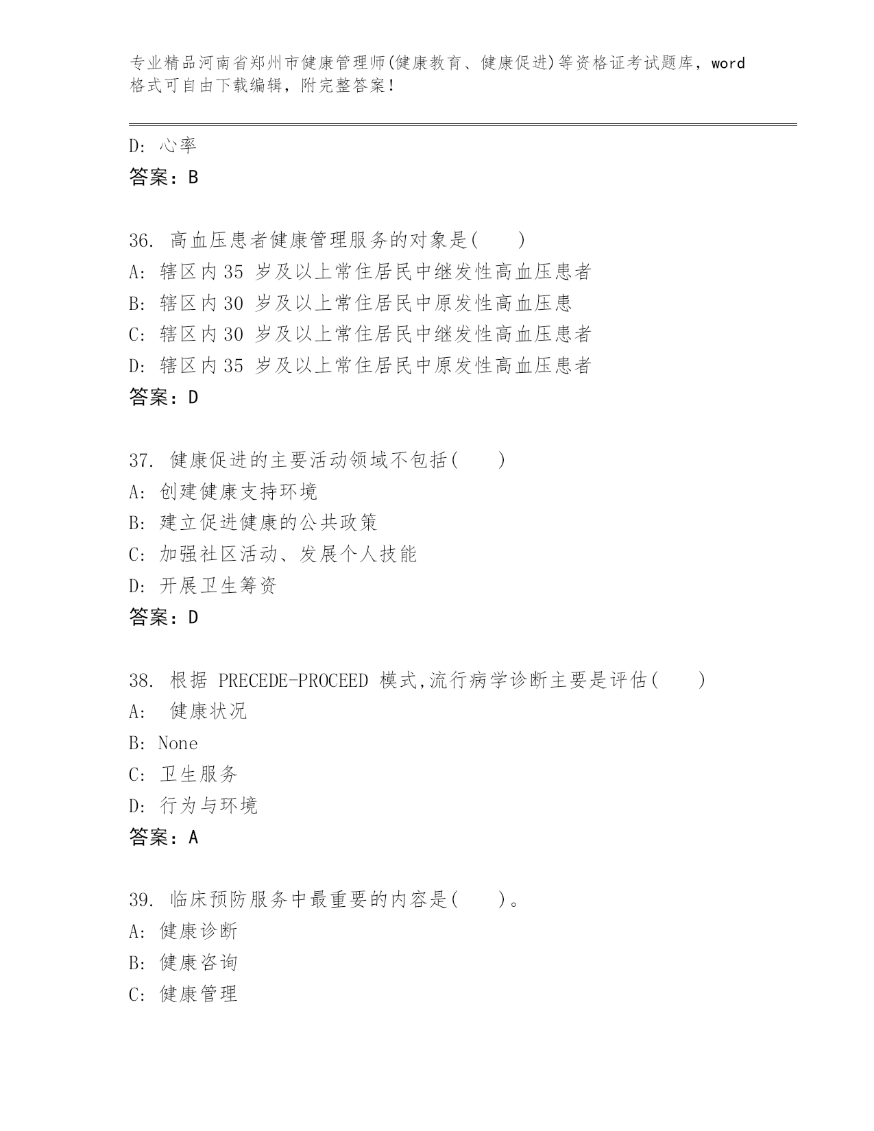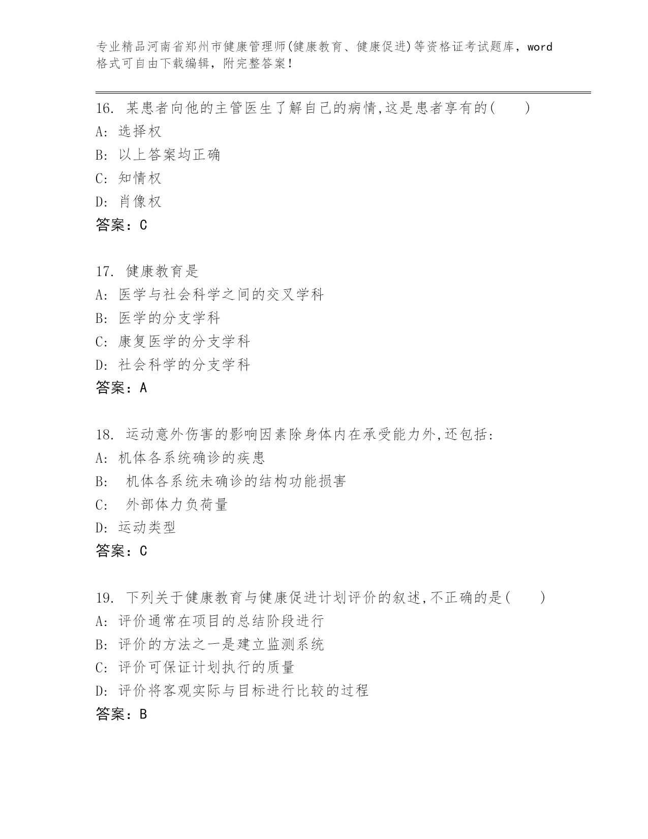 历年河南省郑州市健康管理师(健康教育、健康促进)等资格证考试精编