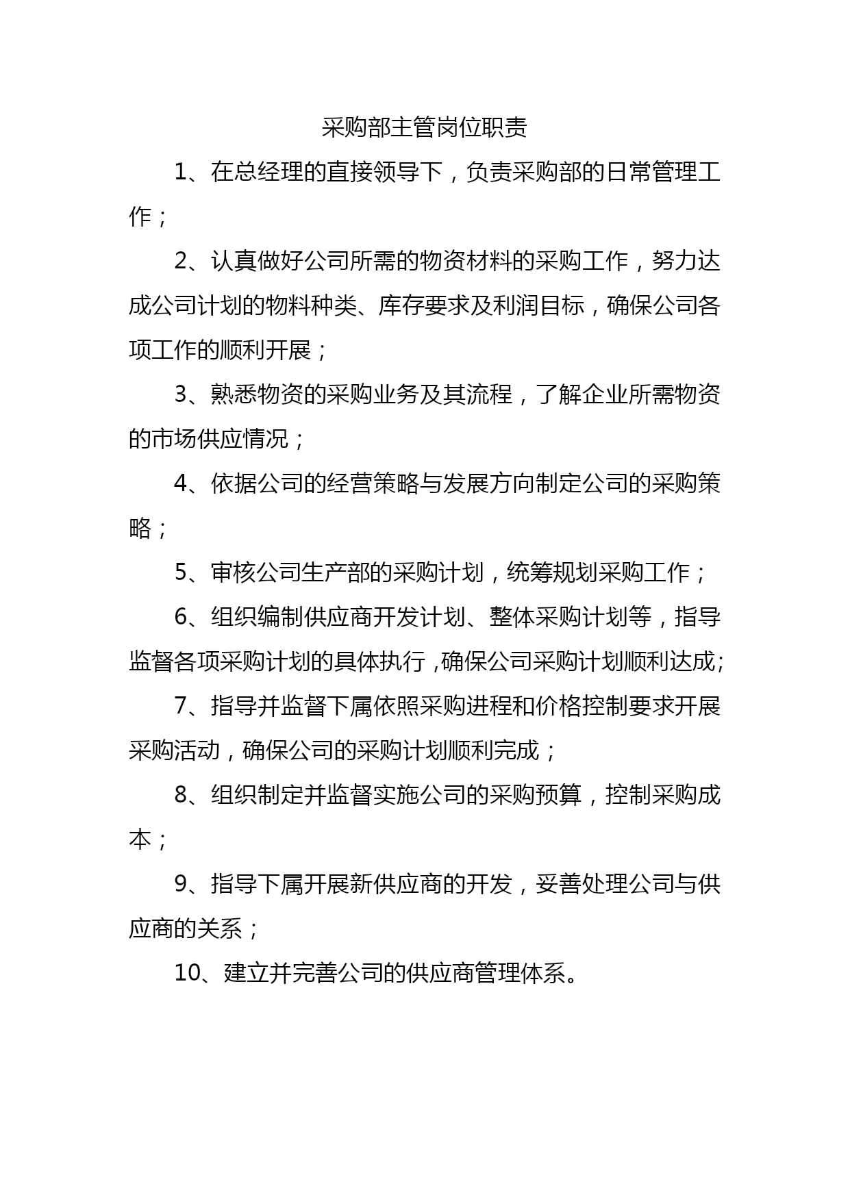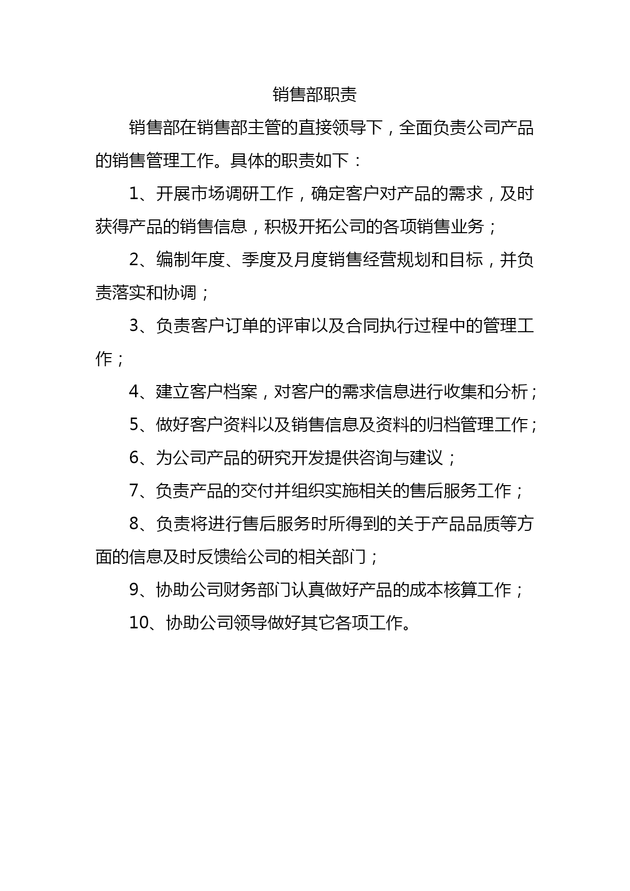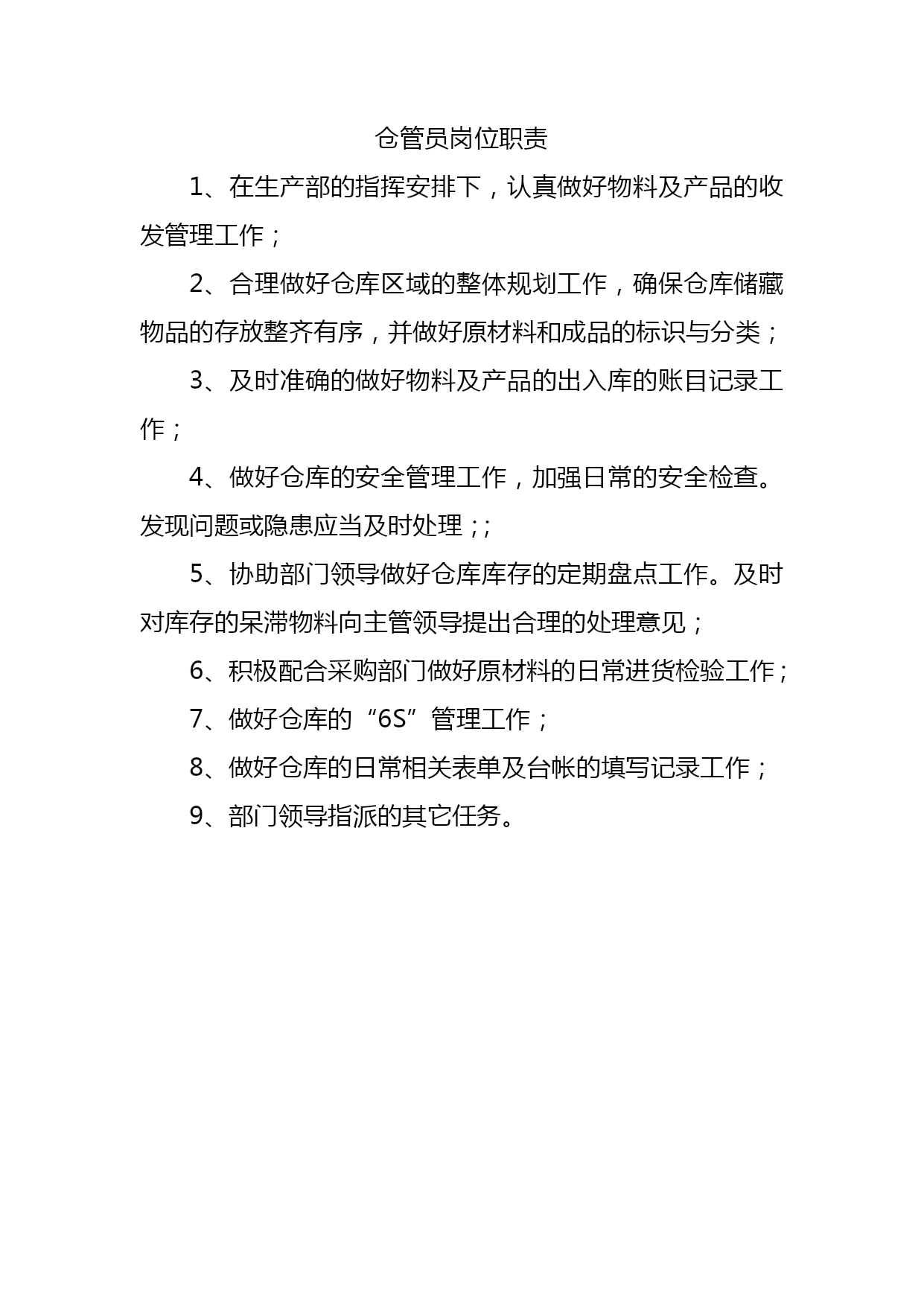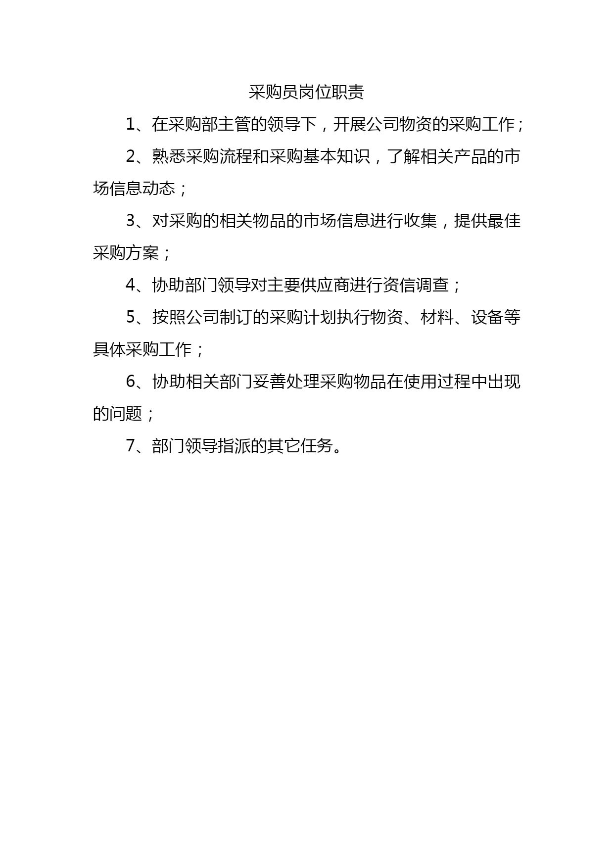 生产制造公司工厂各部门职责及岗位职责汇编(完整版)资料(可以直接使用,可编辑优秀版资料,欢迎下载)生产部职责生产部在生产部经理的直接领导下,全面负责公司的生产管理工作;1、根据公司要求,合理组织人员及物料的调度安排,按时完成公司下达的各项生产任务;2、充分调动生产人员的积极性和创造性,做好公司生产计划的执行工作;3、对生产过程中的重大生产技术问题、质量问题进行分析与解决;4、负责生产车间的各类报表的汇总分析工作;5、负责生产车间设备的购置申请、设备验收以及日常的维护与保养等;6、积极做好生产岗位员工的工作技能培训工作;7、做好车间生产现场的“6S”管理工作;8、完善本部门的各项规章制度;8、做好生产现场的安全生产工作,努力提升员工的生产安全意识,定期检查各项安全生产设施,确保安全生产工作落到实处;9、完成公司领导布置的其它各项工作。生产部经理岗位职责1、在总经理的直接领导下,负责生产部的日常管理工作;2、组织制订并负责执行公司的日常生产计划、生产组织、生产管理、过程控制与监督,确保实现公司的生产目标计划;3、认真贯彻公司制定的各项规章,负责监督车间工作人员严格遵守公司的各项规章制度;4、妥善安排好生产进度,做好人员及原料的调度工作,加强对重点操作环节的监督控制工作;5、熟悉掌握车间生产设备的性能与日常保养,了解公司产品的生产工艺过程、品质判定标准等;6、在产品生产过程中,积极做好监督检查工作。控制好产品的生产进度及生产安全等方面的工作;7、负责做好本车间生产方面的数据资料的统计整理工作。力求做到数据资料的真实、清楚、准确,与实际的生产情况同步;8、在日常的生产过程中,应当认真做好产品生产的“三检”(首检、自检、巡检)工作的开展;9、做好半产品及成品的检验验收工作;10、加强与本车间各个生产班组长之间的联系,客观公正的处理车间内的员工关系,维持好车间的正常生产秩序。11、完成上级领导交办的其它工作。生产班组长岗位职责1、在生产部经理的指挥领导下,认真做好本班组的日常管理工作;2、负责本班组的人员、物资、设备等的综合管理,确保生产计划顺利实现;3、熟悉产品的生产工艺流程和基本技术特点,具备一定的生产管理、质量管理、生产安全等方面的知识;4、依照车间下达的生产计划,合理调度安排本班组的各项生产活动;5、监督指导班组员工严格执行质量管理体系的相关规程和要求;6、发现生产过程中所存在的问题并及时实施恰当的处理措施。如果遇到自己无法妥善解决的问题时,应当及时向部门主管及时请示汇报;7、严格执行公司的生产安全管理制度,不定期的对生产现场进行安全检查,发现安全隐患应及时予以排除;8、指导本班组员工正确规范的使用生产设备,负责对相关设备进行日常的维护与保养工作;9、负责班组员工的日常考核及培训工作;10、监督指导班组员工做好日常的工作开展。检验员职责1、严格遵循公司对于物料及产品品质的相关要求及检验标准,把好品质关;2、依照产品图样、工艺文件或合同要求等开展检验,确保做到:不合格原材料不投产、不合格在制品不继续生产、不合格产品不出车间;3、认真做好外购物品、外协件的入库检验工作。对于检验结果符合要求的,安排办理相关的入库手续;检验结果如不符合要求的,将不予办理入库手续并及时通知相关部门做好后续的处理工作;4、积极配合车间做好相关的产品检验工作,及时做好相应的记录工作;5、检验过程中如发现存在质量问题的,应当及时通知相关人员及相关部门。对于存在的问题比较严重的,必须及时向公司负责人进行汇报;6、对于检验过程中发现的不合格品,应当及时做好不合格品的标识工作。同时通知生产车间做好不合格品的记录与分类隔离工作,避免出现混淆;7、依照岗位规范要求认真、准确、务实的填写相关表单,力求做到资料及数据的真实、准确、可靠;8、认真做好各类产品质量管理资料的归档管理工作。采购部职责采购部在采购部主管的直接领导下,依照公司生产需要及物资采购计划,全面负责生产部的物料采购和供应工作;1、采购物资进入公司仓库时必须提供相应的产品合格证明材料,并存档备查,否则一律不得入库;2、对初次进行合作的供应商进行调查了解,根据实际掌握的资料与信息做出相应的评价判定。对于符合公司要求的,方可与之开展业务往来与合作。3、负责对所有与公司有业务往来的供应商或供货企业进行定期的资质评价并给出明确的评价等级。针对不同的评价等级给出相应的处理意见;4、采购工作的开展应当做到精打细算,尽力降低公司的采购成本,避免出现浪费公司资金的情况;5、完成公司领导布置的其它各项工作。采购部主管岗位职责1、在总经理的直接领导下,负责采购部的日常管理工作;2、认真做好公司所需的物资材料