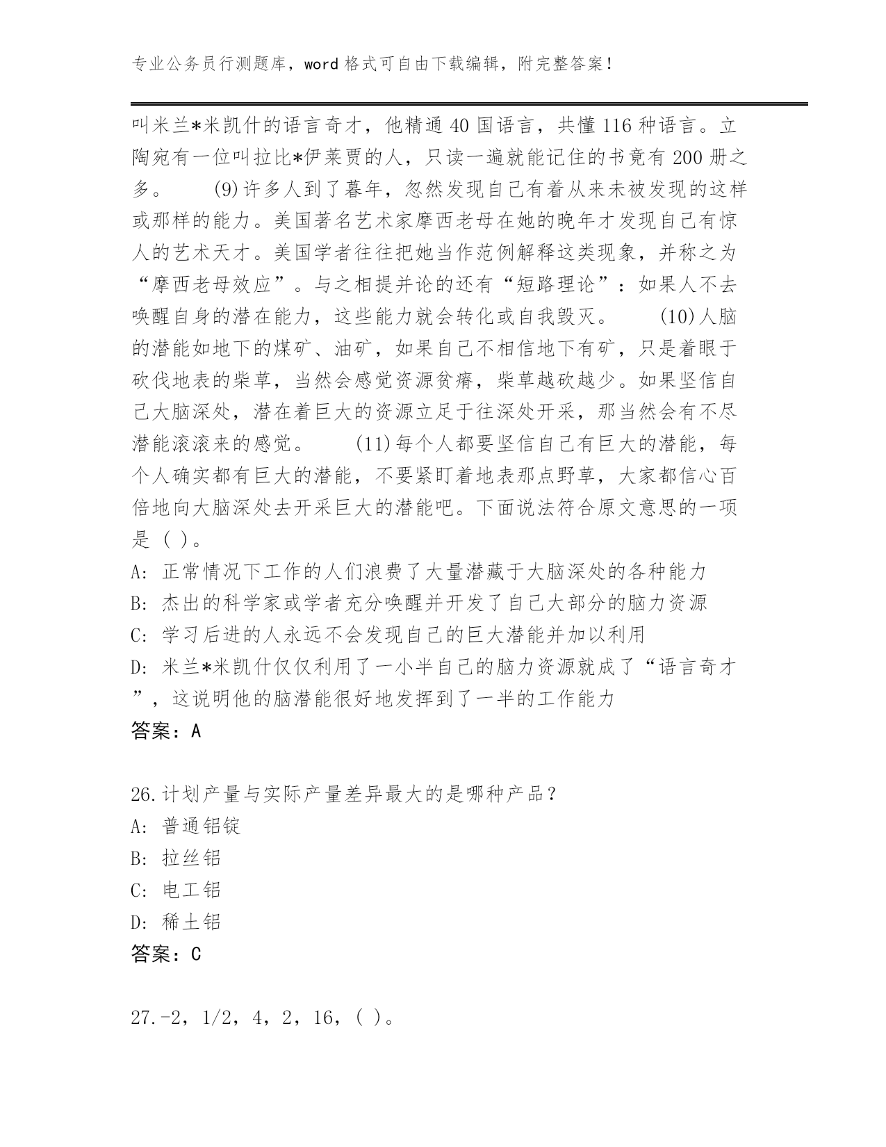 陕西省神木县历年公务员行测题库含答案(考试直接用).docx