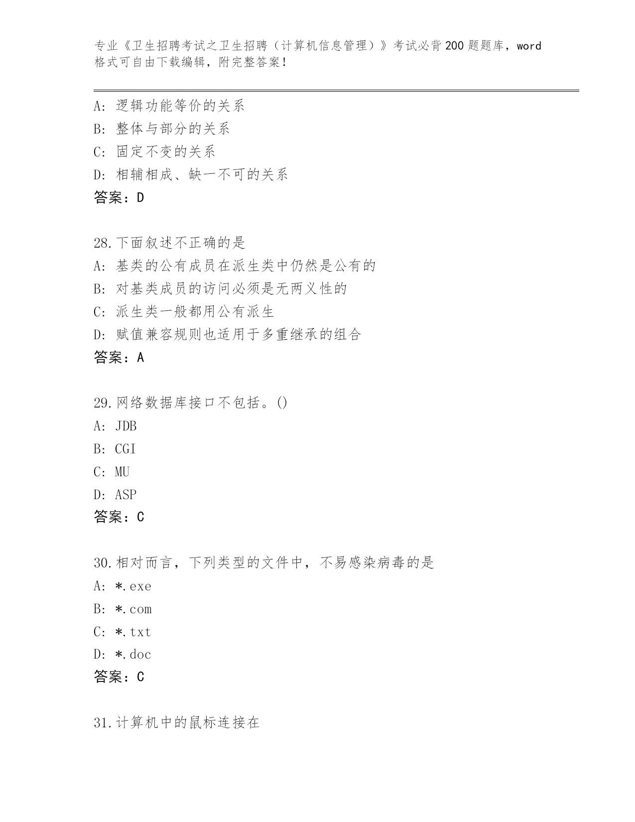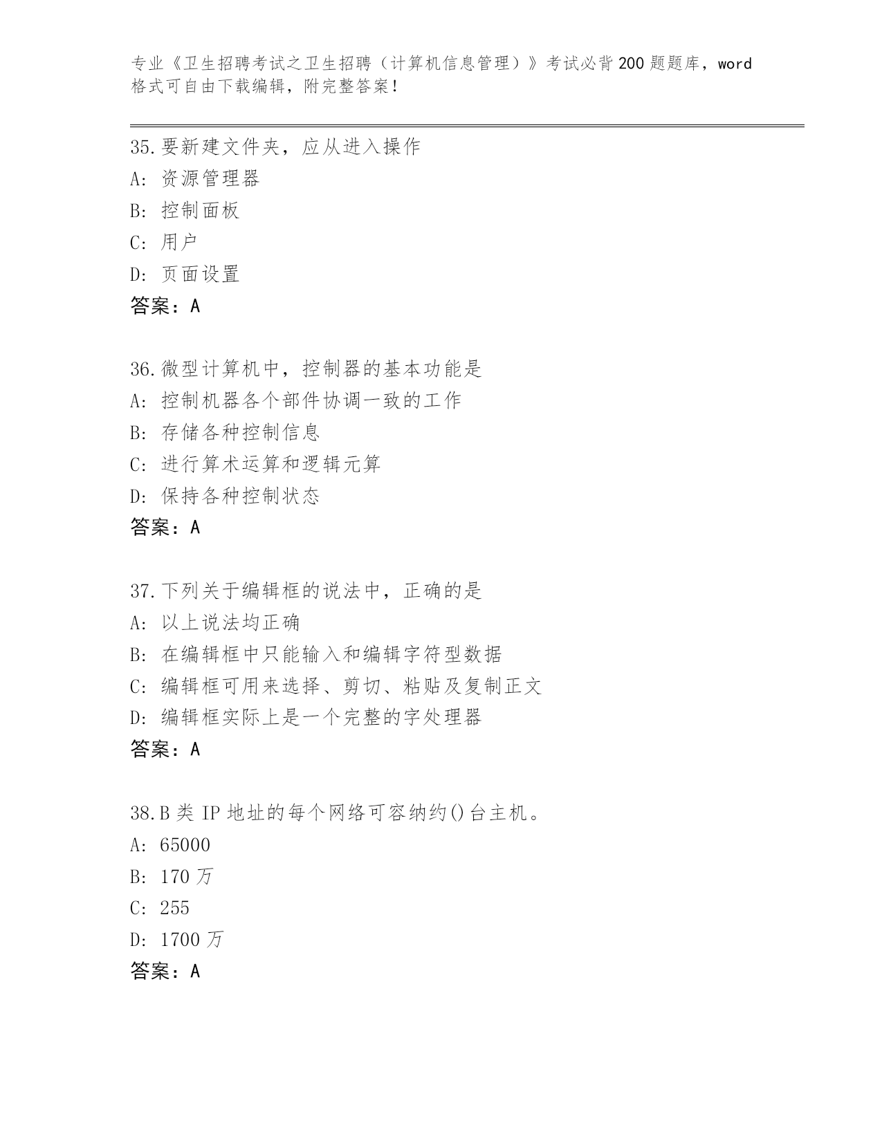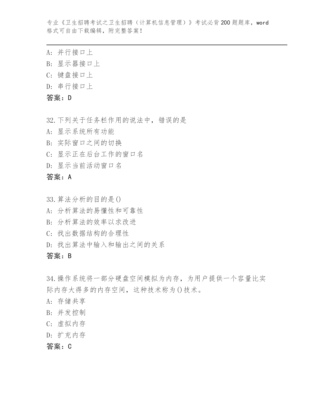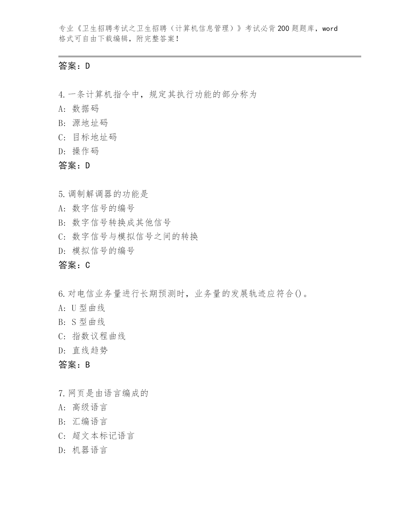 福建省《卫生招聘考试之卫生招聘(计算机信息管理)》考试必背200题大全(基础题)