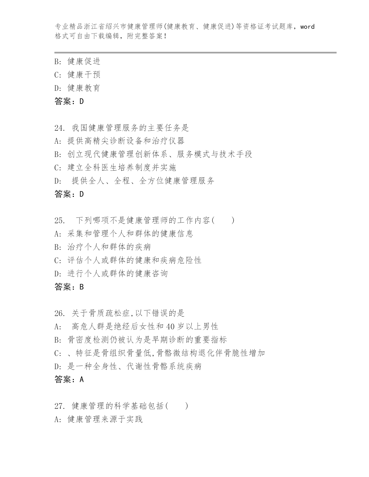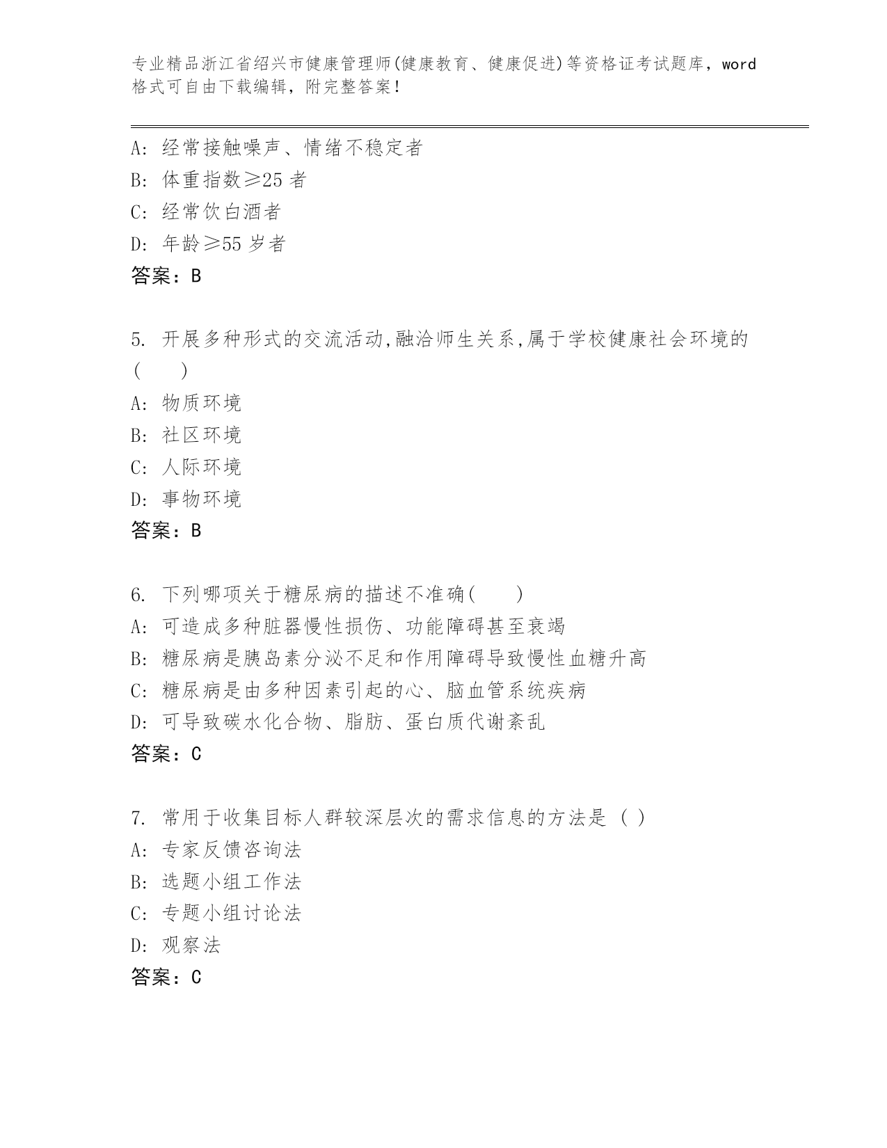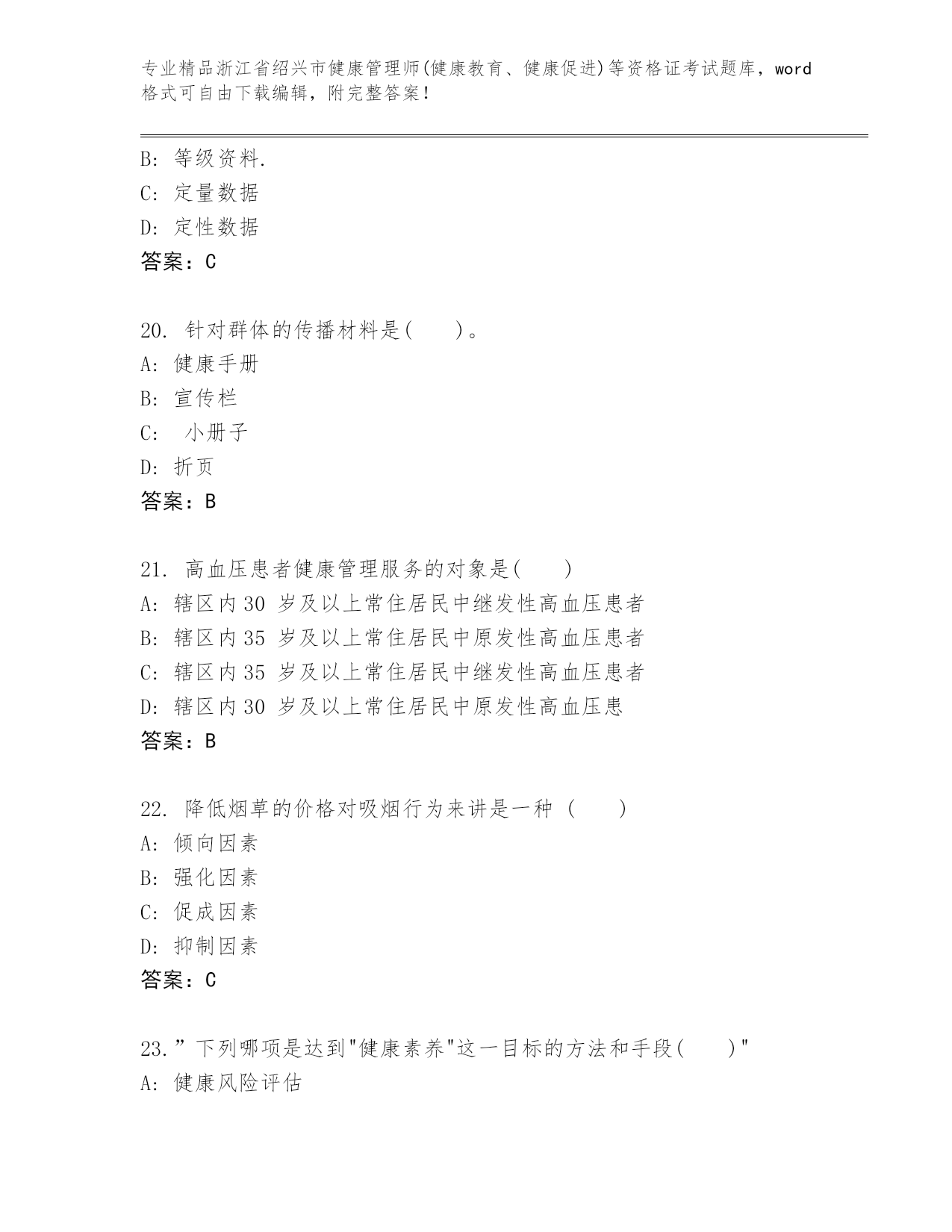最新浙江省绍兴市健康管理师(健康教育、健康促进)等资格证考试真题及下载答案