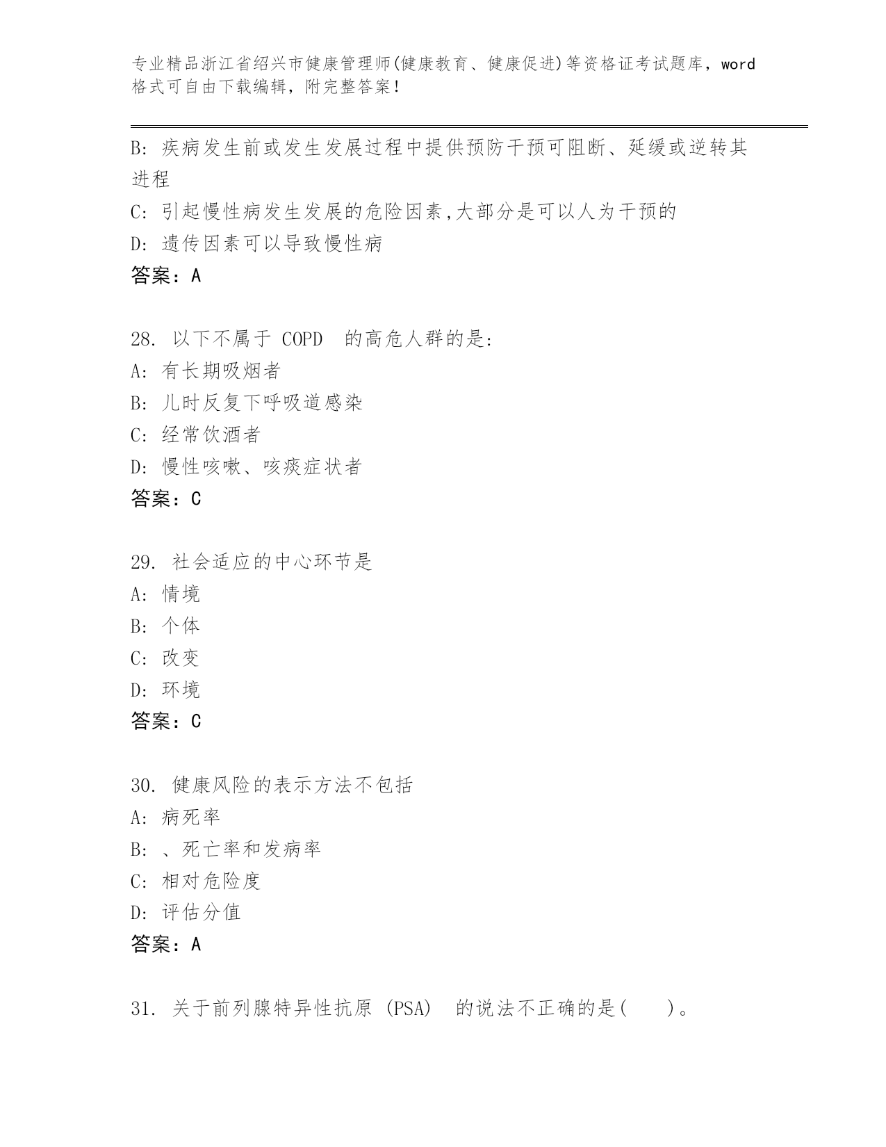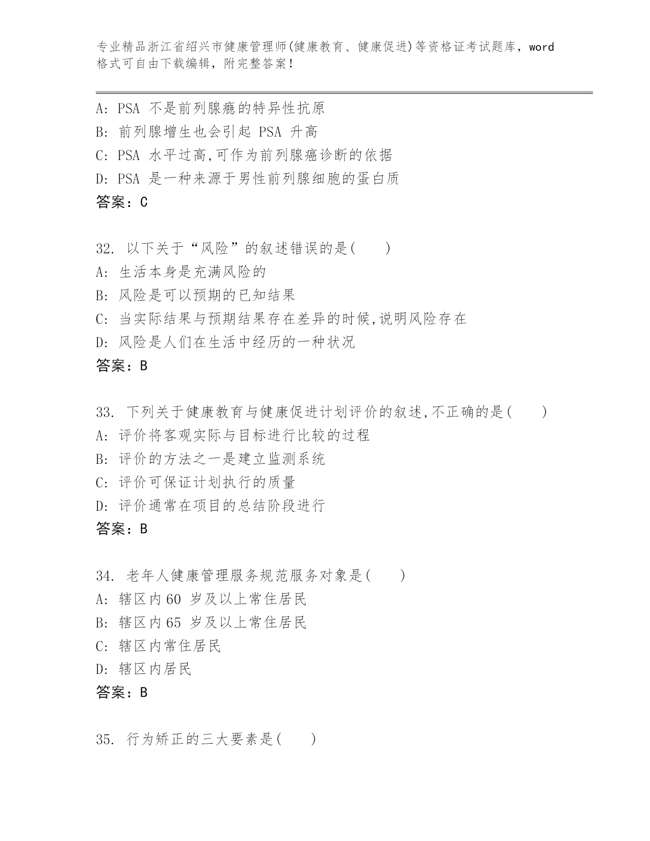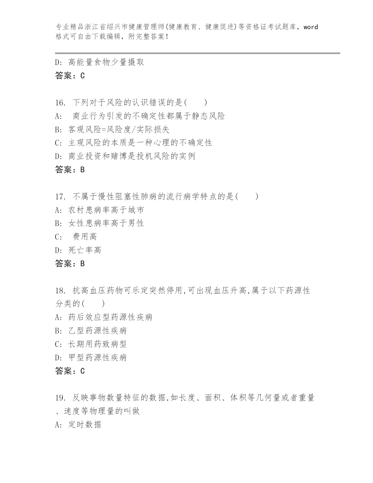 最新浙江省绍兴市健康管理师(健康教育、健康促进)等资格证考试真题及下载答案