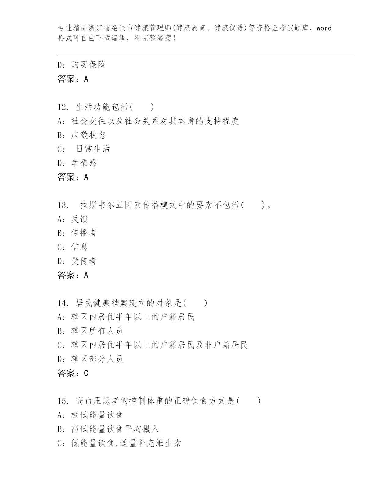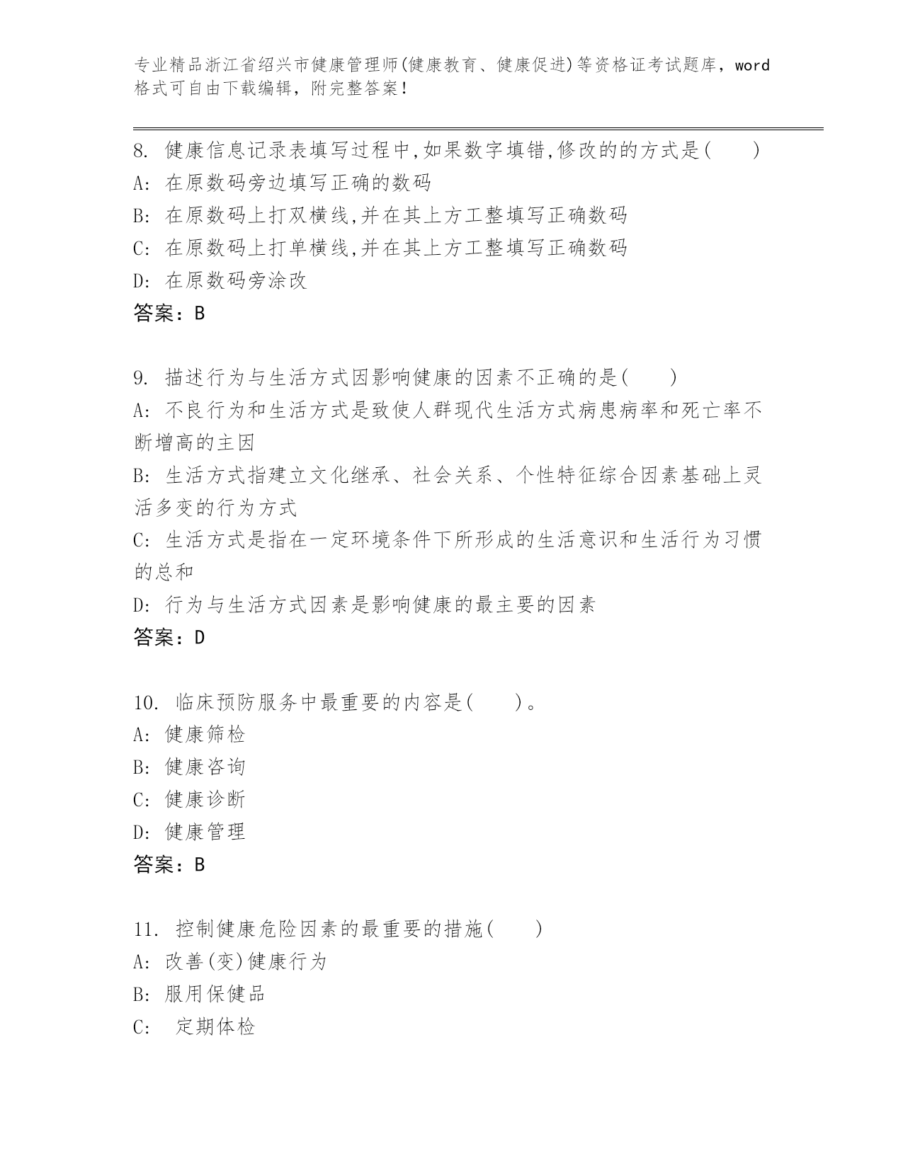 最新浙江省绍兴市健康管理师(健康教育、健康促进)等资格证考试真题及下载答案.docx