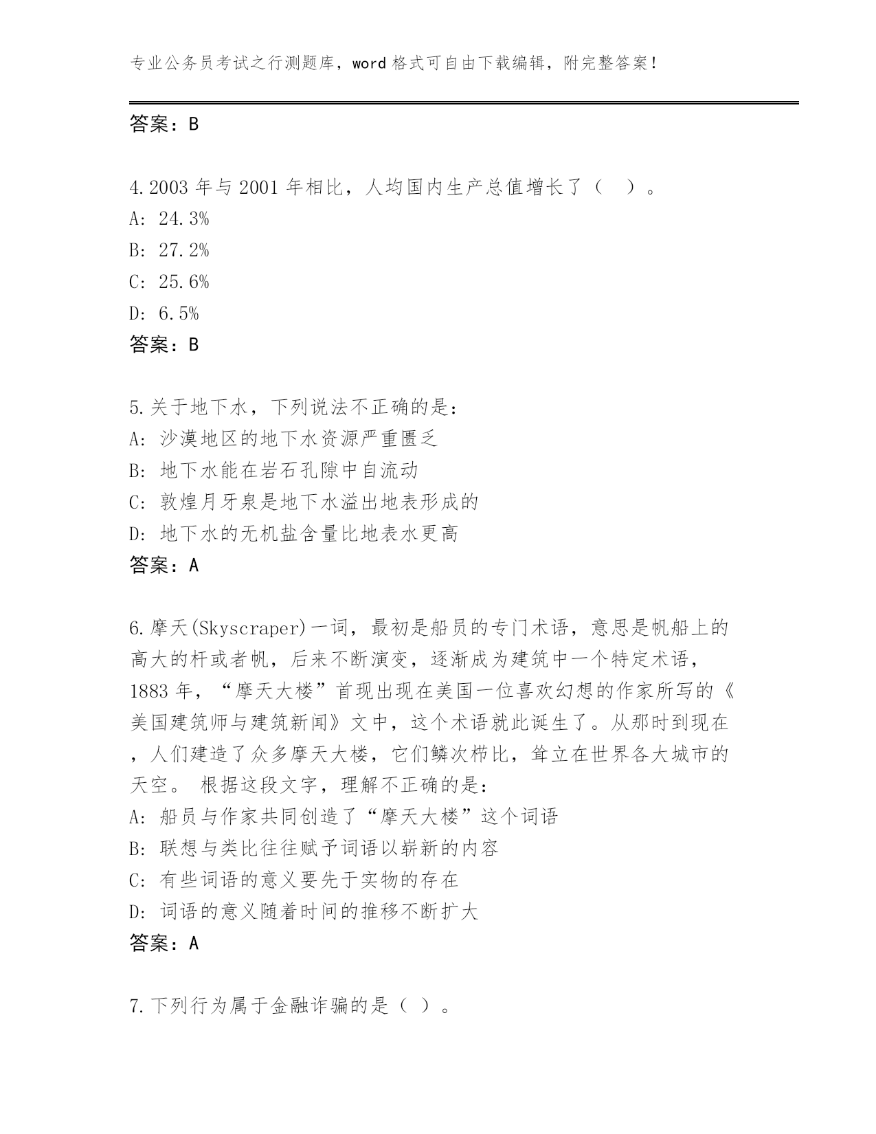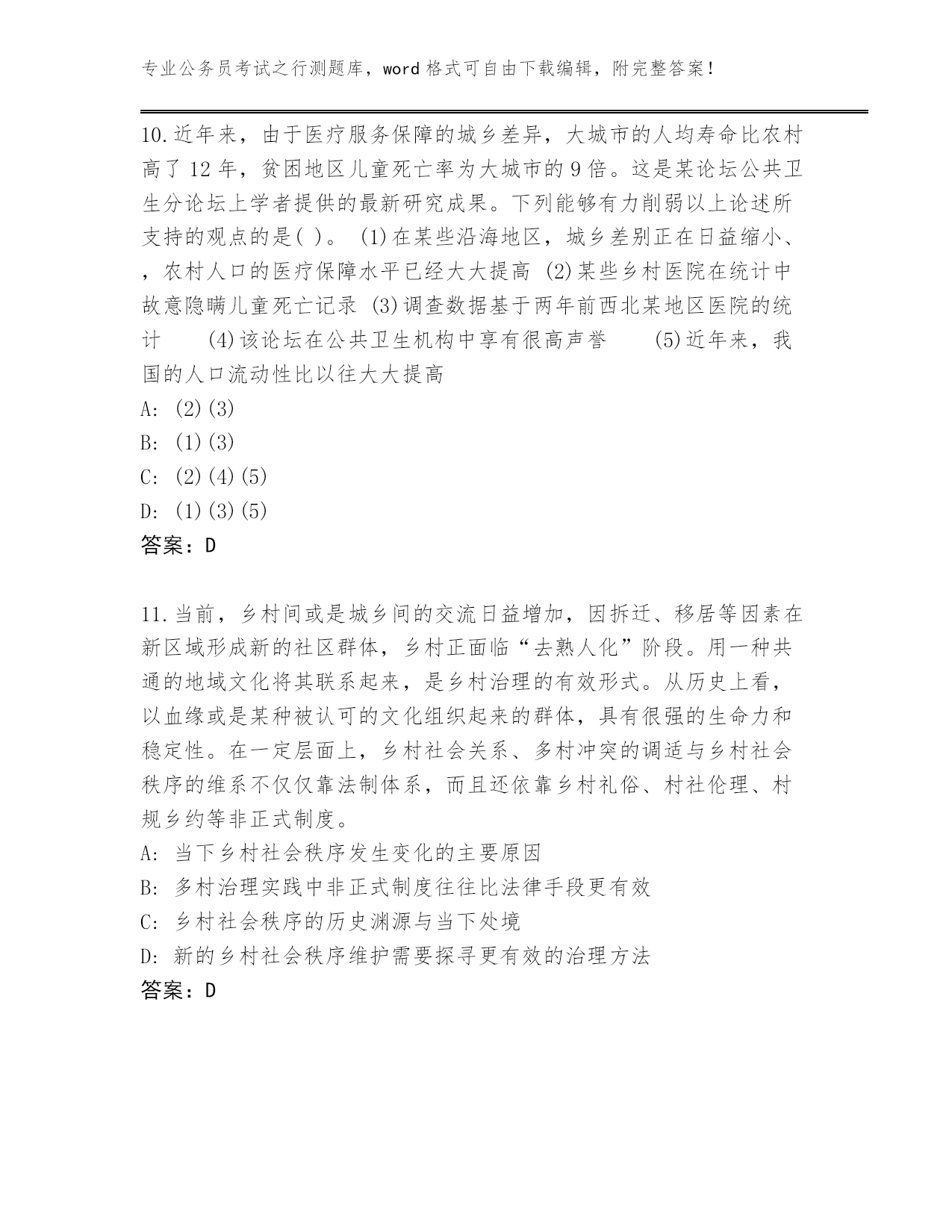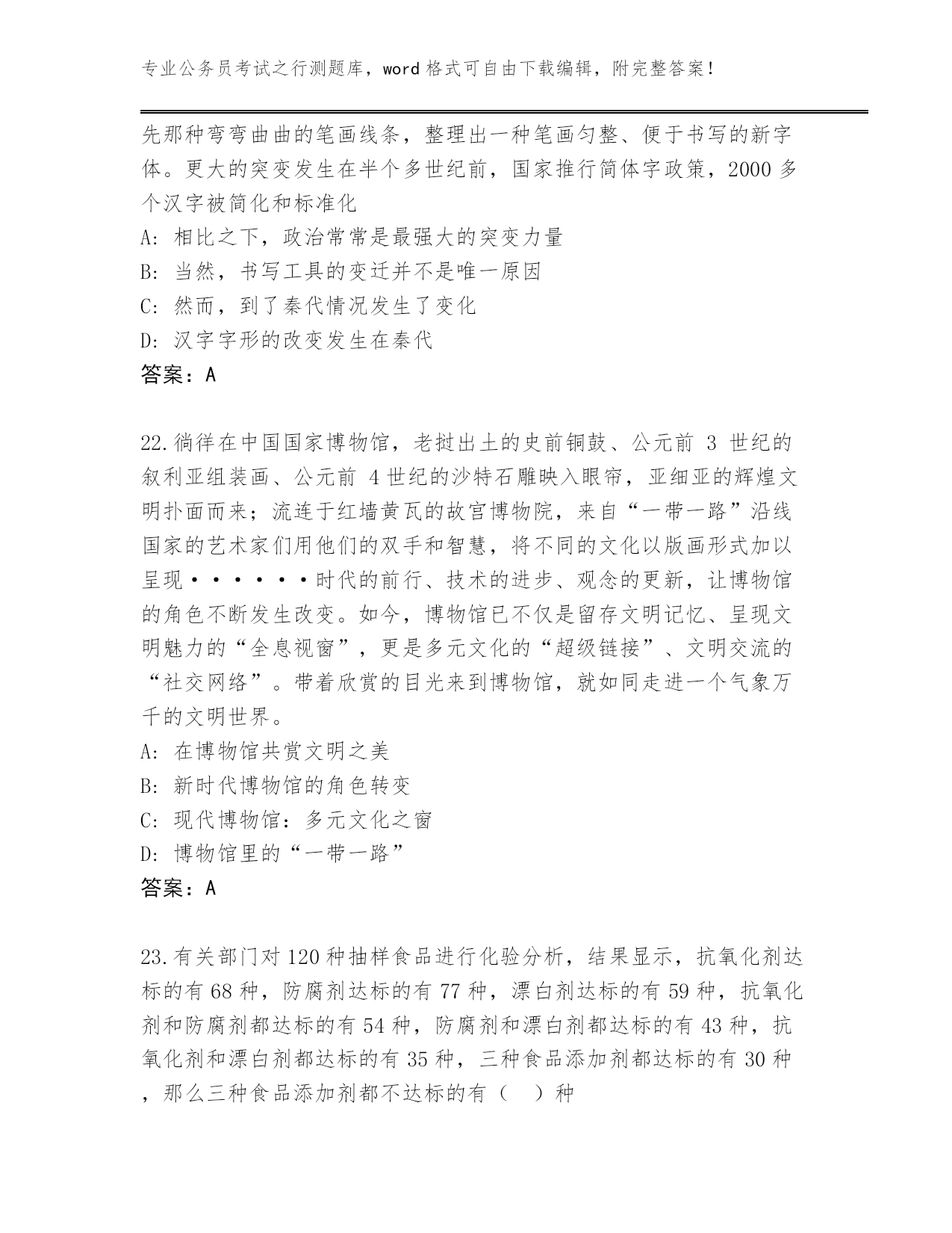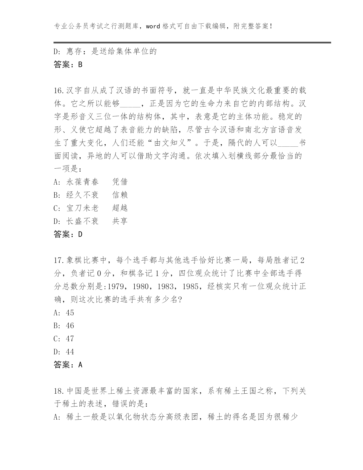 内部使用甘肃省瓜州县公务员考试之行测完整版及答案