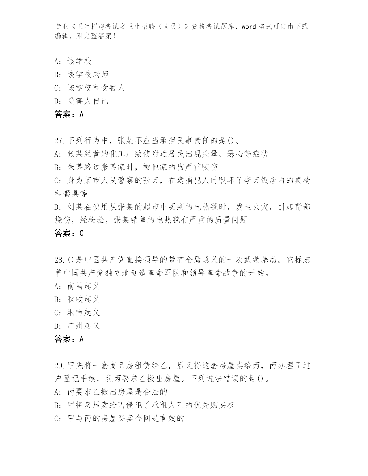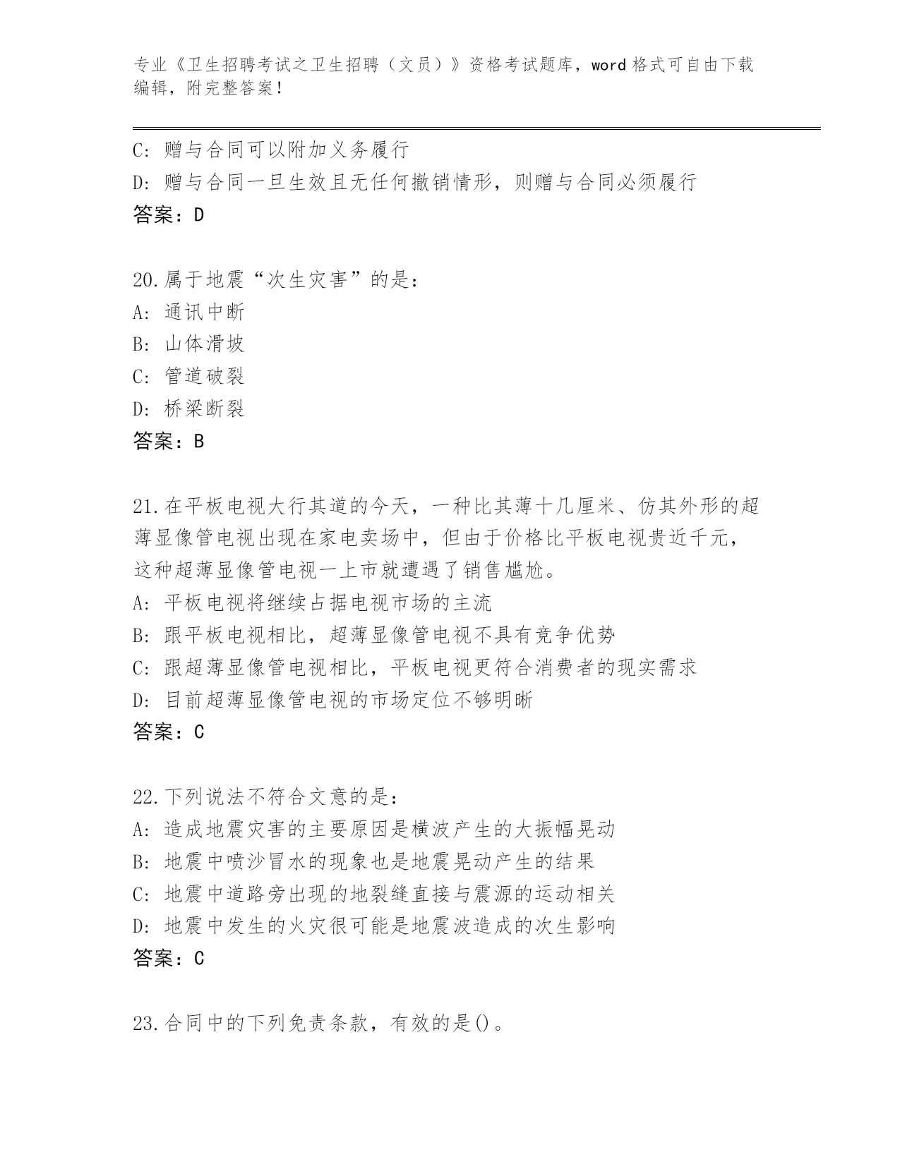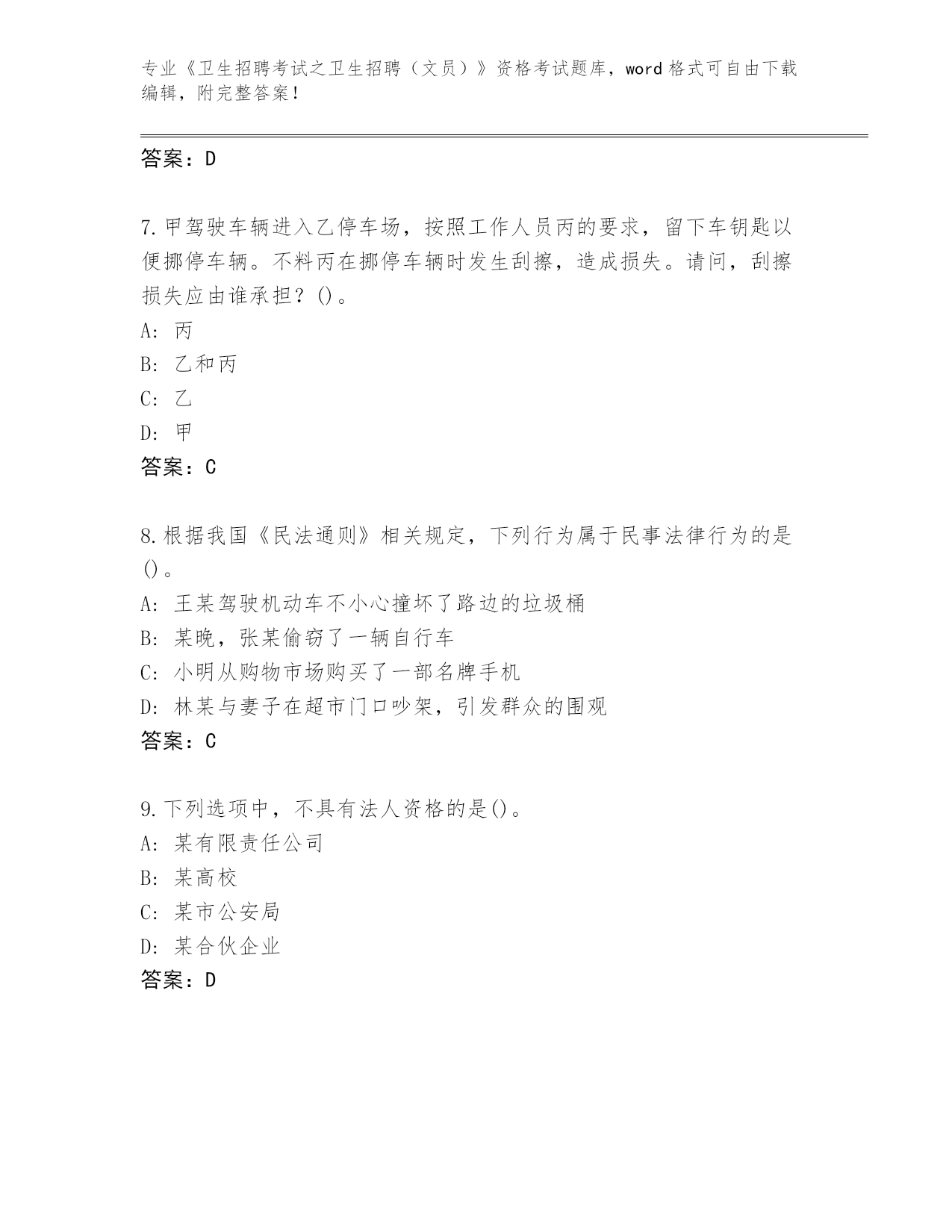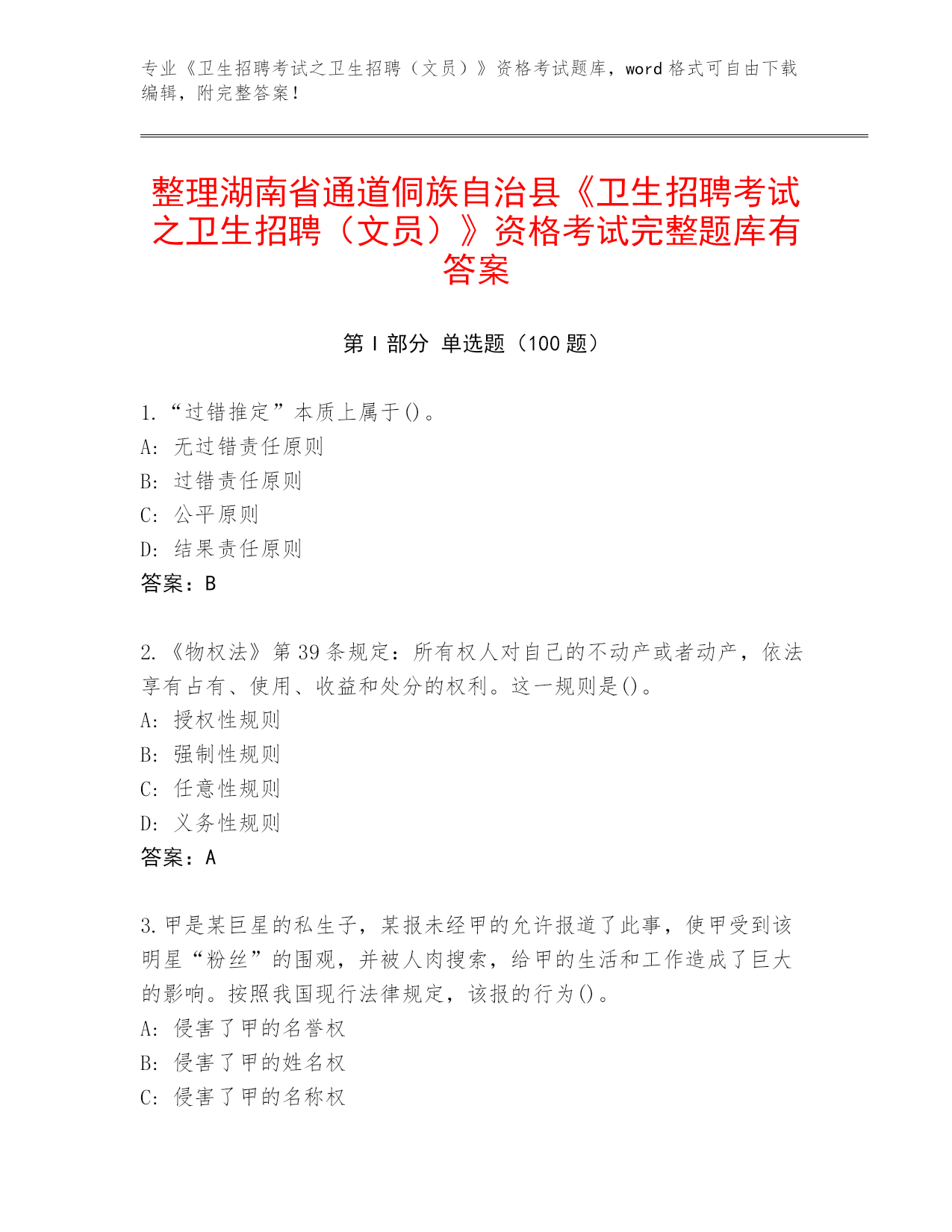 整理湖南省通道侗族自治县《卫生招聘考试之卫生招聘(文员)》资格考试完整题库有答案
