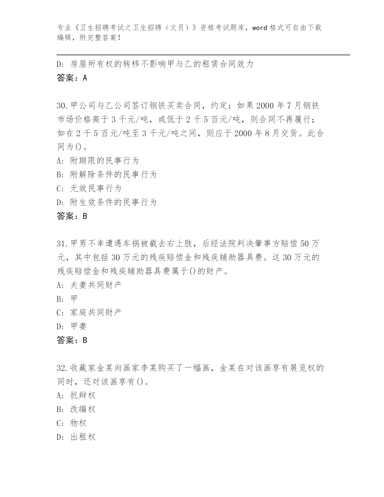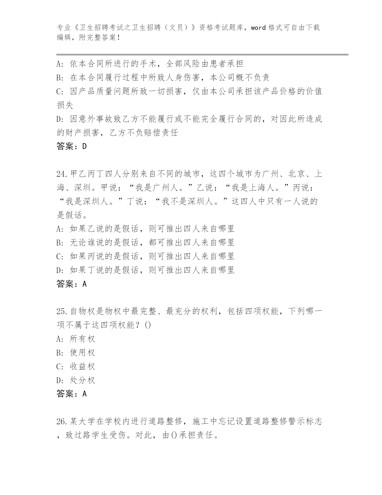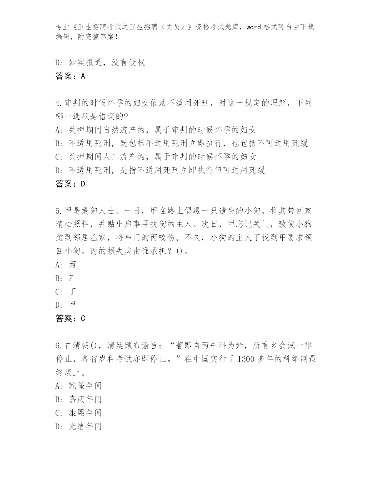 整理湖南省雁峰区《卫生招聘考试之卫生招聘(文员)》资格考试完整题库【必刷】