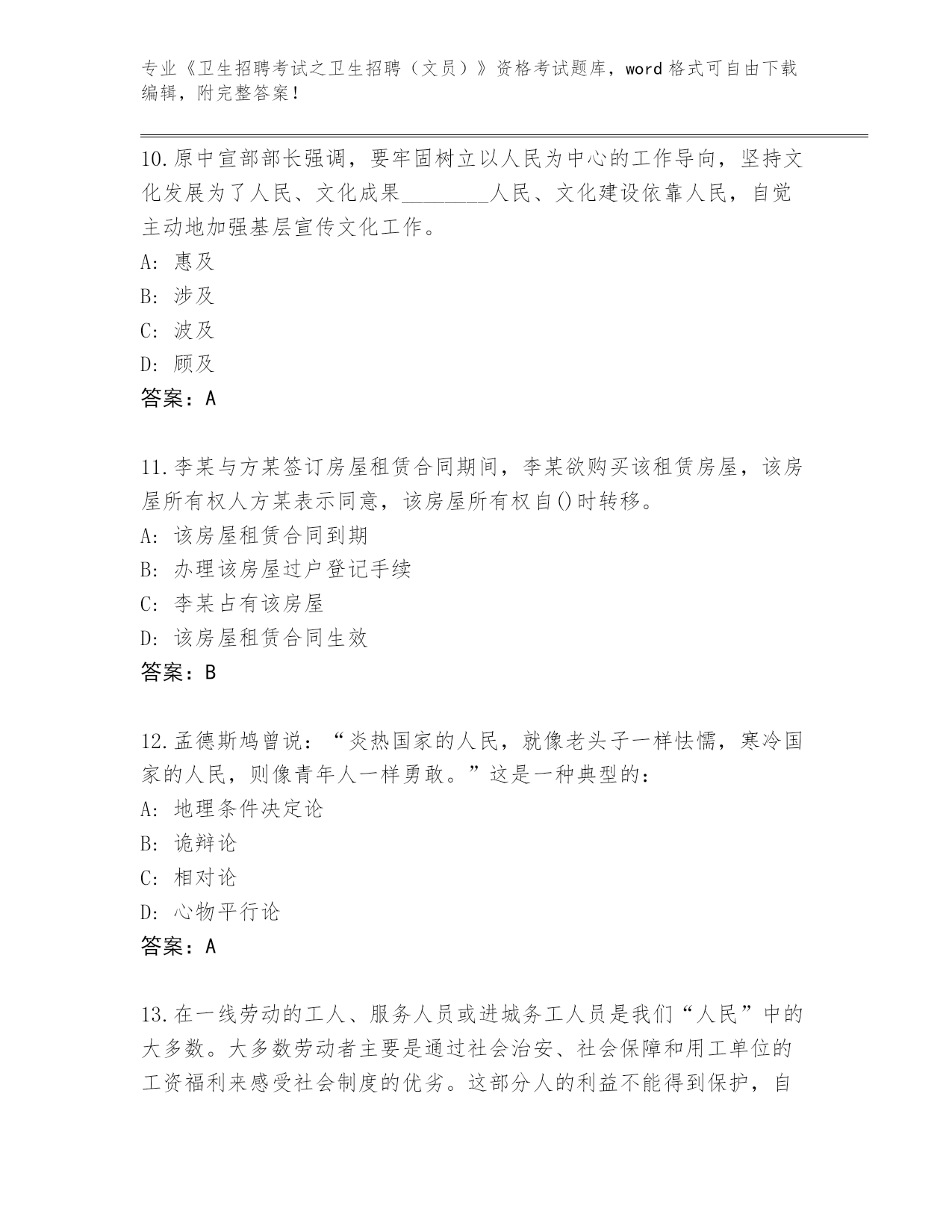 湖南省整理《卫生招聘考试之卫生招聘(文员)》资格考试带答案