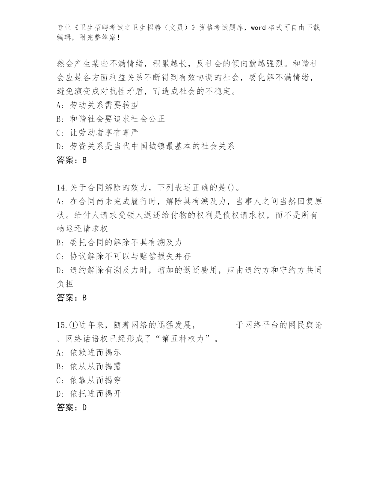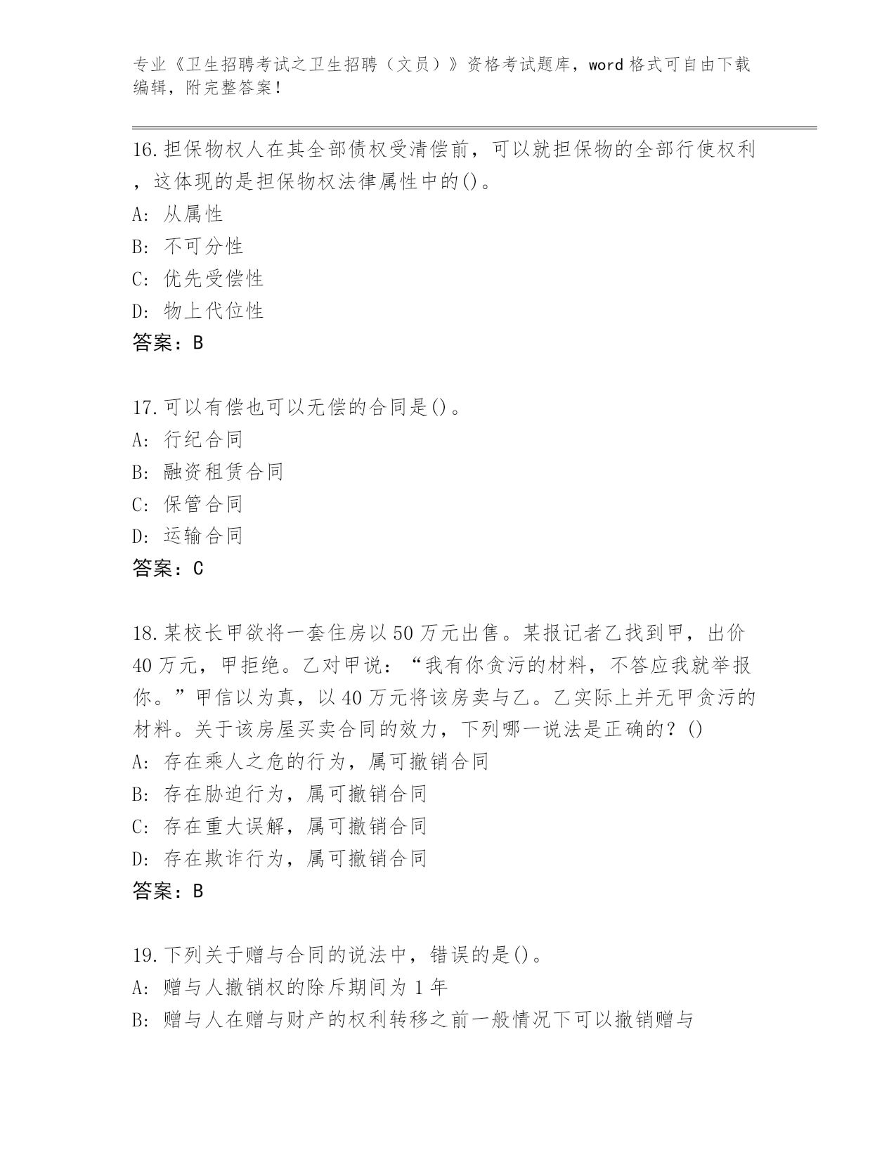 湖南省整理《卫生招聘考试之卫生招聘(文员)》资格考试完整版(精练)