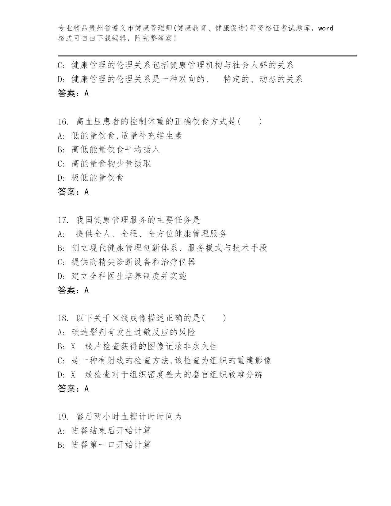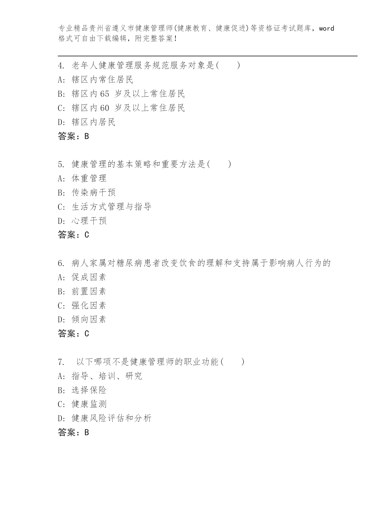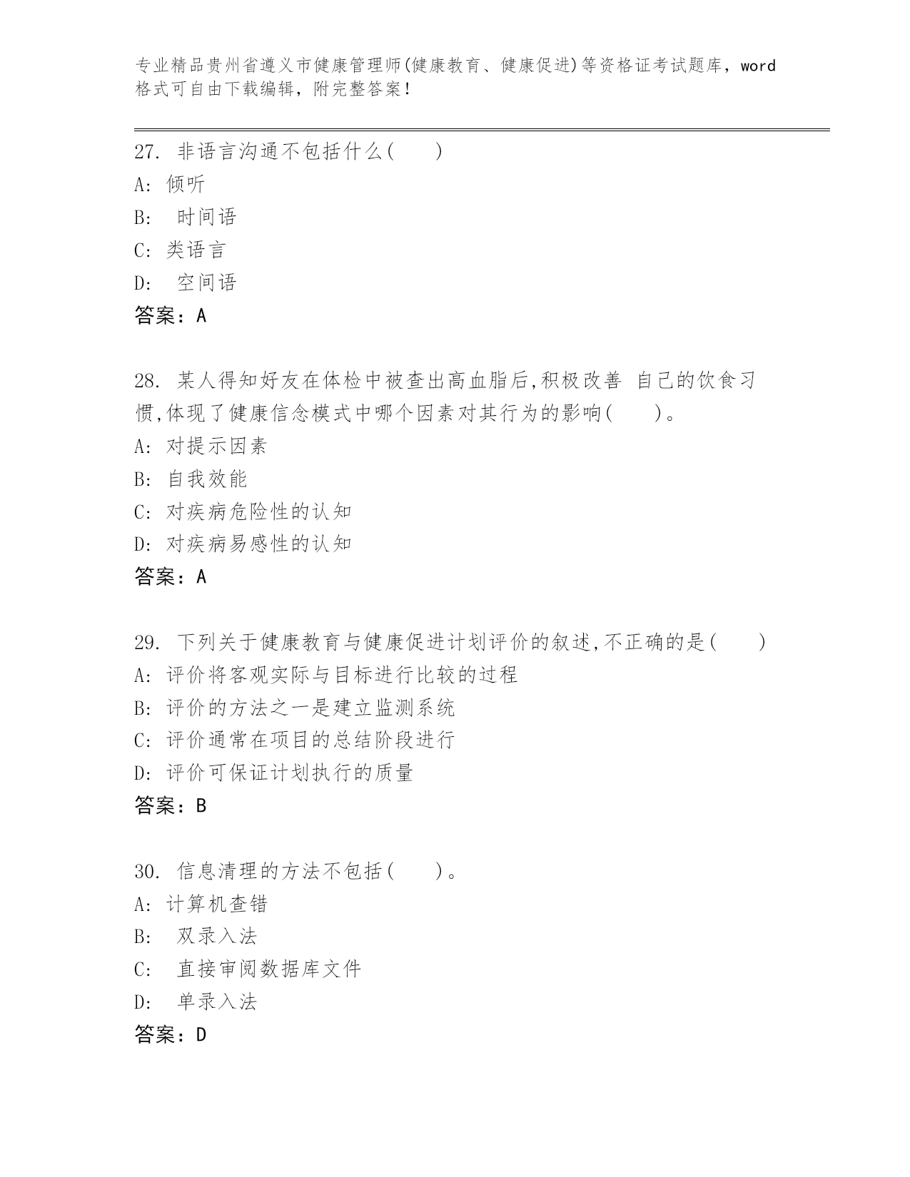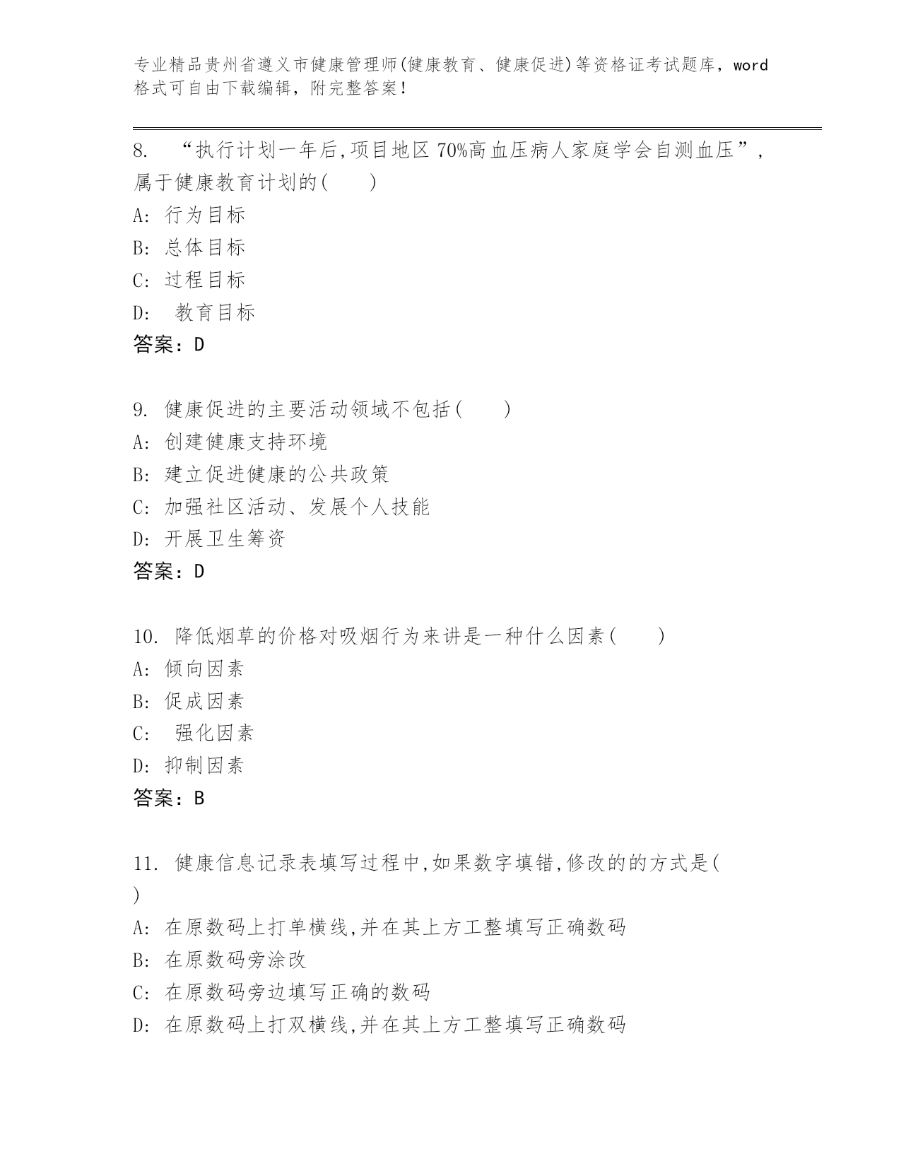历年贵州省遵义市健康管理师(健康教育、健康促进)等资格证考试通用题库精品(实用).docx
