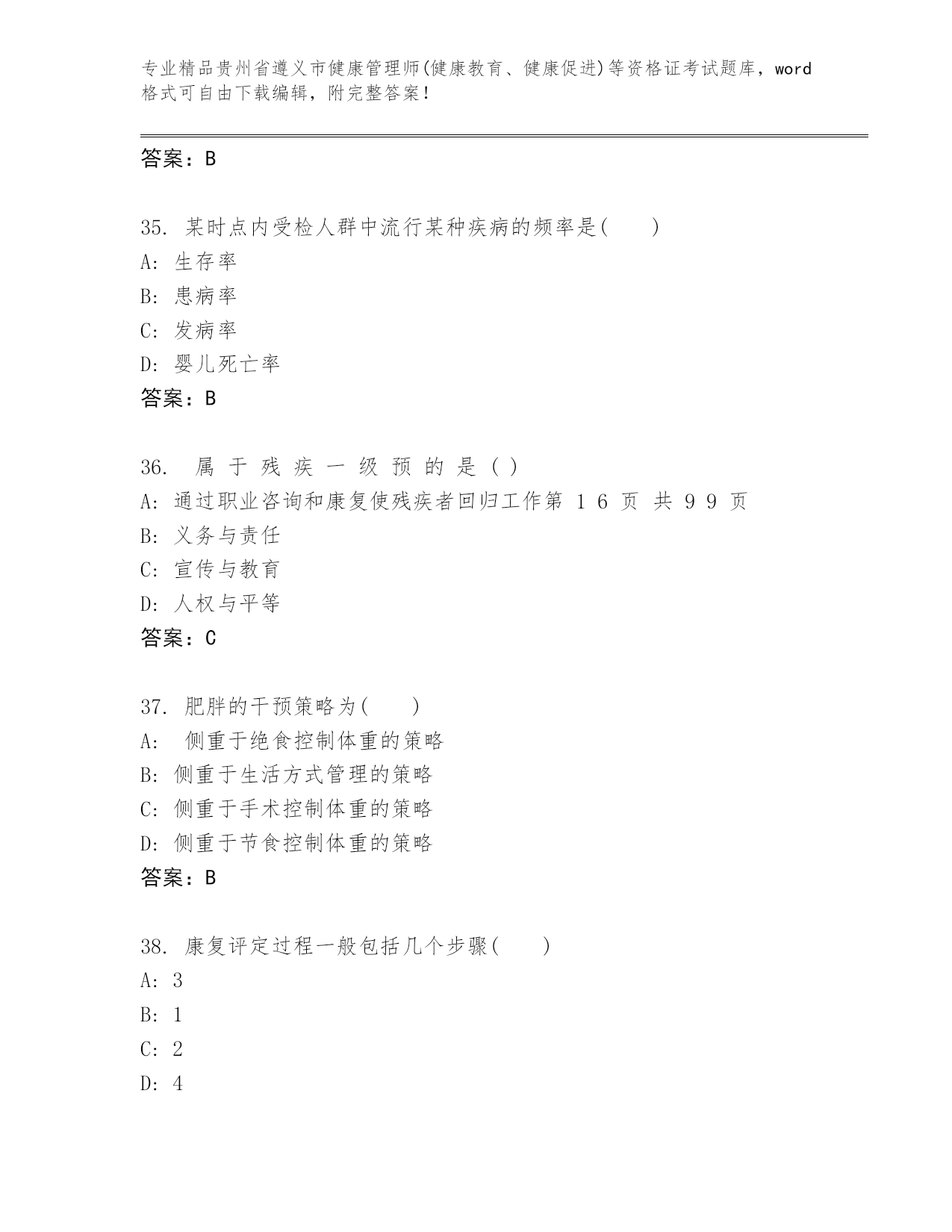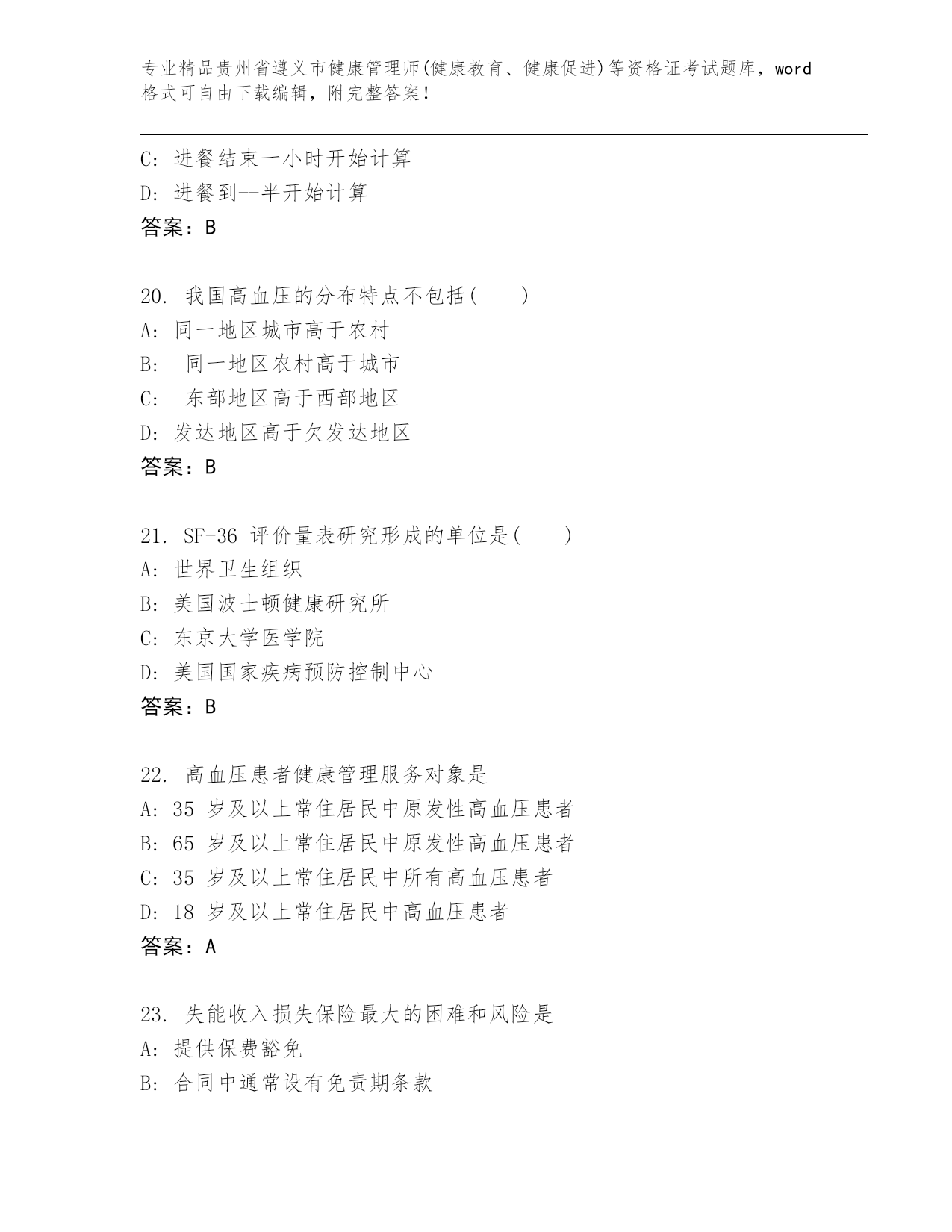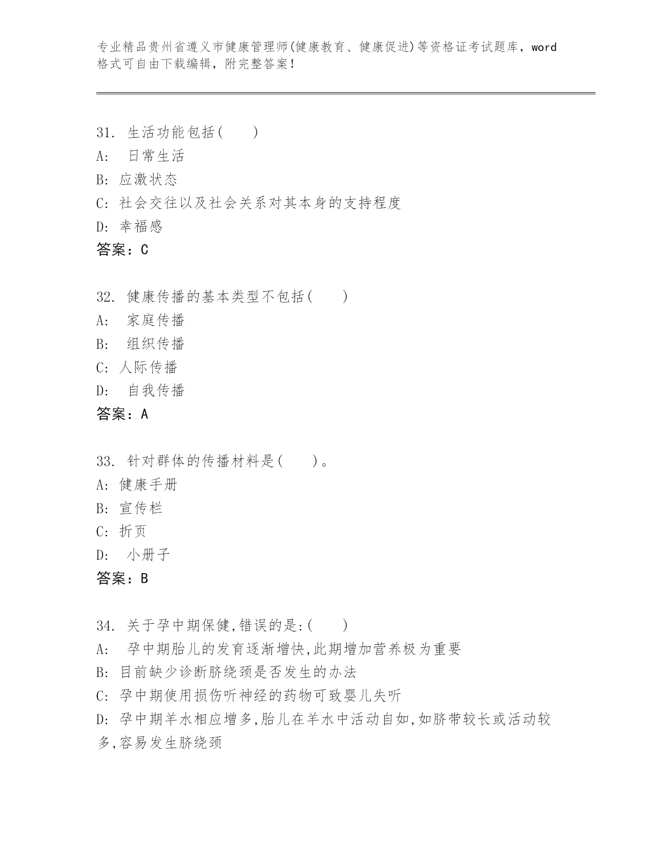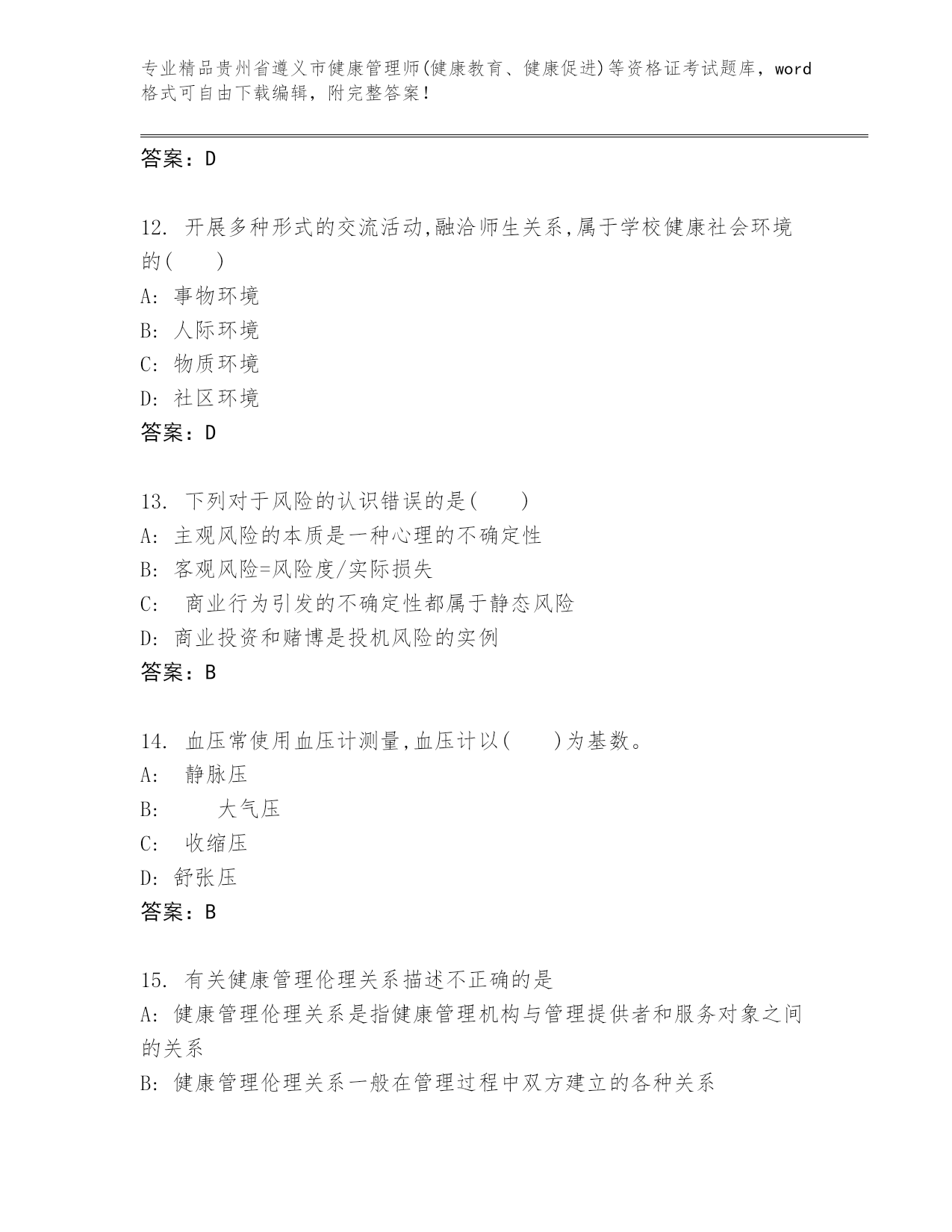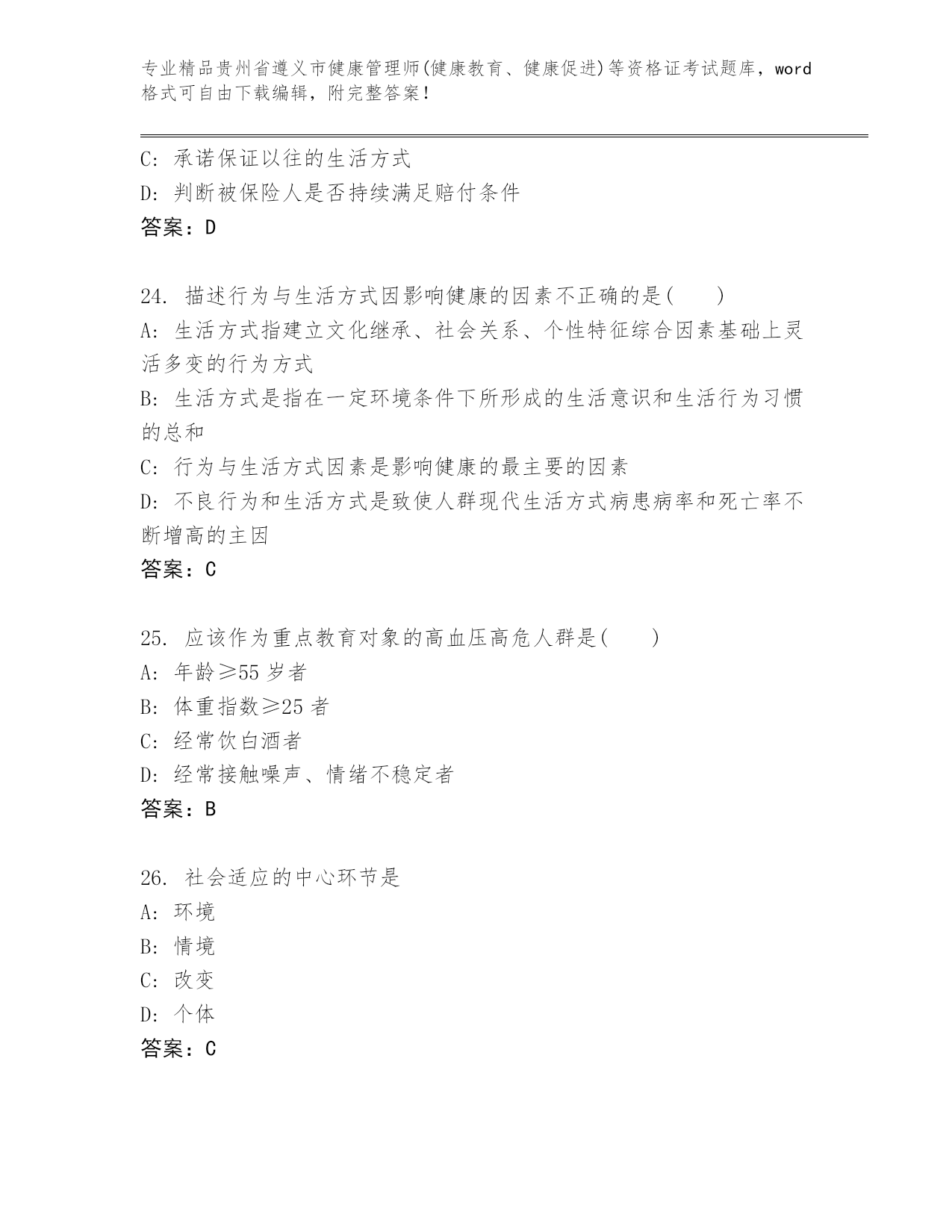 历年贵州省遵义市健康管理师(健康教育、健康促进)等资格证考试通用题库精品(实用).docx