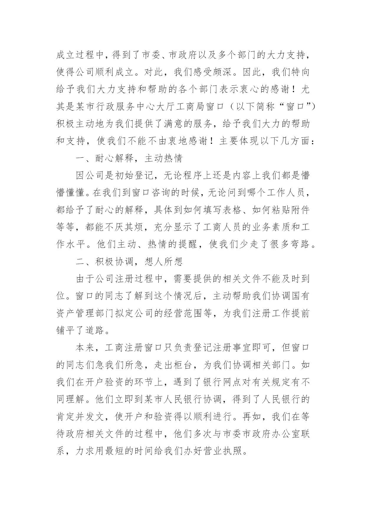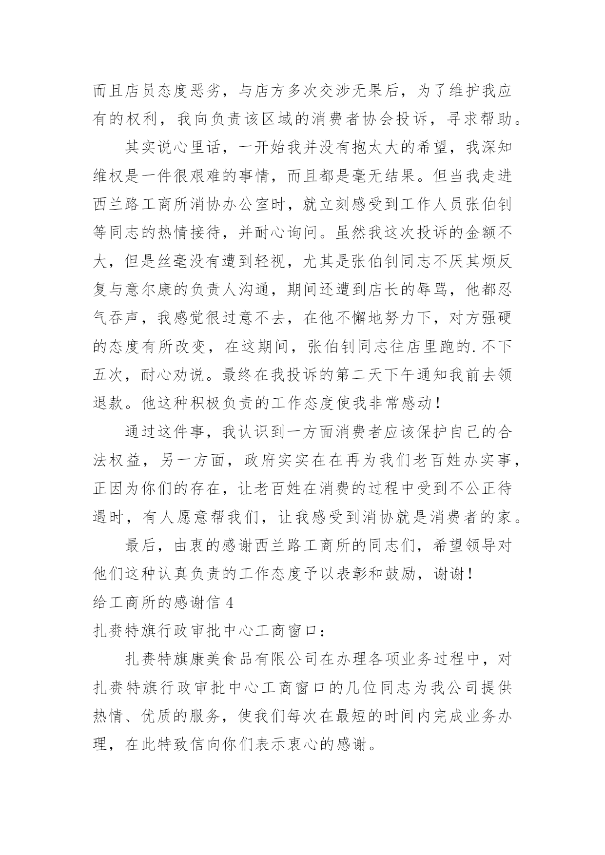 给工商所的感谢信给工商所的感谢信随着个人的文明素养不断提升,感谢信起到的作用越来越大,因为在口头表示感谢的同时,还需要感谢信的书面表达。怎么写感谢信才能避免踩雷呢?下面是小编为大家收集的给工商所的感谢信,供大家参考借鉴,希望可以帮助到有需要的朋友。给工商所的感谢信1xx市工商管理局:您好!天麒汽车综合服务有限公司成立于20xx年6月,主营业务有汽车修理、汽车轮胎销售、电脑洗车、汽车美容等各项综合于一体的服务。公司发展至今得到了市委、市政府及多个部门的大力积极支持,尤其是营口市工商管理局所积极给予的帮助、支持和扶持。营口市工商管理部门充分发挥职能作用,主动为企业排忧解难,铺路搭桥,创造发展平台,以真诚的服务,促进社会经济发展,为营口市创造除了一所所杰出的知名度高、竞争能力强、发展潜力大,并且具有优秀特色的中小型企业。贵局及时给予我们以热忱的帮助和服务。贵局多次派员到我公司亲自调研,给予指导意见,以求妥善解决问题,并最大化地保护我公司的合法权益。贵局工作人员任务繁重,在责各类企业、农民专业合作社和从事经营活动的单位,承担依法查处取缔无照经营的责任等工作外,贵局工作人员还热心、细心、恪尽职守、尽职尽责的.对我公司进行指导、教育等各项工作。由此,充分体现了营口市工商局强烈的服务意识和优秀的政治行风,表现出了万分的责任和精神,代表了中小企业的审批形象,更充分展现了营口市工商管理干部队伍“政治过硬、作风过硬、业务过硬”的优秀风貌,也更坚定了我公司在营口市开办企业获得成功的信心。公我公司坚信:在贵局领导和各位同志的关心与支持下,我公司一定能战胜各种创业困难,为地方经济的发展作出贡献!千言万语说不尽的感激,对此我公司在此对贵局表示最衷心的感谢并致以最崇高的敬意,同时诚挚感谢营口市工商行政管理局的大力支持和辛劳!此致敬礼!xx有限责任公司20xx年xx月xx日给工商所的感谢信2工商局某局长:这是一封迟发的感谢信。我们是某公司,某市重点扶持的三个经济区分别成立的投资性公司之一。我公司于某年某月某日注册成立,在我们成立过程中,得到了市委、市政府以及多个部门的大力支持,使得公司顺利成立。对此,我们感受颇深。因此,我们特向给予我们大力支持和帮助的各个部门表示衷心的感谢!尤其是某市行政服务中心大厅工商局窗口(以下简称“窗口”)积极主动地为我们提供了满意的服务,给予我们大力的帮助和支持,使我们不能不由衷地感谢!主要体现以下几方面:一、耐心解释,主动热情因公司是初始登记,无论程序上还是内容上我们都是懵懵懂懂。在我们到窗口咨询的时候,无论问到哪个工作人员,都给予了耐心的解释,具体到如何填写表格、如何粘贴附件等等,都能不厌其烦,充分显示了工商人员的业务素质和工作水平。他们主动、热情的提醒,使我们少走了很多弯路。二、积极协调,想人所想由于公司注册过程中,需要提供的相关文件不能及时到位。窗口的同志了解到这个情况后,主动帮助我们协调国有资产管理部门拟定公司的经营范围等,为我们注册工作提前铺平了道路。本来,工商注册窗口只负责登记注册事宜即可,但窗口的同志们急我们所急,走出柜台,为我们协调相关部门。如我们在开户验资的环节上,遇到了银行网点对有关规定有不同理解。他们立即到某市人民银行协调,得到了人民银行的肯定并发文,使开户和验资得以顺利进行。再如,我们在等待政府相关文件的过程中,他们多次与市委市政府办公室联系,力求用最短的时间给我们办好营业执照。三、特事特办,效率极佳窗口的同志们针对我们急于开展工作,又不能完全取得全部文件的特殊情况,特事特办。在办理登记的`同时,他们为我们开辟了“绿色通道”,组织质监、地税、公安等部门同时进行联办,在一个工作日内就取得《营业执照》、《组织机构代码证》、《税务登记证》及刻制公章。总之,在我们办理注册登记过程中,工商管理窗口的同志们没有喝我们一口水,没有抽我们一根烟,却为我们的注册工作付出了太多太多。我们发自内心地说:你们不愧为“青年文明号”的称号!我们无以回报,只能以这种形式向组织上表示一下我们的谢意,感谢某工商行政管理局政务中心窗口的同志们,我们会在今后建设某,投资xx,开发x的过程中,以你们为榜样,为把某建设成为海南省西部中心城市做出贡献!此致敬礼xx公司xxxx年xx月xx日给工商所的感谢信3未央区西兰路工商所的全体同志:您们好:我是一个普通的消费者,由于我老公9月16日在意尔康专卖店给我买了一款女包,单价238元,我使用两天后发现包的漆皮掉了,9月22日来到意尔康专卖店要求退货遭拒,而且店员态度恶劣,与店方多次交涉无果后,为了维护我应有的权利,我向负责该区域的消费者协会投诉,寻求帮助。其实说心里话,一开始我并没有抱太大的希望,我深知维权是一件很艰难的事情,而且都是毫无结果。但当我走进西兰路工商所消协办公室时,就立刻感受到工作人员张