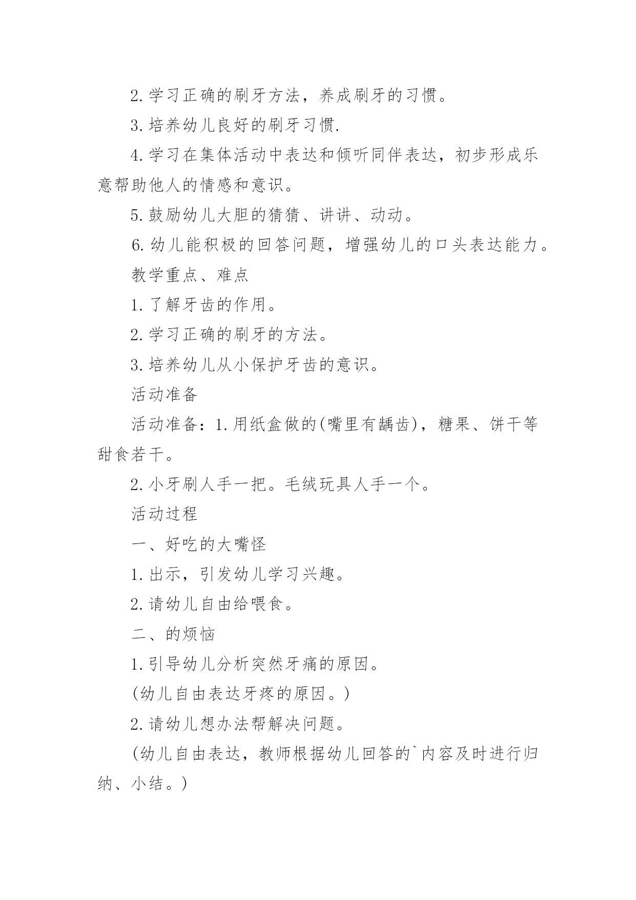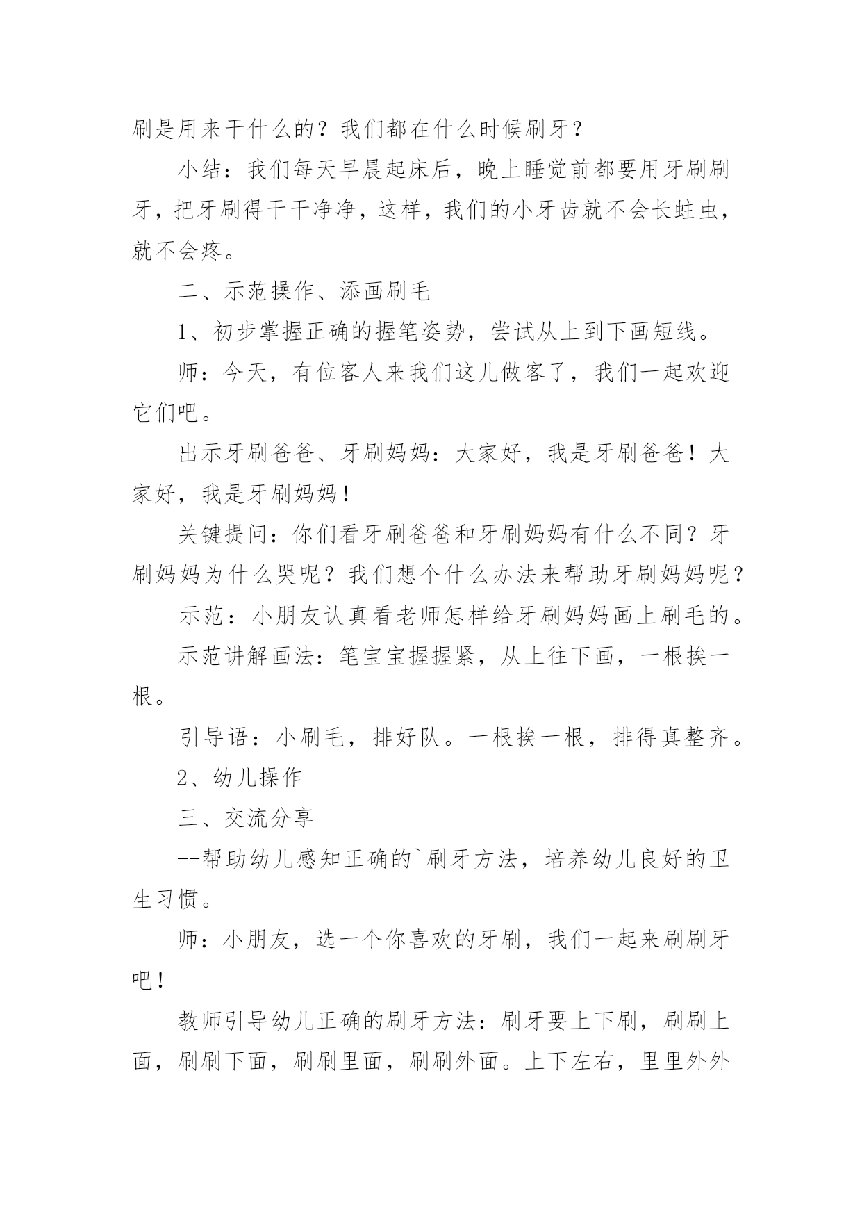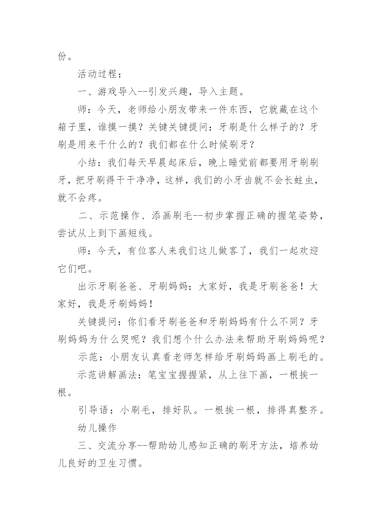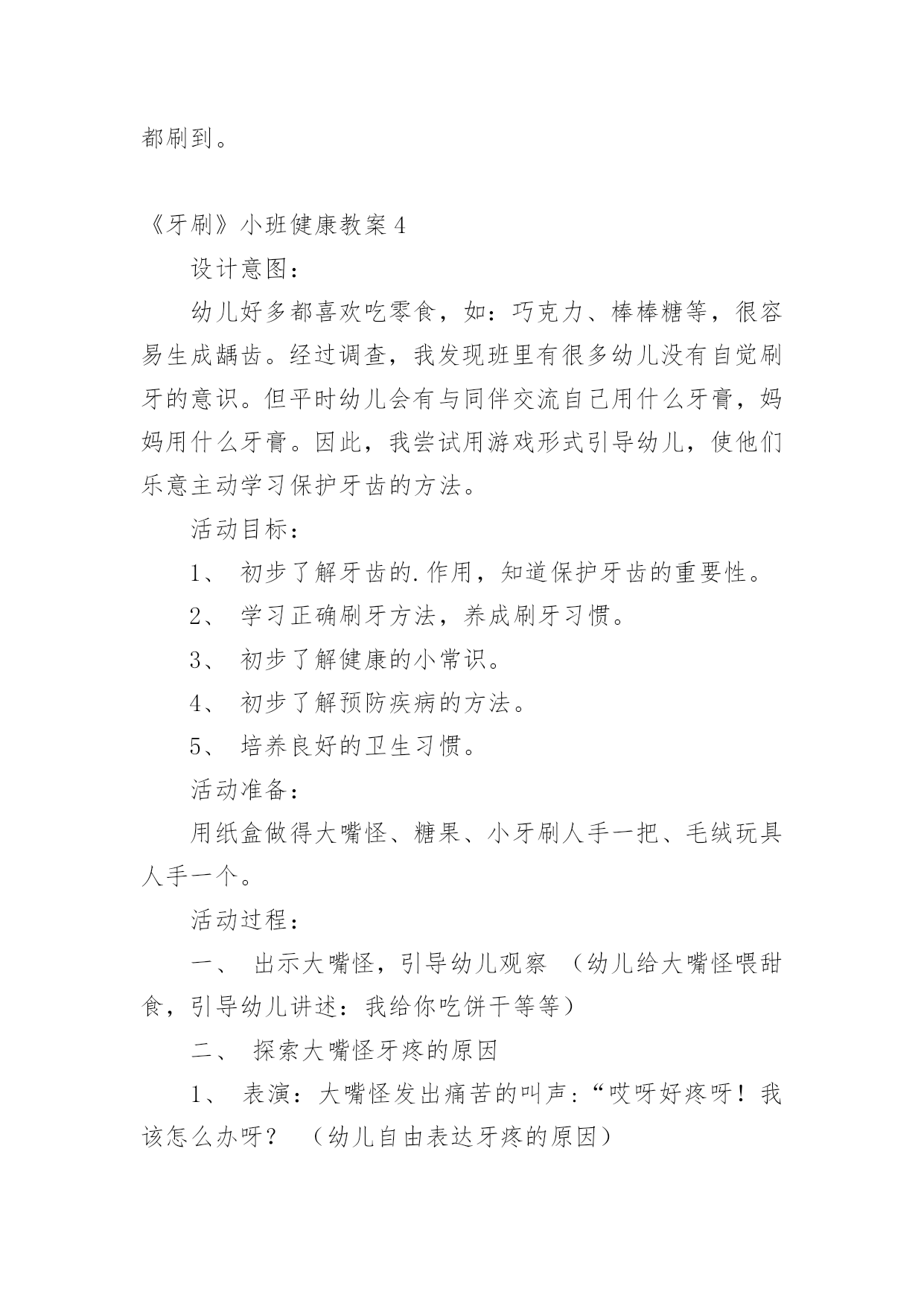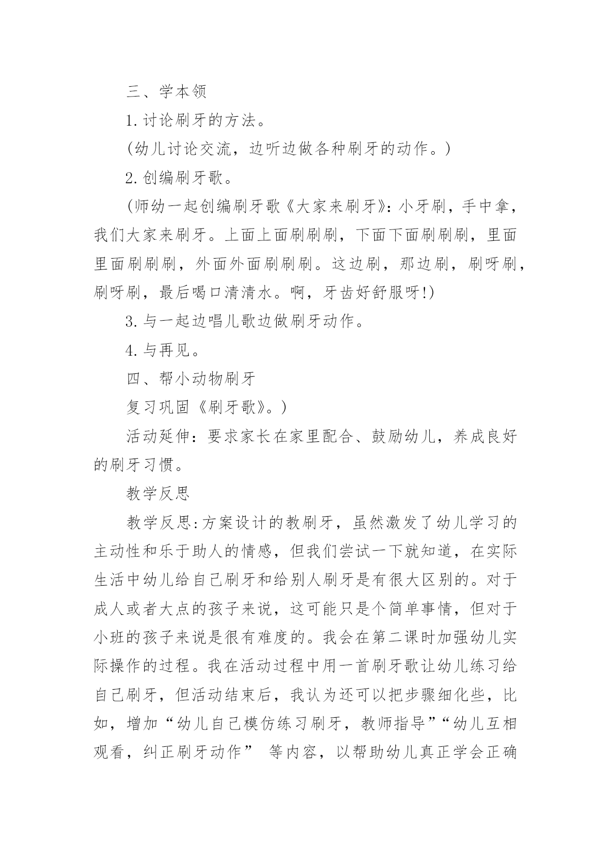 《牙刷》小班健康教案作为一位杰出的老师,很有必要精心设计一份教案,教案有助于学生理解并掌握系统的知识。如何把教案做到重点突出呢?以下是小编整理的《牙刷》小班健康教案,希望能够帮助到大家。《牙刷》小班健康教案1活动名称:牙刷设计思路:从小养成良好的个人卫生习惯,对孩子一生的口腔卫生和个人生活习惯都会有很大的影响和改变。小班大多孩子在家都有了早上刷牙的习惯,但对于晚上睡前刷牙以及正确的刷牙方法了解的并不多。于是,我在《小宝宝》主题下设计了本次活动,在富有情境的`"牙刷一家"的故事中,让孩子们感知正确的刷牙方法,养成良好的个人卫生习惯。活动目标:1、引导幼儿初步掌握正确的握笔姿势,尝试从上到下画短线。2、帮助幼儿感知正确的刷牙方法,培养幼儿良好的卫生习惯。重难点:从上到下画短线。活动准备:牙刷、牙刷道具,黑色水彩笔人手一份,小牙刷人手一份。活动过程:一、游戏导入--引发兴趣,导入主题。师:今天,老师给小朋友带来一件东西,它就藏在这个箱子里,谁摸一摸?关键关键提问:牙刷是什么样子的?牙刷是用来干什么的?我们都在什么时候刷牙?小结:我们每天早晨起床后,晚上睡觉前都要用牙刷刷牙,把牙刷得干干净净,这样,我们的小牙齿就不会长蛀虫,就不会疼。二、示范操作、添画刷毛--初步掌握正确的握笔姿势,尝试从上到下画短线。师:今天,有位客人来我们这儿做客了,我们一起欢迎它们吧。出示牙刷爸爸、牙刷妈妈:大家好,我是牙刷爸爸!大家好,我是牙刷妈妈!关键提问:你们看牙刷爸爸和牙刷妈妈有什么不同?牙刷妈妈为什么哭呢?我们想个什么办法来帮助牙刷妈妈呢?示范:小朋友认真看老师怎样给牙刷妈妈画上刷毛的。示范讲解画法:笔宝宝握握紧,从上往下画,一根挨一根。引导语:小刷毛,排好队。一根挨一根,排得真整齐。幼儿操作三、交流分享--帮助幼儿感知正确的刷牙方法,培养幼儿良好的卫生习惯。师:小朋友,选一个你喜欢的牙刷,我们一起来刷刷牙吧!教师引导幼儿正确的刷牙方法:刷牙要上下刷,刷刷上面,刷刷下面,刷刷里面,刷刷外面。上下左右,里里外外都刷到。《牙刷》小班健康教案2活动目标:1.能够清晰的解释视频中小狮子身上发生的事情;2.准确掌握刷牙的正确方法;3.愿意每天早晚坚持刷牙;活动重、难点:准确掌握刷牙的正确方法活动准备:《不爱刷牙的小狮子》视频、狮子口腔牙齿的教具、脏物、牙刷、《牙刷火车》音乐活动过程:导入:(不爱刷牙的小狮子)视频,提问:视频里发生了什么?想一想怎么帮助他(引入刷牙)第一环节:帮助小狮子出示道具(狮子口腔),现在狮子的.嘴巴里有脏东西,我们怎样才能用牙刷又快又好的帮他把脏东西刷出来呢?(请个别幼儿尝试)分享经验:怎么刷不出来/怎么刷出来的?教师小结:示范,上下刷/左右刷/横着刷第二环节:分组互动——我是小能手将幼儿分为两组,可请幼儿找自己的好朋友组为一队。先请一人在小狮子口腔中尝试刷,一人在旁边观看。完后,相互交换。分享交流:在帮小狮子刷牙的过程中都有哪些问题?你是怎样解决的?教师小结:总结大多数问题,请一组做的比较好的幼儿上前表演第三环节:提问与讨论除了帮助小狮子刷牙还可以怎么办?(引出早晚坚持刷牙,坚持用正确的方法刷牙,饭后漱口)活动延伸:播放儿歌《牙刷火车》合着音乐一起做动作,强化刷牙动作记忆。家长可每天早晚播放儿歌提醒幼儿刷牙。活动反思:本节课程开始用一个小狮子的影片引起幼儿兴趣,再紧接着导出刷牙的方法,一环扣一环,层层紧密连接,在幼儿的兴趣内,寓教于乐的学习并愿意与小朋友分享自己的经验。既增加了动手能力也增加了语言交流。在环节二中幼儿动手操作时间尽量控制在7分钟内,中间有幼儿自己检查并交流问题。换组后,再次进行实践,达到巩固加深的目的。反思首先,在本次活动主题选择时,依据《幼儿园指导纲要》与《3---6岁儿童学习与发展指南》结合当下城市幼儿现状确立本次活动主题为刷牙的正确方法。其次,根据幼儿身心发展特点选择合适的素材故事,与玩教具结合幼儿在园生活美工活动,增加幼儿活动参与感。在活动中,尊重幼儿自主性,给与幼儿充分的实践时间,让幼儿自主探索方法,教师在幼儿探索的结果上进行总结与提升。最后,用歌舞律动的方式,巩固幼儿学习成果,引导幼儿达到长期情感目标:坚持用正确的方法刷牙。在教师引导的基础上加强家园合作,共同促进幼儿健康发展。《牙刷》小班健康教案3活动目标:1、引导幼儿初步掌握正确的握笔姿势,尝试从上到下画短线。2、帮助幼儿感知正确的刷牙方法,培养幼儿良好的卫生习惯。重点难点:从上到下画短线。活动准备:牙刷、牙刷道具,黑色水彩笔人手一份,小牙刷人手一份。活动过程:一、游戏导入--引发兴趣,导入主题。师:今天,老师给小朋友带来一件东西,它就藏在这个箱子里,谁摸一摸?关键关键提问:牙刷是什么样子的?牙刷是用来干什么的?我们都在什么时候刷牙?小结:我们每天早晨