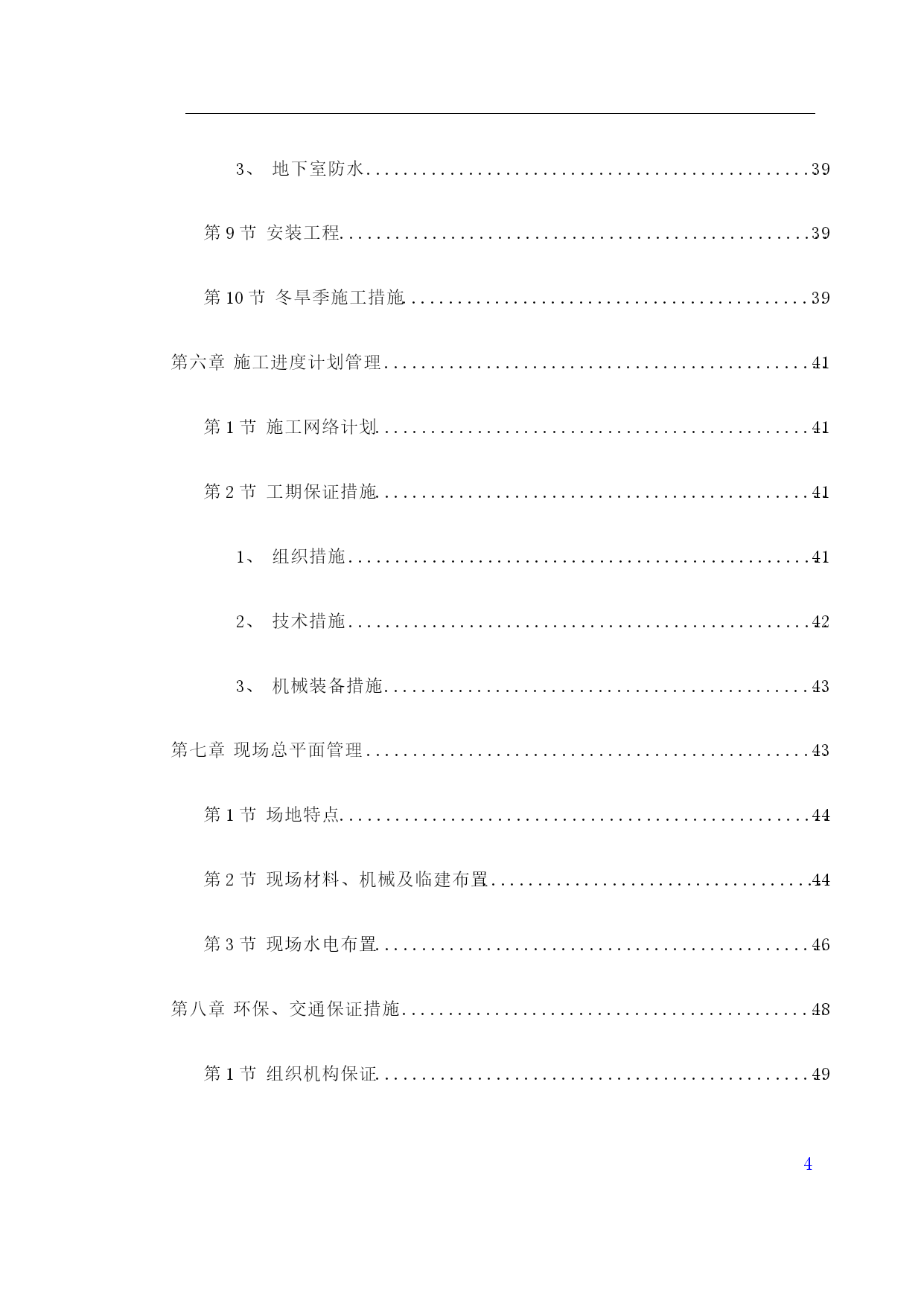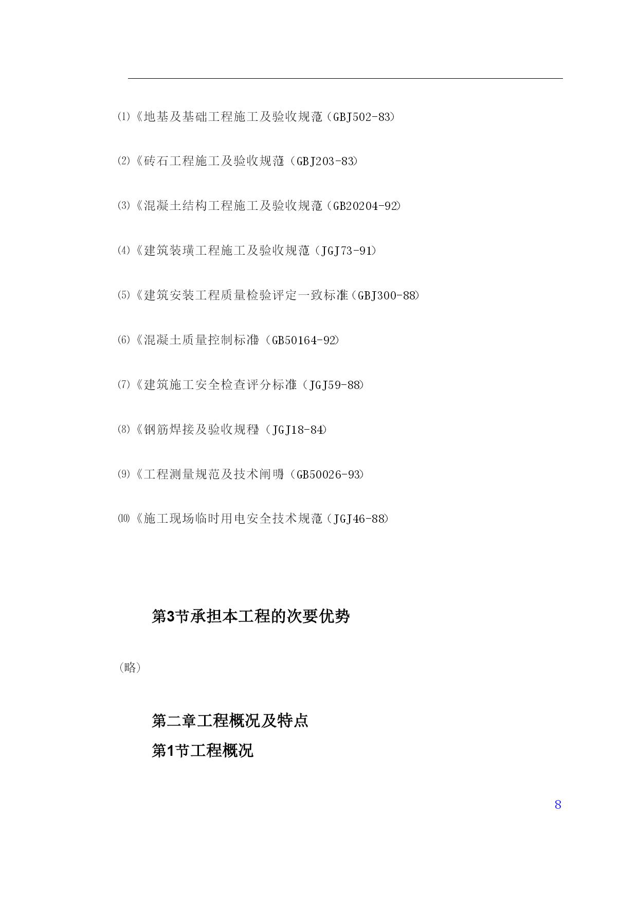 PAGEPAGE55目录TOC\o"1-3"第一章编制阐明PAGEREF_Toc207181173\h7第1节编制目的PAGEREF_Toc207181174\h7第2节编制根据PAGEREF_Toc207181175\h7第3节承担本工程的次要优势PAGEREF_Toc207181176\h8第二章工程概况及特点PAGEREF_Toc207181177\h8第1节工程概况PAGEREF_Toc207181178\h8第2节工程特点PAGEREF_Toc207181179\h9第三章指点思想与实行目标PAGEREF_Toc207181180\h10第1节指点思想PAGEREF_Toc207181181\h10第2节实行目标PAGEREF_Toc207181182\h11第四章施工部署PAGEREF_Toc207181183\h12第1节组织机构PAGEREF_Toc207181184\h12第2节施工程序PAGEREF_Toc207181185\h12第3节施工预备PAGEREF_Toc207181186\h141、现场、环境、交通预备PAGEREF_Toc207181187\h142、技术预备PAGEREF_Toc207181188\h153、材料预备PAGEREF_Toc207181189\h174、机械装备预备PAGEREF_Toc207181190\h205、劳动力预备PAGEREF_Toc207181191\h22第五章次要分部分项工程施工方法PAGEREF_Toc207181192\h25第1节测量工程PAGEREF_Toc207181193\h251、主轴线与施工方格网的建立PAGEREF_Toc207181194\h252、水准网的建立PAGEREF_Toc207181195\h253、基础放线PAGEREF_Toc207181196\h254、楼层放线PAGEREF_Toc207181197\h265、沉降观测PAGEREF_Toc207181198\h26第2节土方工程施工PAGEREF_Toc207181199\h26第3节地下室结构施工PAGEREF_Toc207181200\h271、垫层及胎模施工PAGEREF_Toc207181201\h272、钢筋工程施工PAGEREF_Toc207181202\h273、模板工程施工PAGEREF_Toc207181203\h284、砼工程施工PAGEREF_Toc207181204\h29第4节主体结构工程PAGEREF_Toc207181205\h291、钢筋工程PAGEREF_Toc207181206\h302、模板工程PAGEREF_Toc207181207\h303、砼工程PAGEREF_Toc207181208\h34第5节脚手架工程PAGEREF_Toc207181209\h36第6节砌筑工程PAGEREF_Toc207181210\h36第7节装修工程PAGEREF_Toc207181211\h371、内抹灰施工PAGEREF_Toc207181212\h372、室内地砖镶贴PAGEREF_Toc207181213\h38第8节防水工程PAGEREF_Toc207181214\h381、屋面防水及保温工程PAGEREF_Toc207181215\h382、楼层防水PAGEREF_Toc207181216\h393、地下室防水PAGEREF_Toc207181217\h39第9节安装工程PAGEREF_Toc207181218\h39第10节冬旱季施工措施PAGEREF_Toc207181219\h39第六章施工进度计划管理PAGEREF_Toc207181220\h41第1节施工网络计划PAGEREF_Toc207181221\h41第2节工期保证措施PAGEREF_Toc207181222\h411、组织措施PAGEREF_Toc207181223\h412、技术措施PAGEREF_Toc207181224\h423、机械装备措施PAGEREF_Toc207181225\h43第七章现场总