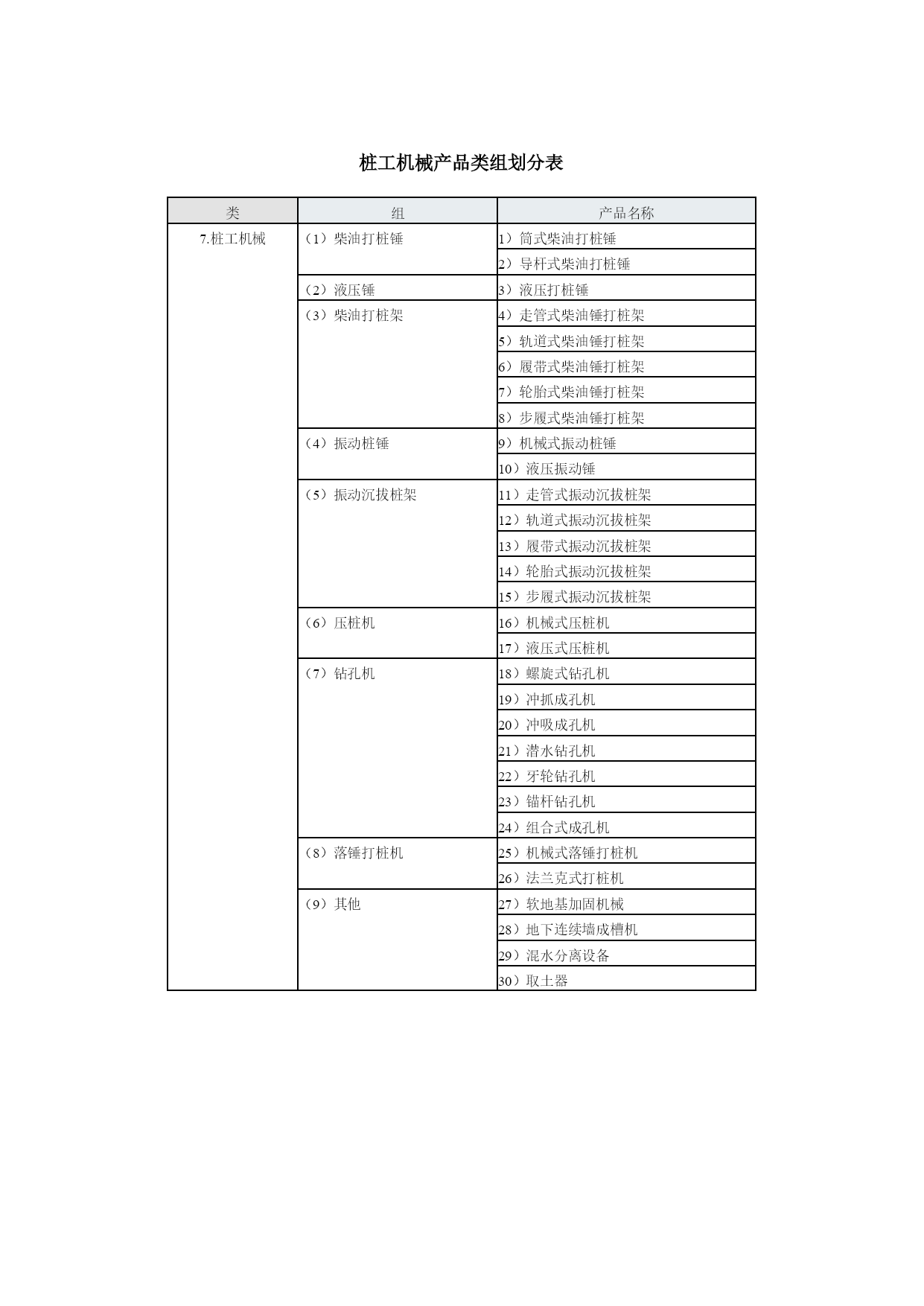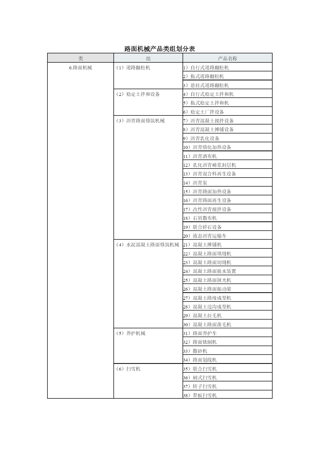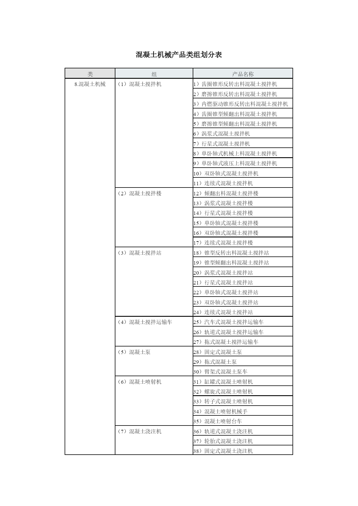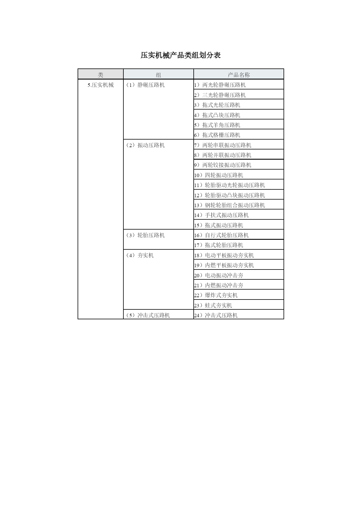 工程机械产品型谱工程机械挖掘机械(9组35种)铲土运输机械(6组2种)工程起重机械(14组48种)机动工业车辆(16组23种)压实机械(4组23种)路面机械(6组38种)桩工机械(9组30种)混凝土机械(12组57种)钢筋和预应力机械(4组25种)装修机械(9组67种)凿岩机械(5组25种)气动工具(3组46种)线路机械(4组19种)市政工程与环卫机械(6组58种)军用工程机械(5组20种)电梯与扶梯(2组12种)工程机械专用零部件(4组19种)其他专用工程机械(4组)挖掘机械产品类组划分表类组产品名称1.挖掘机械(1)单斗挖掘机1)履带式机械单斗挖掘机2)履带式电动单斗挖掘机3)履带式液压单斗挖掘机4)轮胎式机械单斗挖掘机5)轮胎式液压单斗挖掘机6)轮胎式电动单斗挖掘机7)汽车式单斗挖掘机8)步履式机械单斗挖掘机9)步履式液压单斗挖掘机(2)多斗挖掘机10)机械轮斗挖掘机11)液压轮斗挖掘机12)电动轮斗挖掘机13)机械链斗挖掘机14)液压链斗挖掘机15)电动链斗挖掘机(3)多斗挖沟机16)机械轮斗挖沟机17)液压轮斗挖沟机18)电动轮斗挖沟机19)机械链斗挖沟机20)液压链斗挖沟机21)电动链斗挖沟机(4)斗轮挖掘机22)机械斗轮挖掘机23)液压斗轮挖掘机24)电动斗轮挖掘机(5)挖掘装载机25)挖掘装载机(6)滚切挖掘机26)滚切挖掘机(7)铣切挖掘机27)铣切挖掘机(8)掘进机28)盾构掘进机29)顶管掘进机30)隧道掘进机31)涵洞掘进机(9)特殊用途挖掘机32)水陆两用挖掘机33)隧道挖掘机34)湿地挖掘机35)船用挖掘机铲土运输机械产品类组划分表类组产品名称2.铲土运输机械(1)推土机1)机械履带推土机2)液压履带推土机3)液压轮胎式推土机(2)装载机4)机械履带装载机5)液压履带装载机6)液压轮胎装载机7)隧道型轮胎装载机(3)铲运机8)自行轮胎式铲运机9)自动履带式铲运机10)链板轮胎式铲运机11)双发动机轮胎式铲运机12)拖式机械铲运机13)拖式液压铲运机(4)平地机14)自行机械式平地机15)自行液压式平地机16)拖式平地机(5)翻斗车17)前置式重力卸料翻斗车18)后置式重力卸料翻斗车19)液压翻斗车20)铰接式液压翻斗车(6)清除机21)除根机22)除荆机工程起重机械产品类组划分表类组产品名称3.工程起重机械(1)汽车起重机1)机械式汽车起重机2)液压式汽车起重机3)全路面越野汽车起重机(2)塔式起重机4)轨道式上回转塔式起重机5)轨道式上回转自升塔式起重机6)轨道式下回转塔式起重机7)轨道式下回转自升塔式起重机8)快装式塔式起重机9)汽车塔式起重机10)轮胎塔式起重机11)履带塔式起重机12)组合塔式起重机(3)履带起重机13)履带式机械起重机14)履带式液压起重机15)履带式电动起重机(4)桅杆起重机16)缆绳式桅杆起重机17)斜撑式桅杆起重机(5)缆索起重机18)辐射式缆索起重机19)平移式缆索起重机20)固定式缆索起重机(6)管道起重机21)机械式管道起重机22)液压式管道起重机(7)抓斗起重机23)履带式抓斗起重机24)轮胎式抓斗起重机(8)轮胎起重机25)轮胎起重机(9)卷扬机26)单筒快带卷扬机27)单筒慢速卷扬机28)单筒快溜式卷扬机29)单筒慢溜式卷扬机30)单筒调速式卷扬机31)双筒快速卷扬机32)双筒调速卷扬机33)三筒快速卷扬机(10)施工升降机34)三角型导轨架齿轮齿条式升降机35)矩型导轨架齿轮齿条式升降机36)倾斜式齿轮齿条升降机37)曲线式齿轮齿条升降机38)双导轨架钢丝绳式升降机39)单导轨架包容吊笼钢丝绳式升降机40)单导轨架不包容式吊笼钢丝绳式升降机41)混合式升降机(11)液压顶升机42)自控式液压顶升机43)手动式液压顶升机(12)高空作业机械44)高空作业车45)高空作业平台(13)随车起重机46)随车起重机(14)清障抢救车47)机械式清障抢救车48)液压式清障抢救车机动工业车辆产品类组划分表类组产品名称1.机动工业车辆(1)平衡重式叉车1)内燃平衡重式叉车2)电动平衡重式叉车(2)前移式叉车3)前移式叉车(3)插腿式叉车4)手动插腿式叉车5)电动插腿式叉车(4)托盘堆垛车6)手动托盘堆垛车7)电动托盘堆垛车(5)平台堆垛车8)平台堆垛车(6)拣选车9)拣选车(7)侧面式叉车10)内燃侧面叉车11)电动侧面叉车(8)越野叉车12)越野叉车(9)跨车13)跨车(10)伸缩臂叉车14)伸缩臂叉车(11)侧向堆垛叉车15)侧向堆垛叉车(12)三向堆垛叉车16)三向堆垛叉车(13)集装箱叉车17)集装箱叉车(14)固定平台搬运车18)内燃固定平台搬运车19)电动固定平台搬运车(15)自动导向搬运车20)电磁导向自动搬运车21)光电导