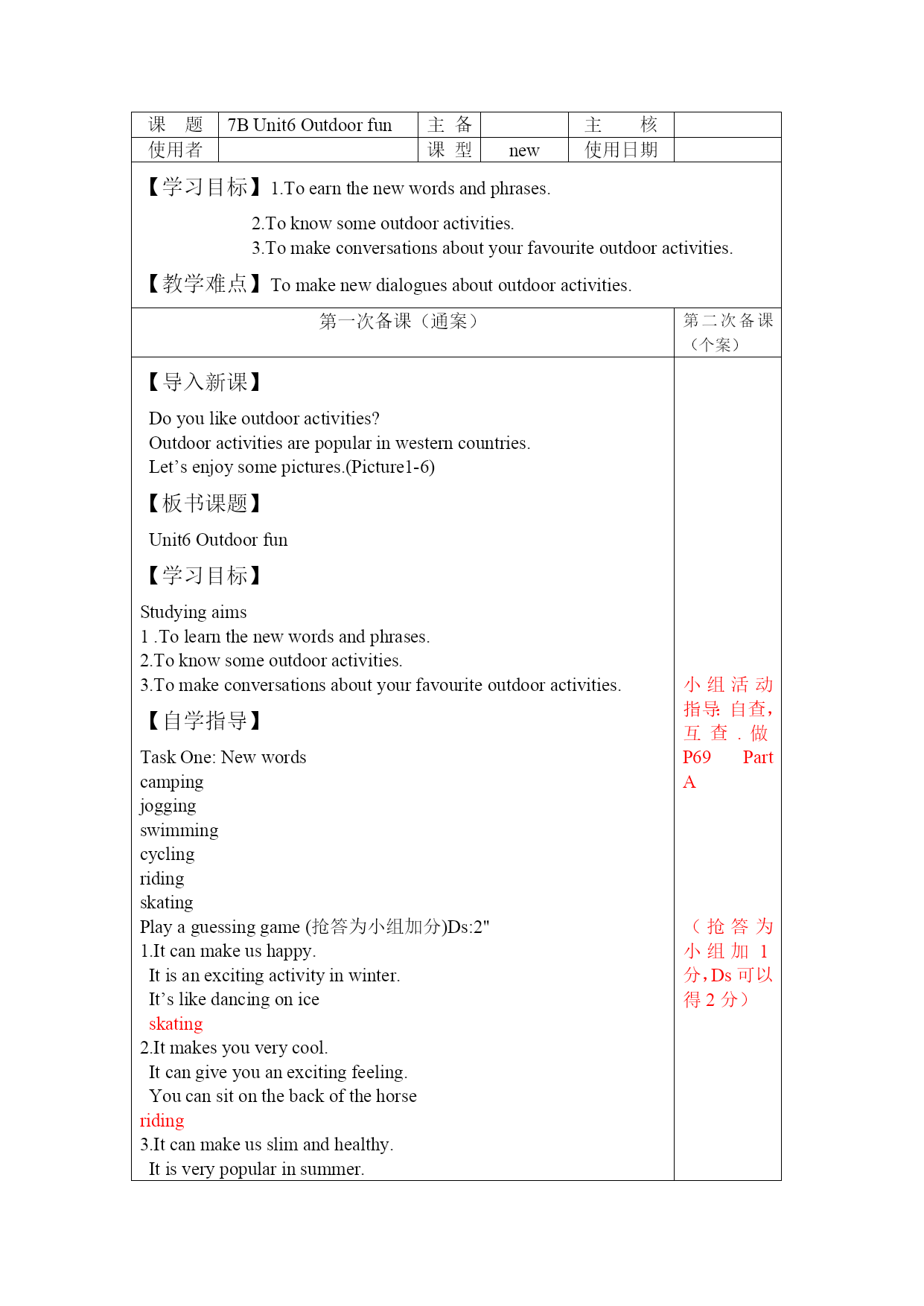 【小学中学教育精选】牛津译林版7BUnit6Welcometotheunit教案-免费英语教学资料下载.doc