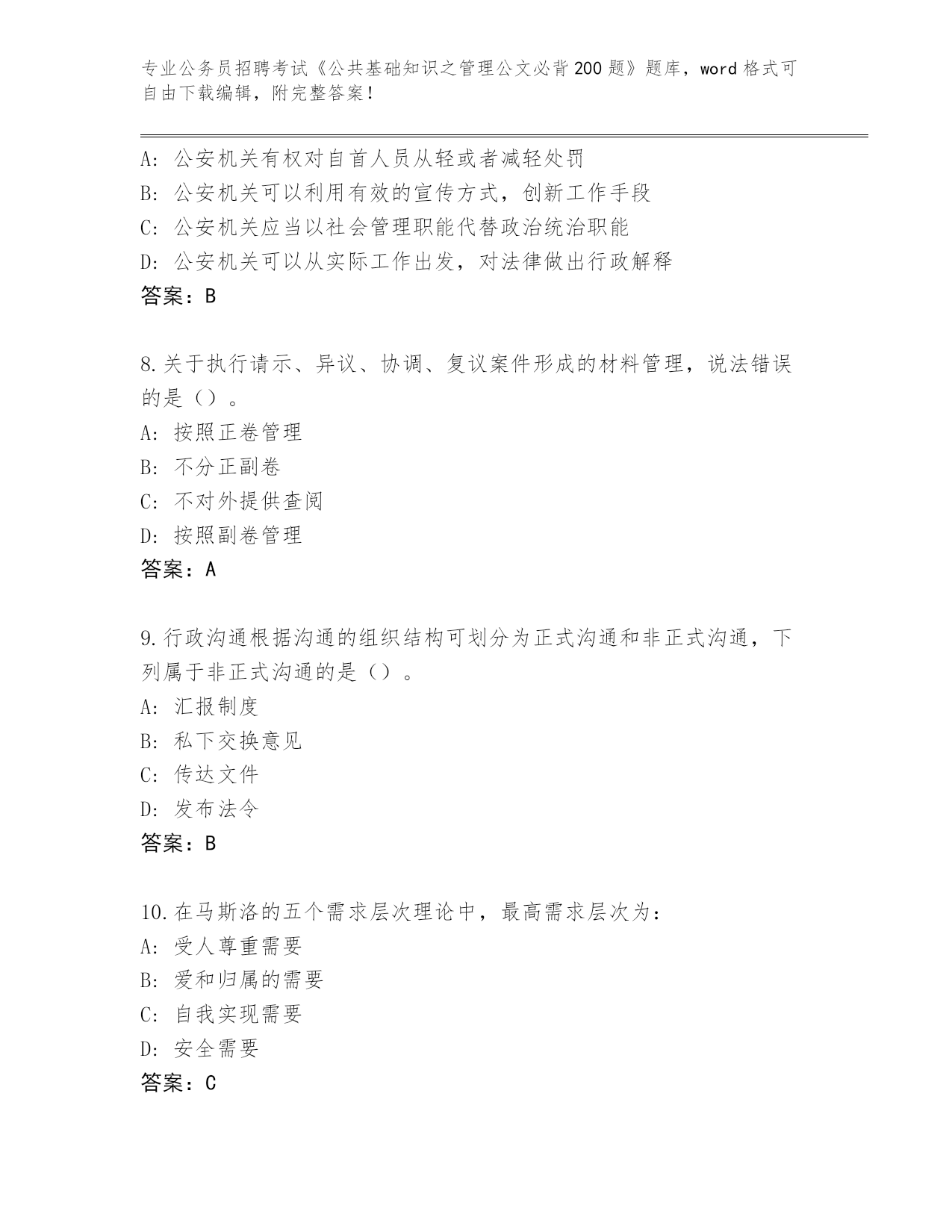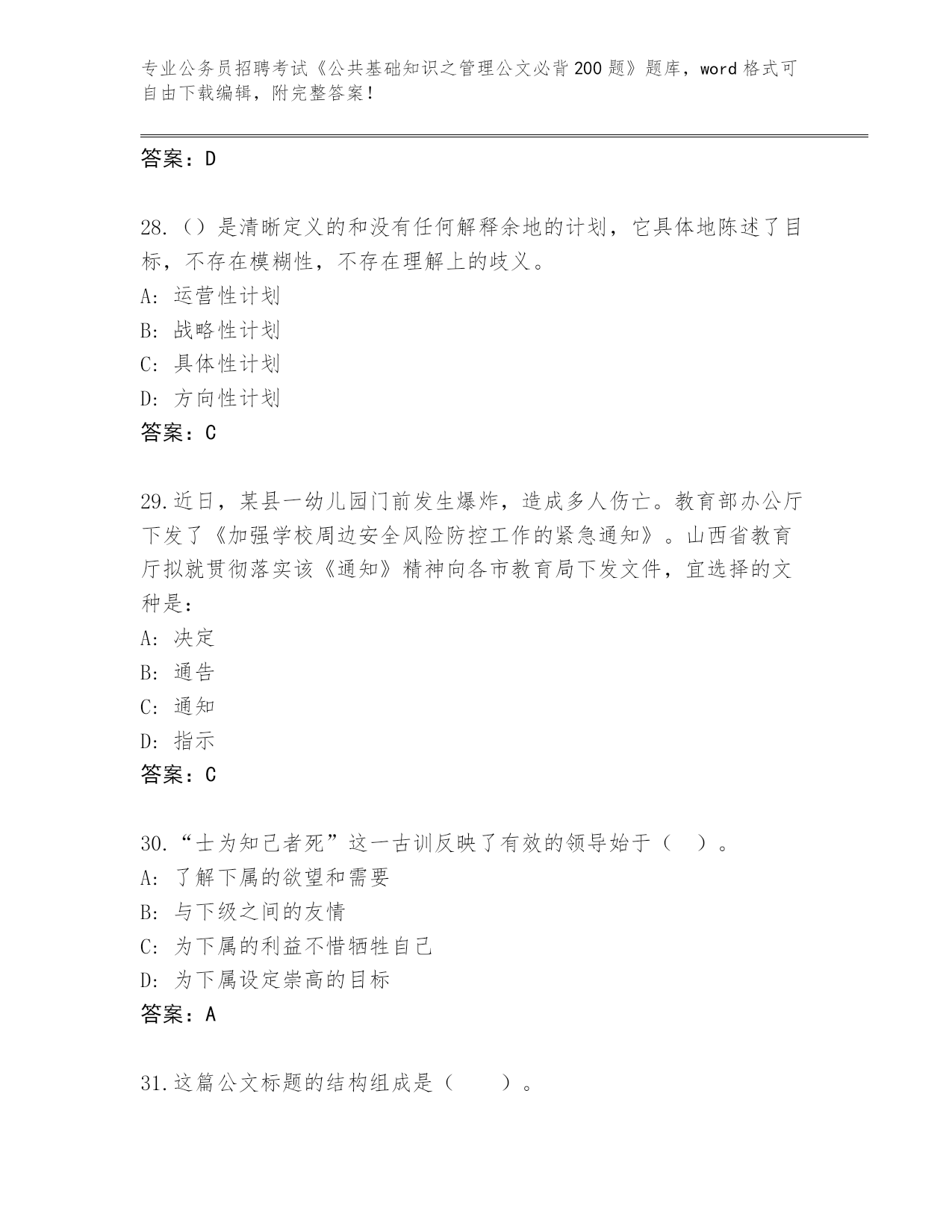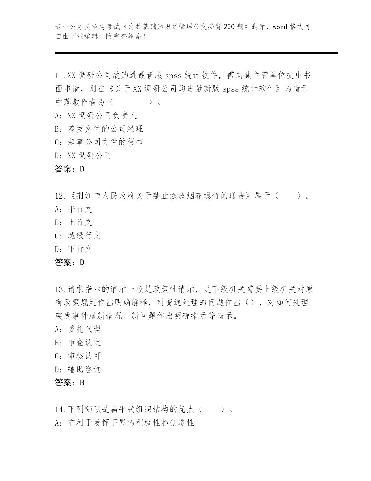 陕西省陇县公务员招聘考试《公共基础知识之管理公文必背200题》内部题库含答案(突破训练)