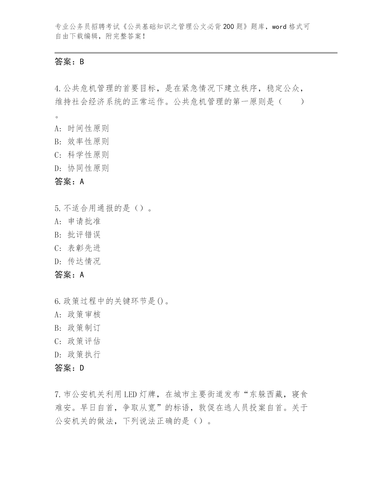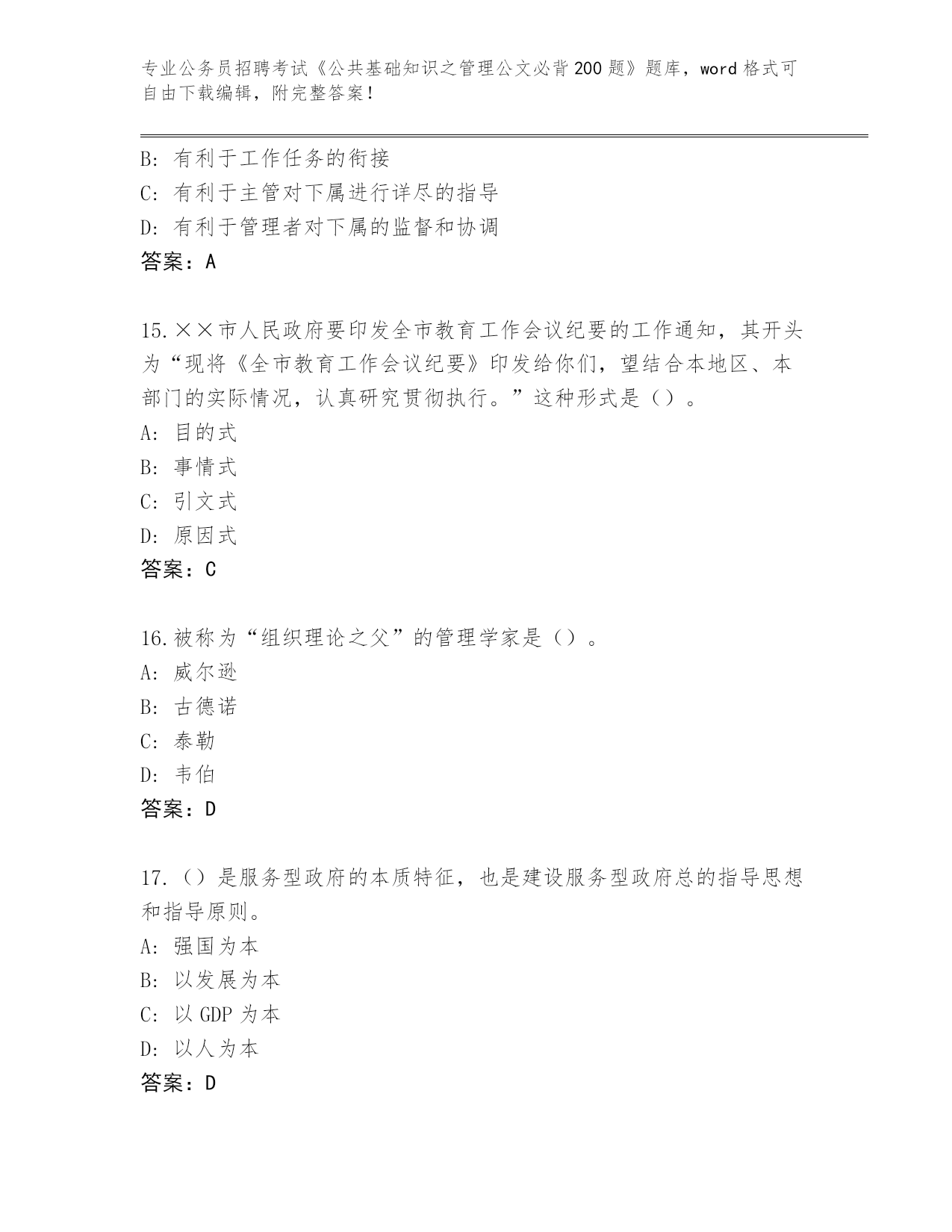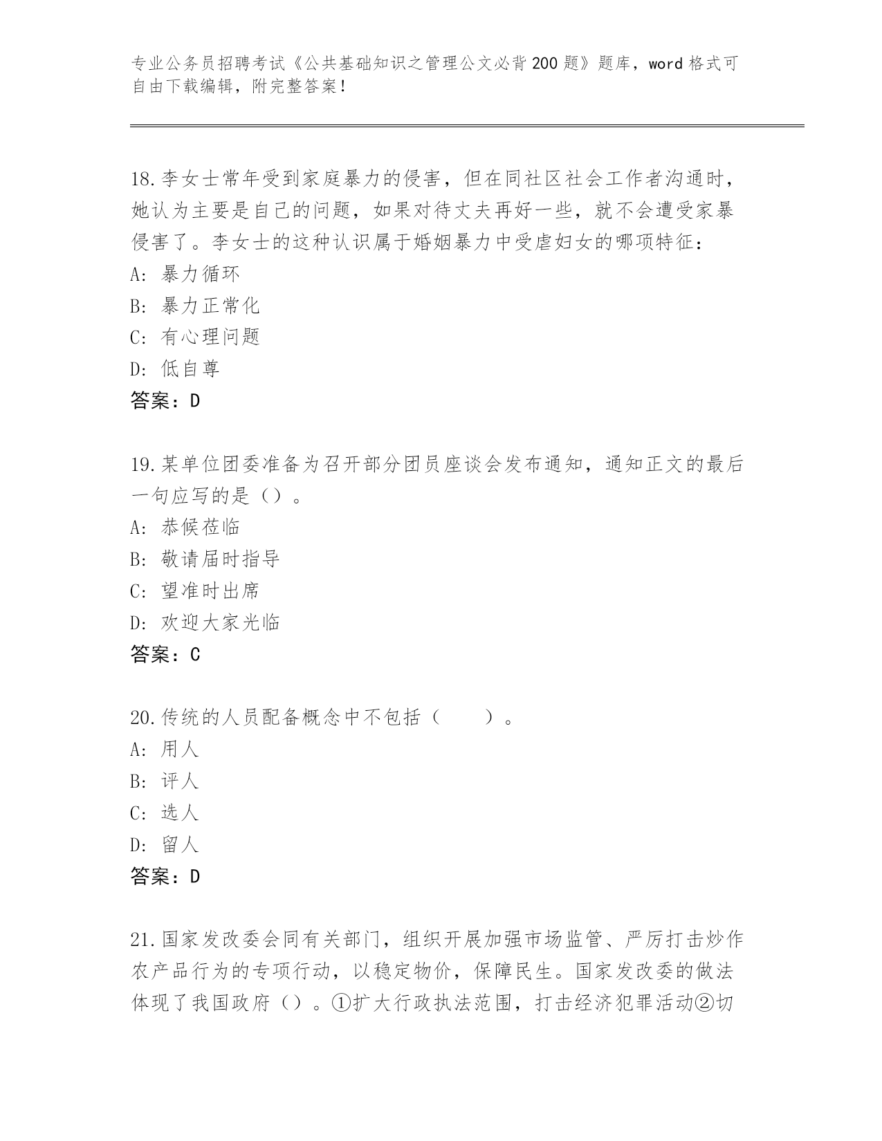 陕西省陇县公务员招聘考试《公共基础知识之管理公文必背200题》内部题库含答案(突破训练)