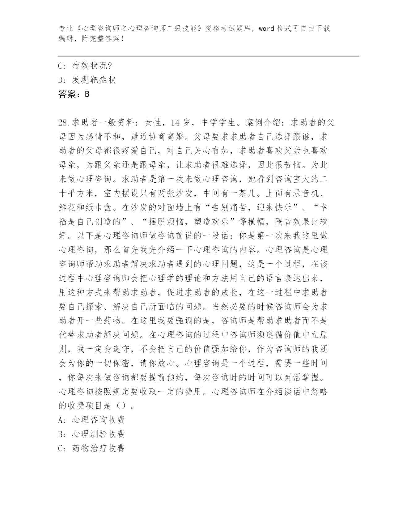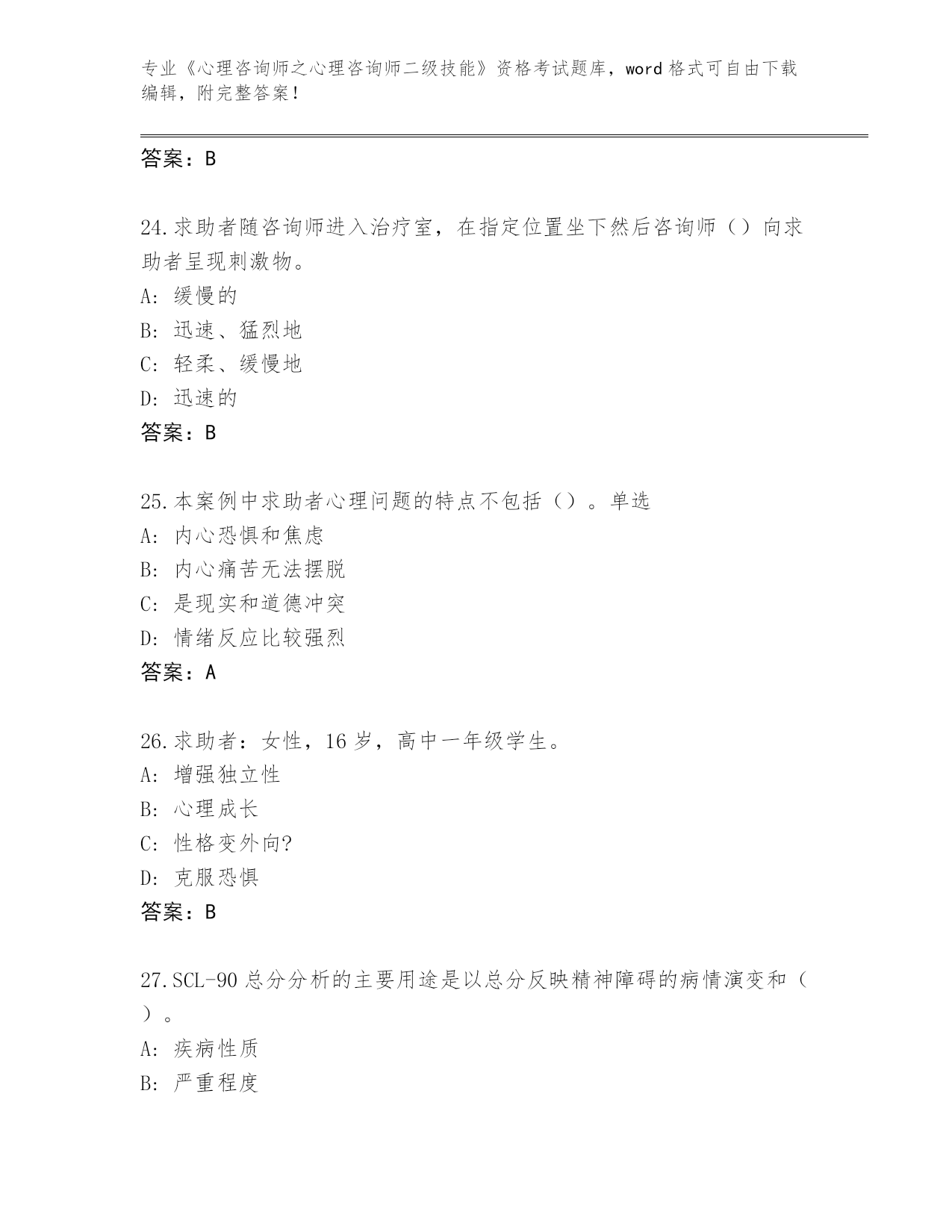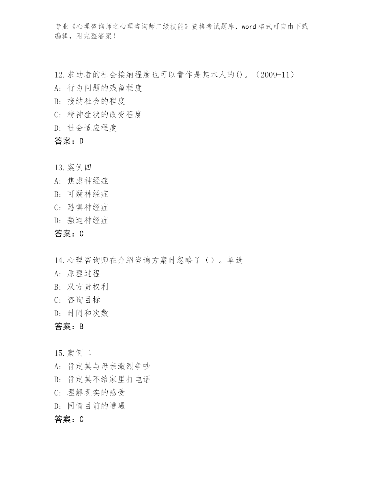 重庆市江北区2024《心理咨询师之心理咨询师二级技能》考试必考200题完整题库(考试直接用)