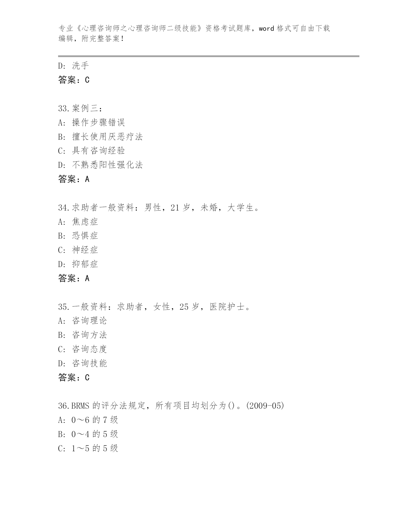 河北省2024年《心理咨询师之心理咨询师二级技能》资格考试大全(实用)