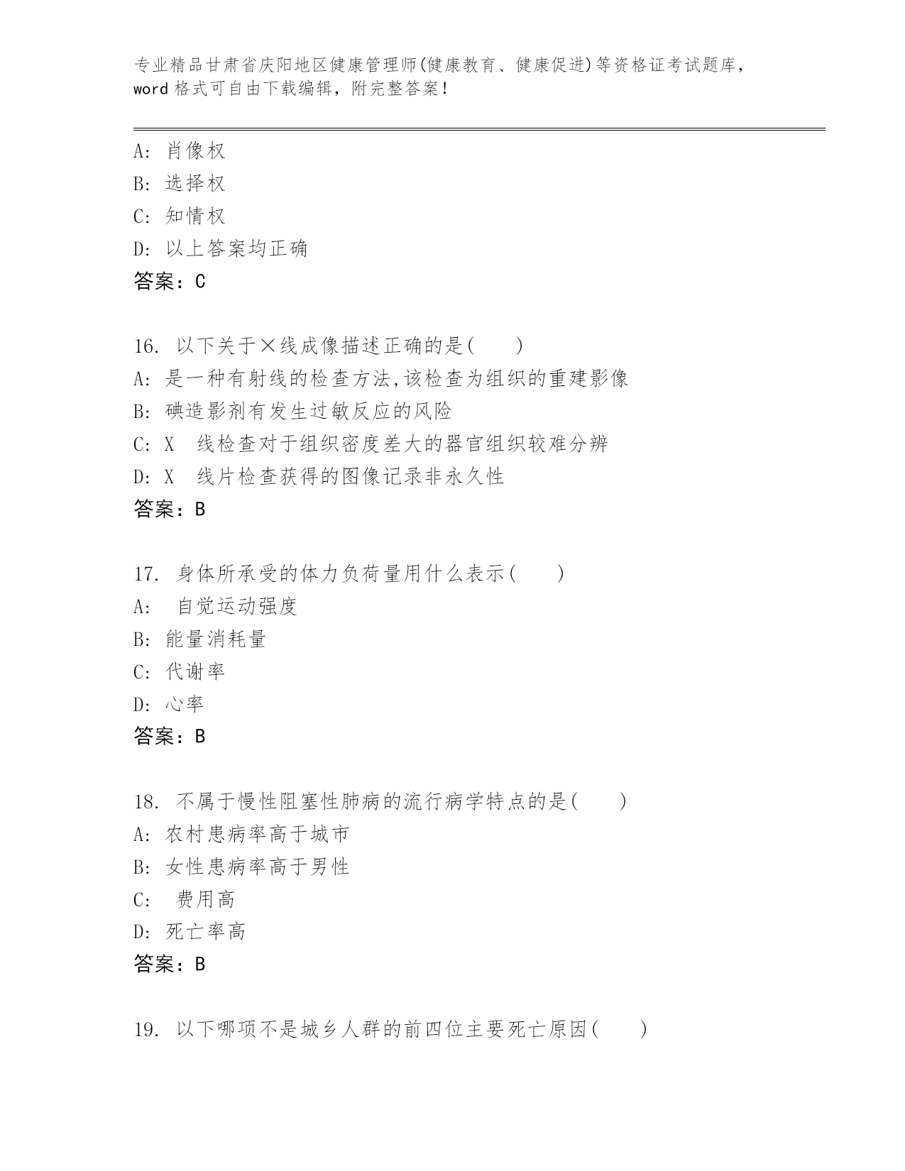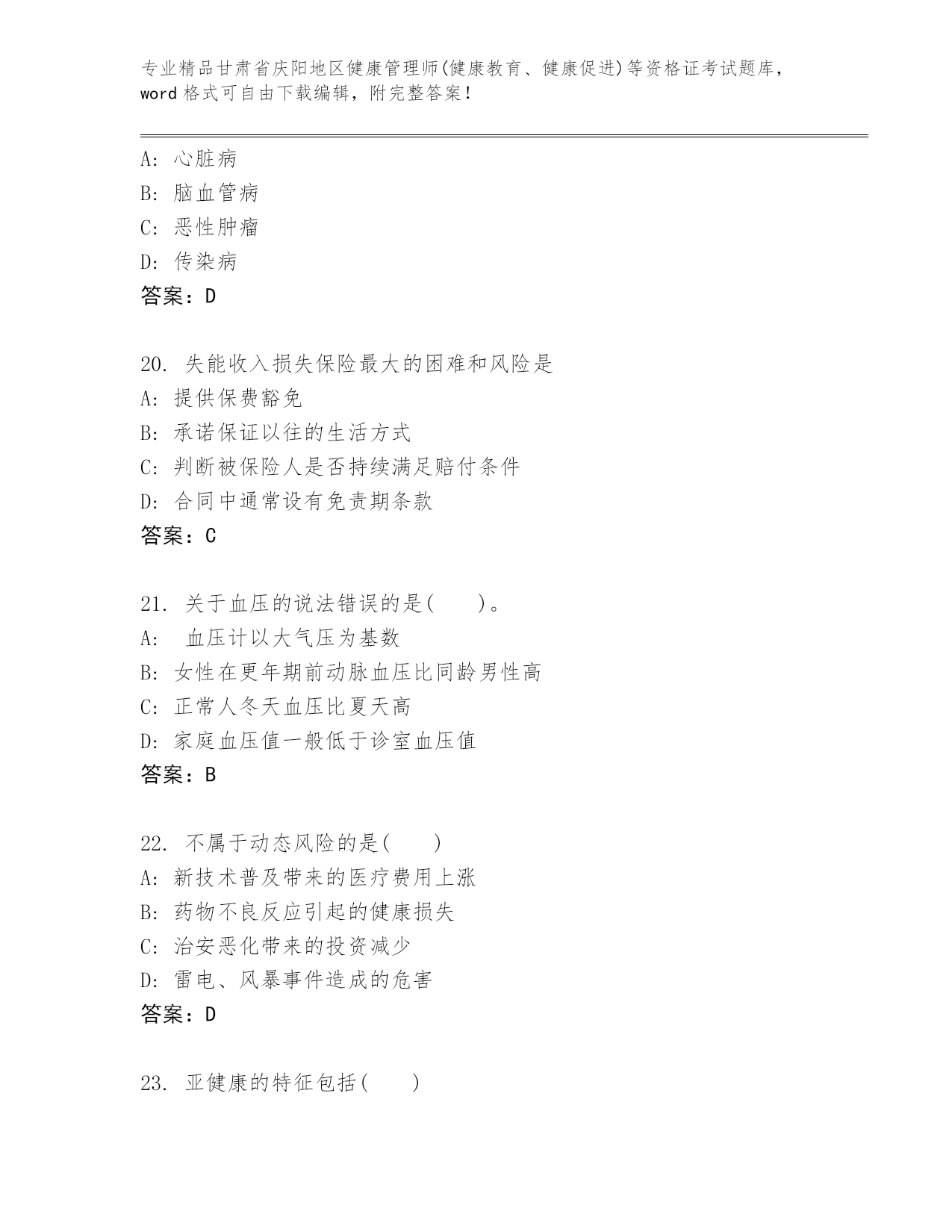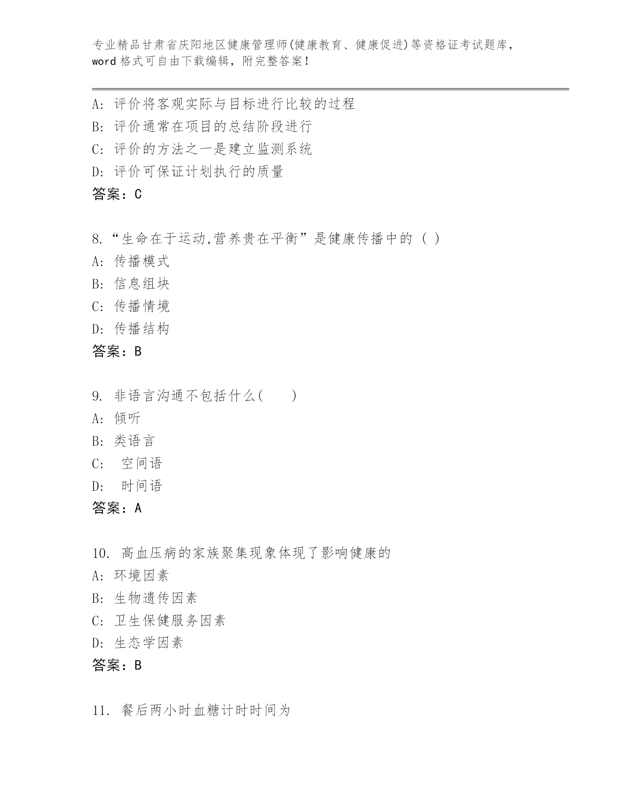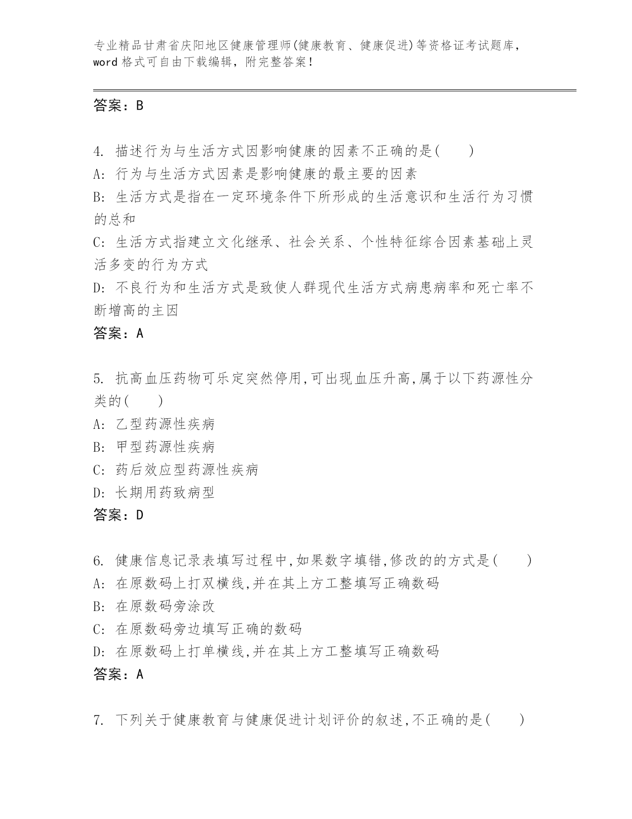 精心整理甘肃省庆阳地区健康管理师(健康教育、健康促进)等资格证考试王牌题库带答案(精练)