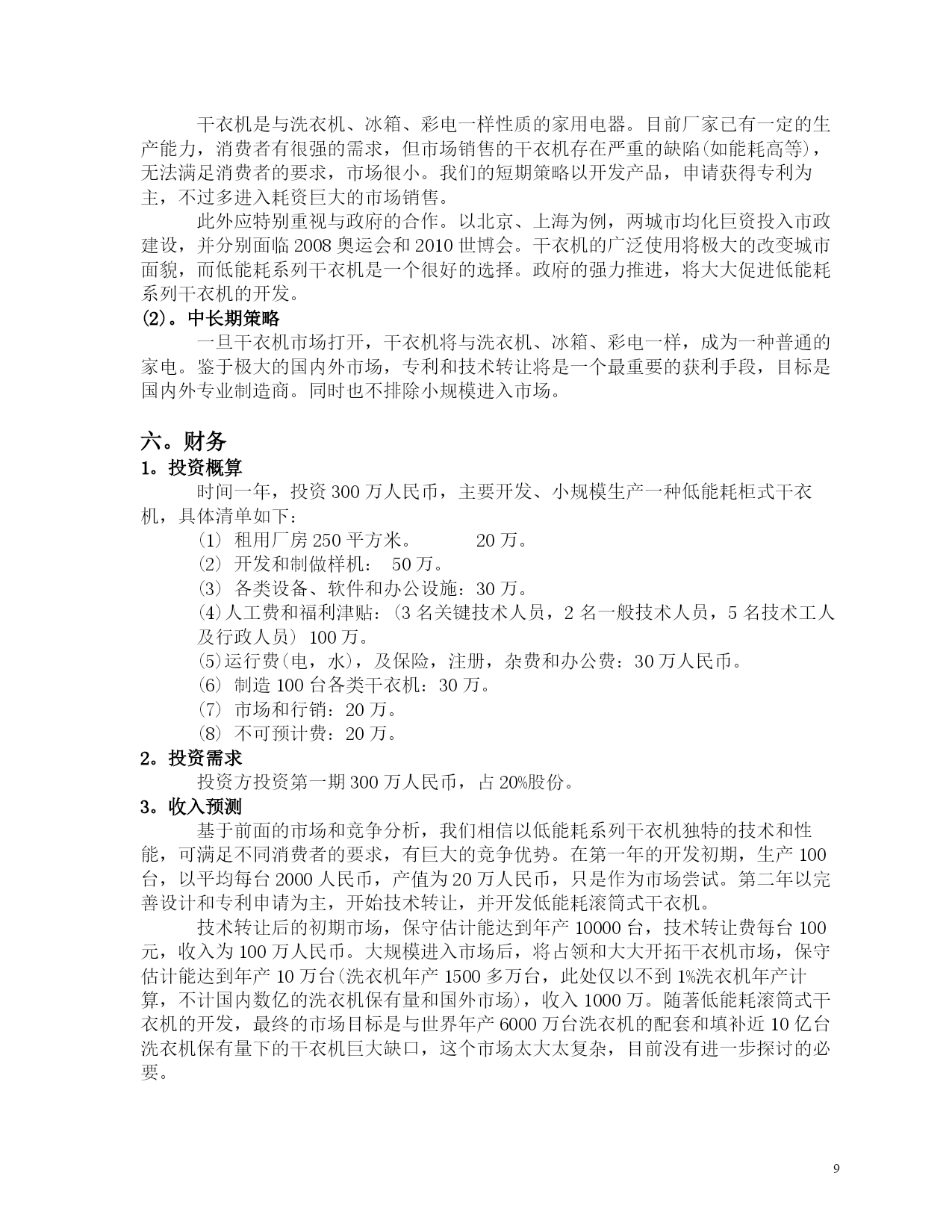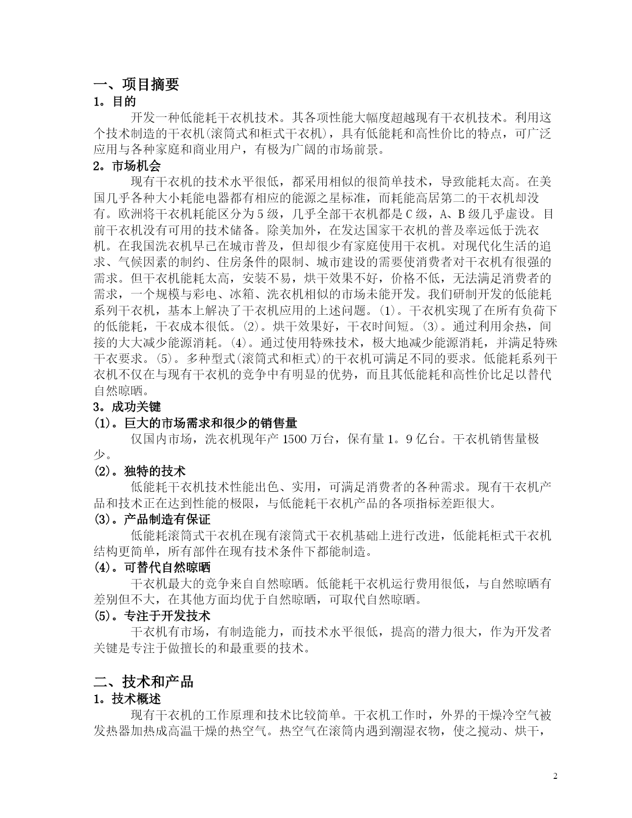 最新商业计划书《低能耗系列干衣机制造》-经典通用.doc