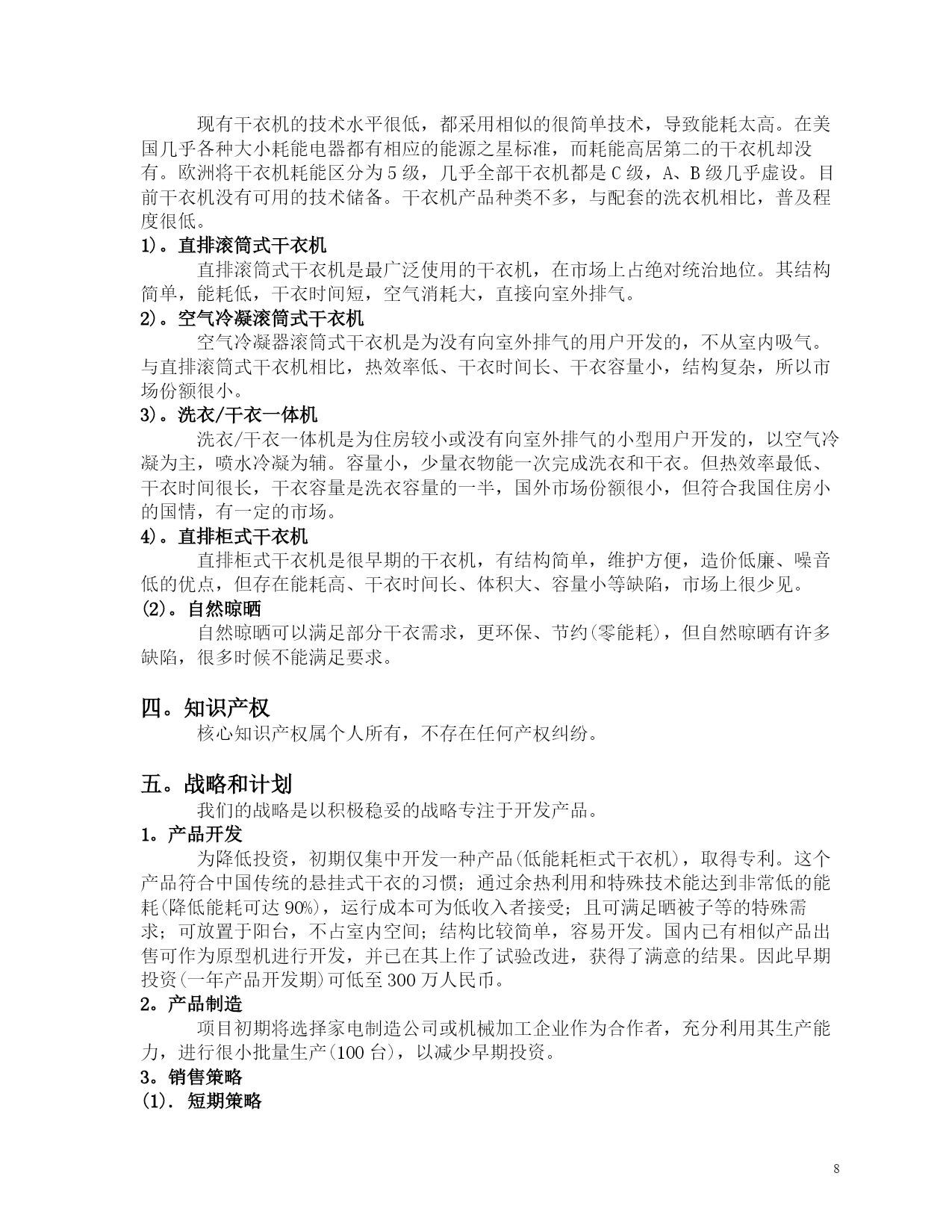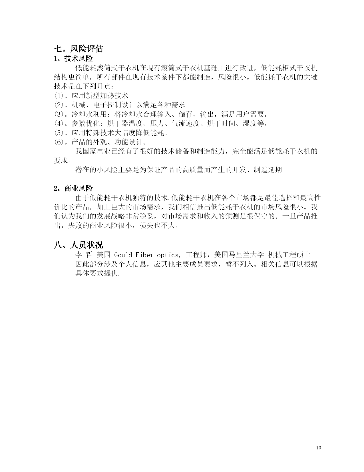 最新商业计划书《低能耗系列干衣机制造》-经典通用