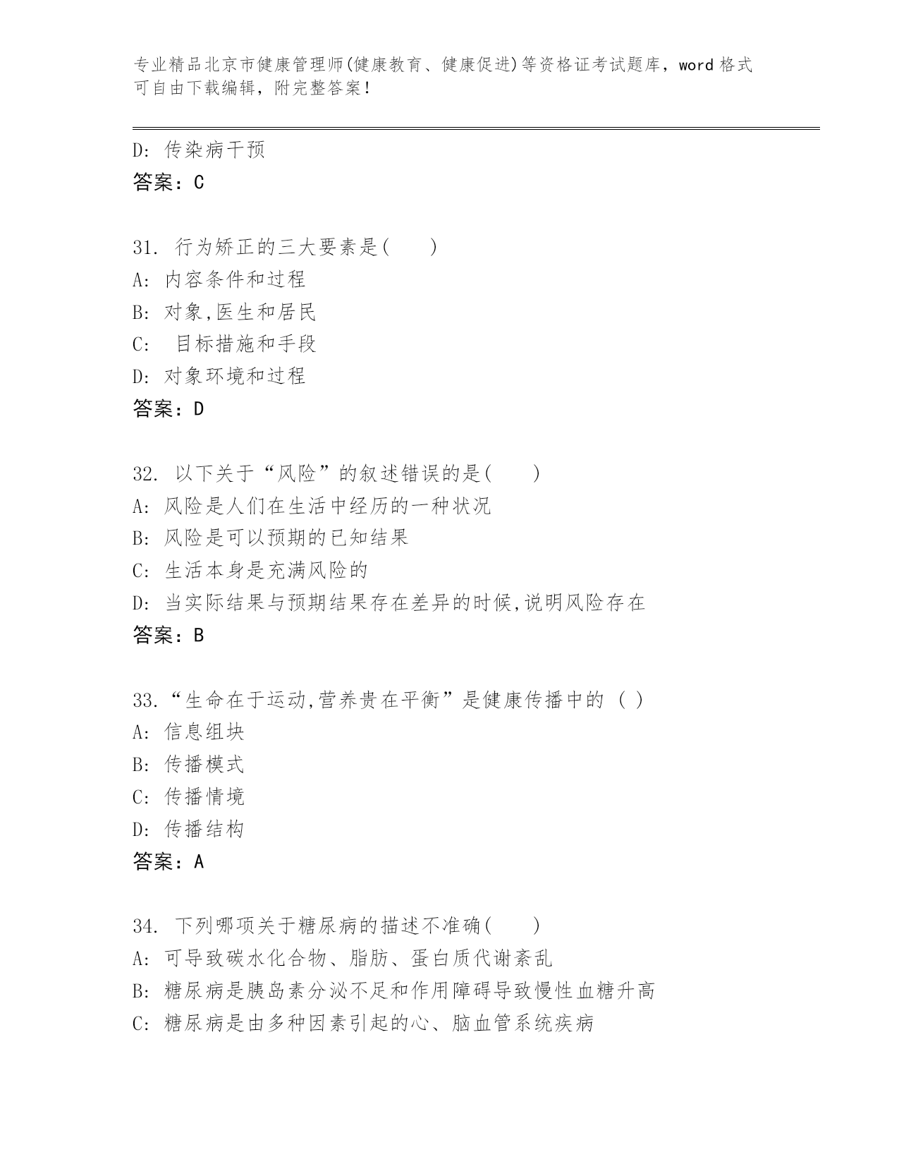 优选北京市健康管理师(健康教育、健康促进)等资格证考试优选题库及答案(精选题).docx