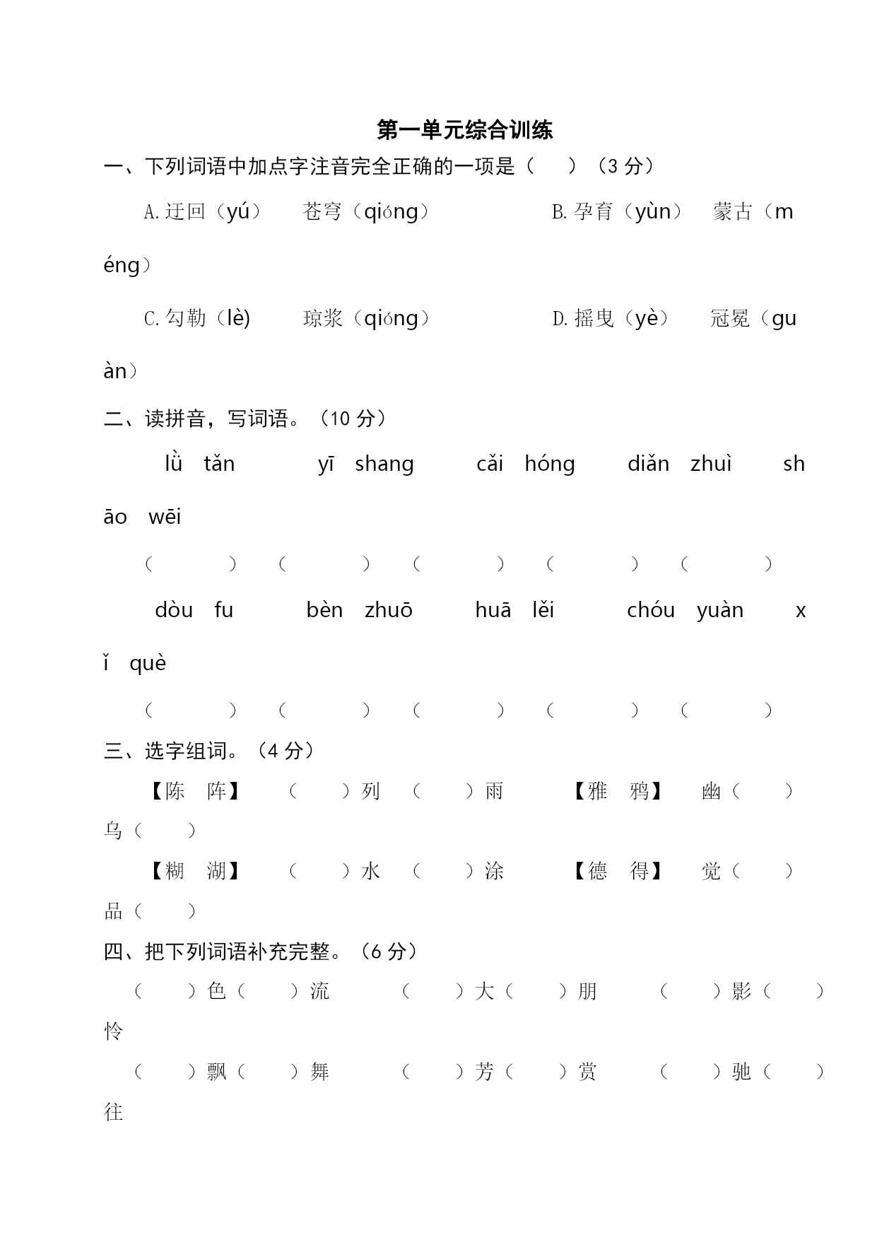 第六单元综合训练(附参考答案)-最新经典通用教辅资料
