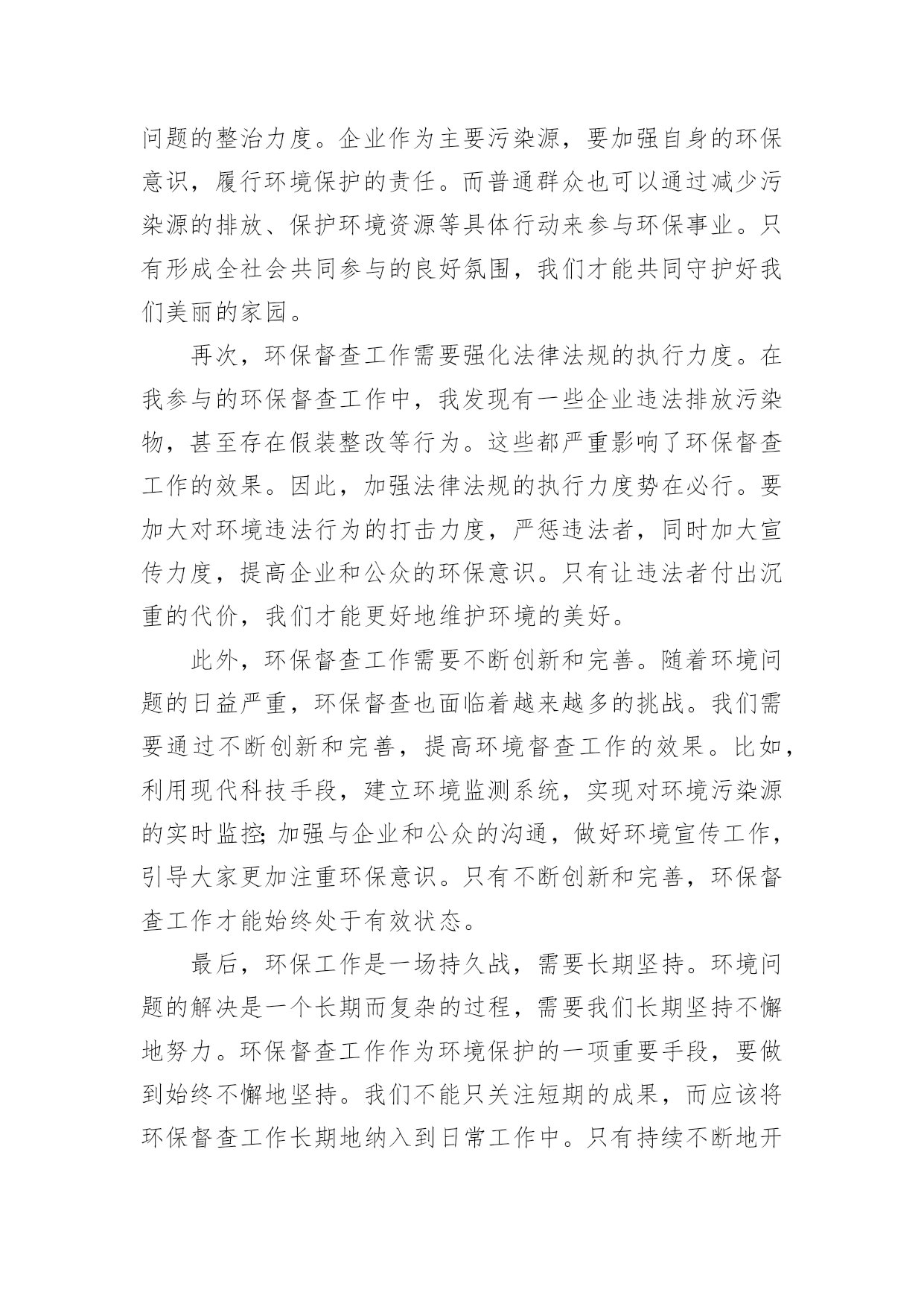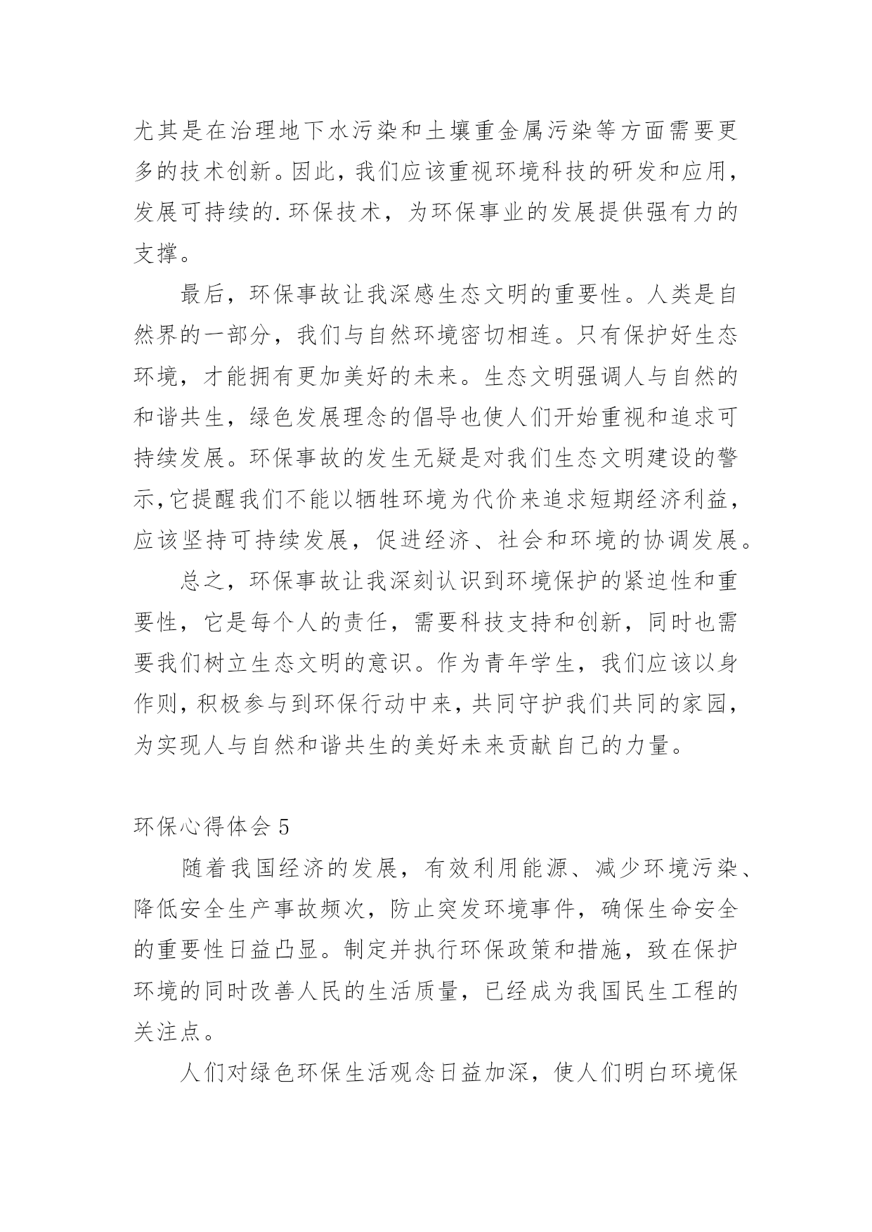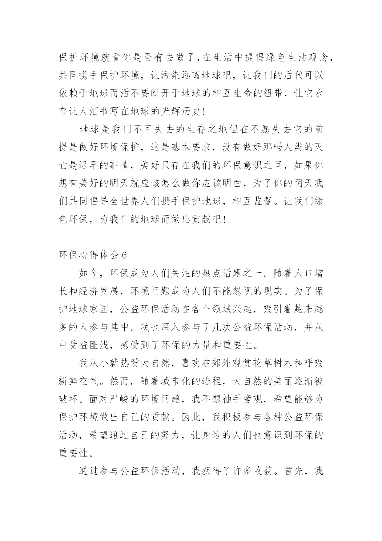 环保心得体会有了一些收获以后,就很有必要写一篇心得体会,这样就可以通过不断总结,丰富我们的思想。你想好怎么写心得体会了吗?以下是小编为大家收集的环保心得体会,欢迎大家借鉴与参考,希望对大家有所帮助。环保心得体会1近年来,环保已成为全球关注的热点话题。随着人们环保意识的觉醒和环保技术的不断发展,环境问题已成为摆在我们面前的一道严峻考题。我通过近期的环保宣传活动以及调查研究,对环保问题进行了深入思考和解析,从而深刻认识到环保的重要性。本文将分为五个部分,从环境问题的严峻性、环保的关键步骤、环保创新的重要性、个人责任和未来展望五个方面,对环保进行深入剖析和思考。首先,环境问题的严峻性引起了我的注意。调查数据显示,全球温室气体排放量不断攀升,大气污染日趋严重,水资源浪费和水污染现象频发,生物多样性急速减少等。这些问题直接威胁着人类的.生存和发展。人们应该意识到,只有保护好环境,才能保证人类能够在一个洁净、健康且可持续的环境中生活。每个人都应该把环保问题当作自己的责任,从个人做起,为改善环境状况做出自己的贡献。其次,环保的关键步骤是环境保护的根本。对环境问题进行解决和改善,需要采取一系列的措施。首先,我们应该加强环境监测和治理,通过科学手段收集、分析和处理环境数据,及时揭示和解决问题。其次,政府在环境立法和政策方面应该做出更多努力,加强对环境污染行为的打击,并推动依法加强环境保护。同时,企业和公民也应该承担起责任,积极参与到环境保护行动中,减少污染物的排放和资源的浪费。环保创新是环保问题解决的重要途径之一。目前,许多国家和地区都加大了对环保技术研发的投入,不断推出新的环保技术和产品。例如,可再生能源的利用逐渐普及,燃油动力的替代品正在研发中,节能环保的新材料得到了广泛应用等。这些新技术的出现为环保工作提供了新的思路和手段,大大提高了环境问题解决的效率和效果。因此,环保创新是解决环境问题的重要途径,值得我们加大投入和支持。个人责任是环保工作的重要组成部分。环境问题的解决不是单靠政府、企业等组织机构的力量,每个人都应该承担起责任,从自身做起。减少对塑料制品的使用量,改用环保型交通工具,节约用水和电力,分类垃圾,这些都是我们每个人能够做到的良好习惯。只有每个人都积极行动起来,才能形成整体力量,推动环保事业取得实质性的进展。最后,展望未来,环保工作仍然充满挑战和机遇。面对全球气候变化等环境问题,我们必须加强国际合作,共同制定有效的环保政策和措施。同时,科技的进步也将为环保工作提供更多可能性和机遇。例如,人工智能、大数据等新技术将为环保工作提供更为精确、快速和智能化的解决方案。我们应该保持乐观的态度,相信随着科技的不断发展,环保工作必将取得更大的成果。综上所述,环保问题已成为全球关注的焦点,我们每个人都应该对环境问题有更深入的认识和理解。加强环境监测,加大环保创新力度,每个人从个人做起,共同努力,才能够保护好我们赖以生存的地球家园。希望未来我们能够与环境和谐相处,过上更加美好的生活。环保心得体会2近年来,随着环境问题的日益突出,各地对环境保护的重视程度也逐渐加大。为了确保环境保护措施的有效实施,各级政府纷纷组织了一系列的环保督查工作。作为一名参与环保督查的工作人员,我亲身经历了许多有关环保的事情,也有一些感悟和体会。下面就让我来和大家分享一下我的心得体会。首先,环保督查工作的重要性不容忽视。每次参与督查工作,都会让我深刻感到环保事业的重要性。环境的恶化不仅会影响人们的生活质量,还会对生态系统造成破坏,甚至危及人类的健康。而环保督查的目的就是要及时发现和解决环境问题,保护好我们的家园。只有不断加大环保督查的力度,我们才能有效遏制环境污染,保护环境资源。其次,环保督查需要全社会的共同参与。环保问题的`产生是一个复杂的系统工程,需要全社会的共同努力来解决。政府作为主导方,要积极组织环保督查工作,并加大对环境问题的整治力度。企业作为主要污染源,要加强自身的环保意识,履行环境保护的责任。而普通群众也可以通过减少污染源的排放、保护环境资源等具体行动来参与环保事业。只有形成全社会共同参与的良好氛围,我们才能共同守护好我们美丽的家园。再次,环保督查工作需要强化法律法规的执行力度。在我参与的环保督查工作中,我发现有一些企业违法排放污染物,甚至存在假装整改等行为。这些都严重影响了环保督查工作的效果。因此,加强法律法规的执行力度势在必行。要加大对环境违法行为的打击力度,严惩违法者,同时加大宣传力度,提高企业和公众的环保意识。只有让违法者付出沉重的代价,我们才能更好地维护环境的美好。此外,环保督查工作需要不断创新和完善。随着环境问题的日益严重,环保督查也面临着越来越多的挑战。我们需要通过不断创新和完善,提高环境督查工作的效果。比如,利用现代科技手段,建立环境监测系统
