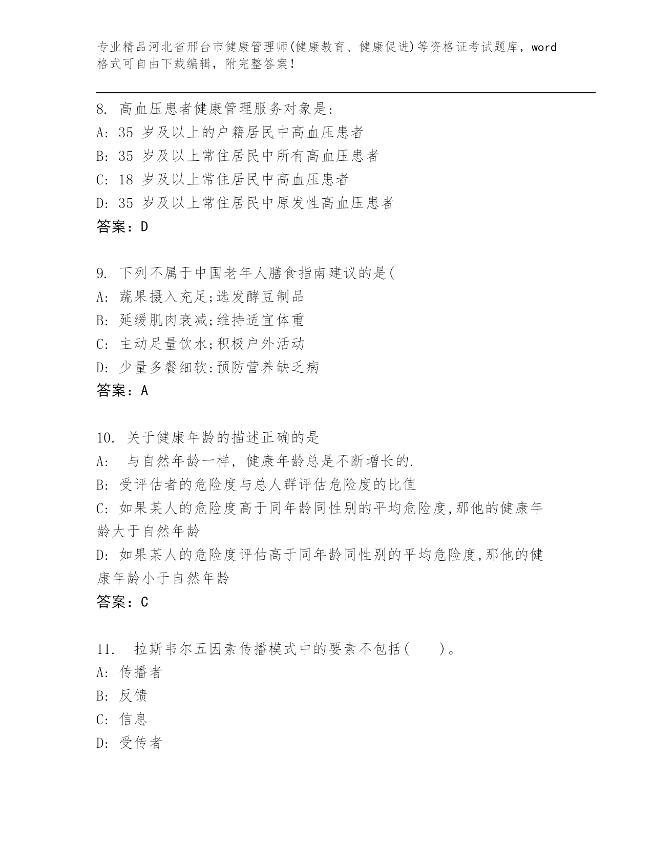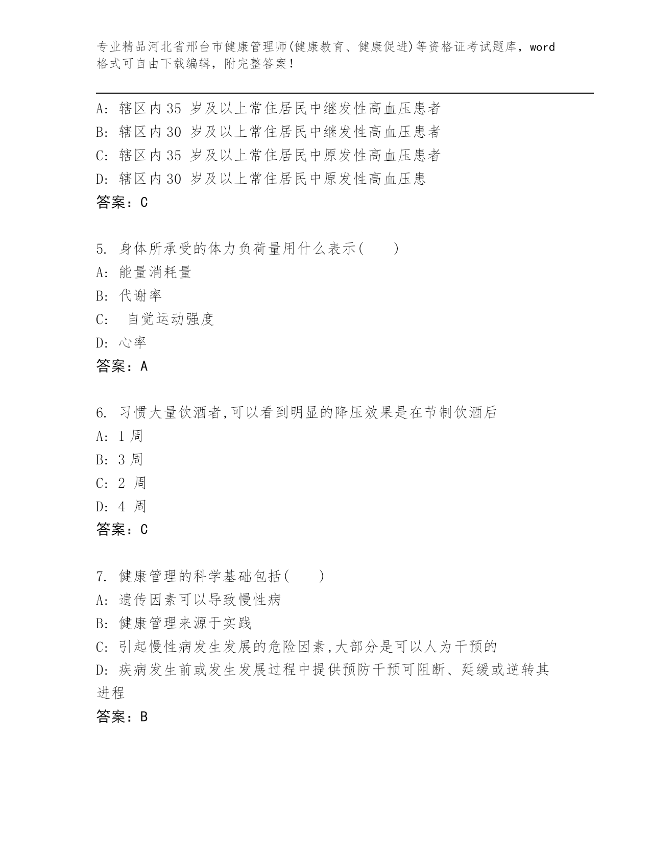 河北省邢台市健康管理师(健康教育、健康促进)等资格证考试题库【易错题】.docx